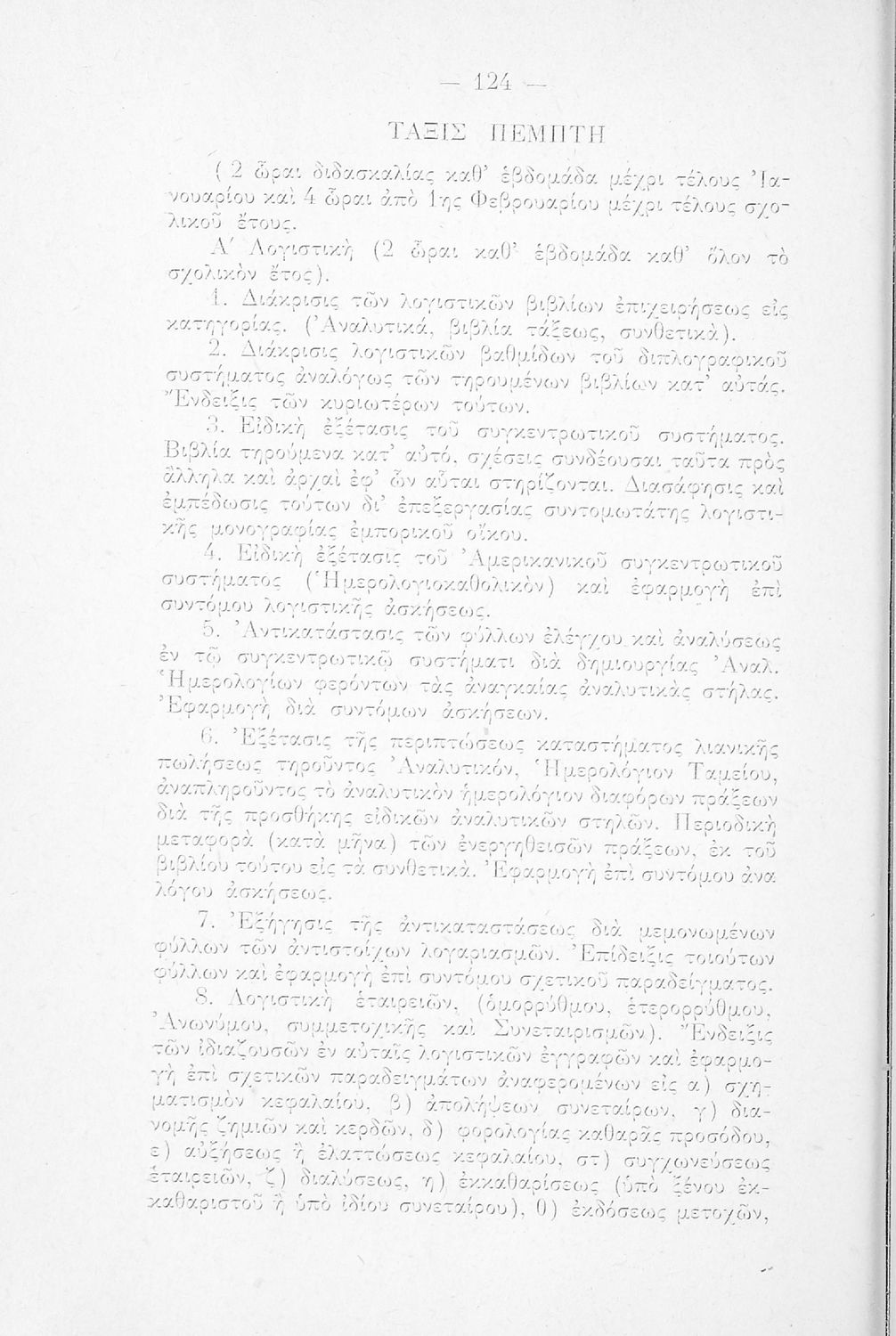 Έκδοση του Υπουργείου Παιδείας και Θρησκευμάτων που περιλαμβάνει τα ωρολόγια και αναλυτικά προγράμματα των μαθημάτων που διδάσκονται στις Εμπορικές Σχολές.