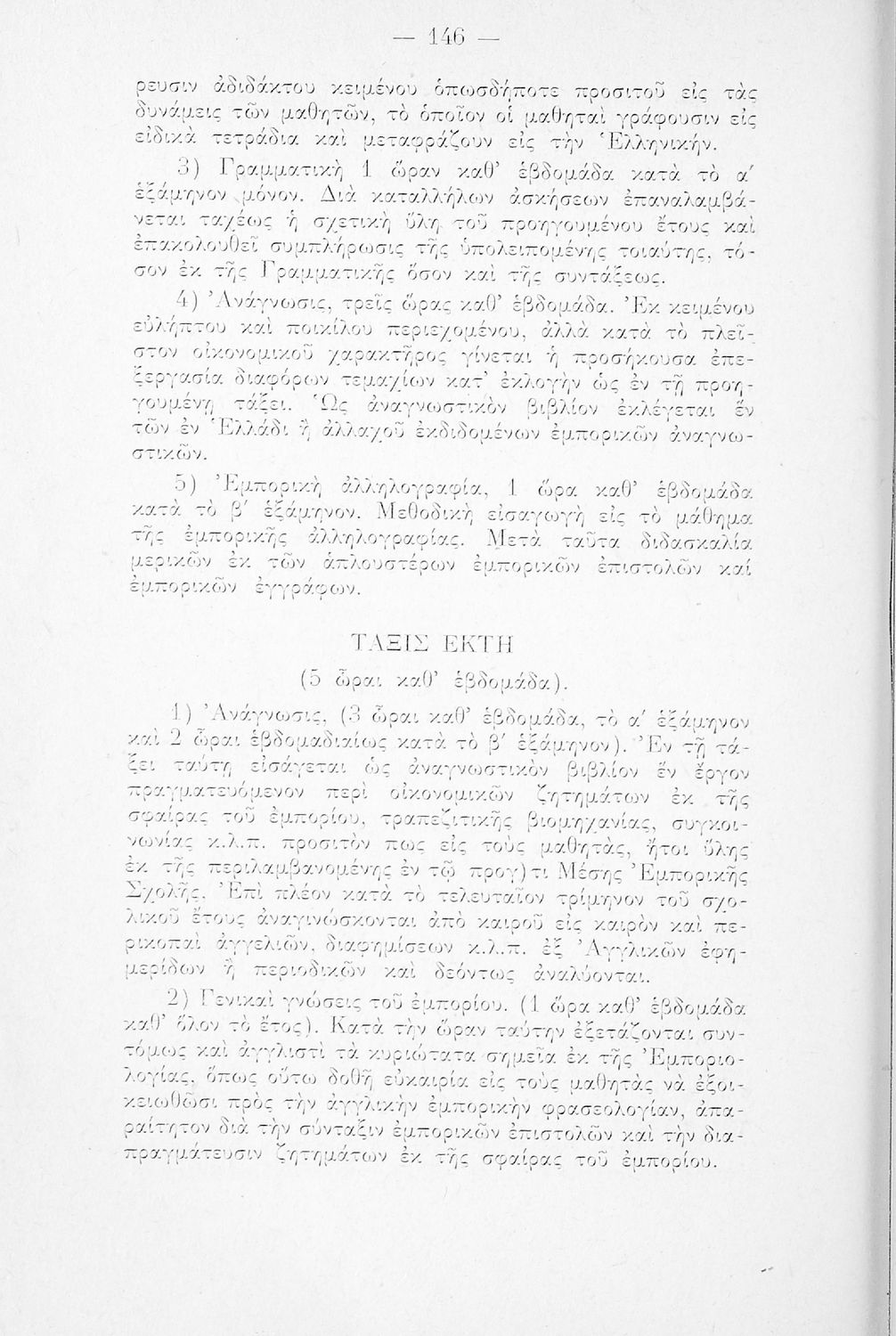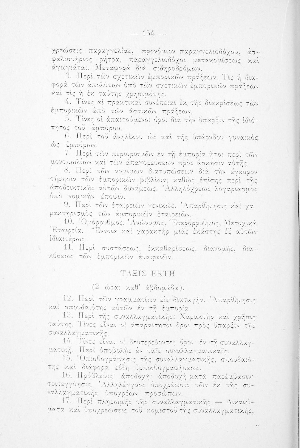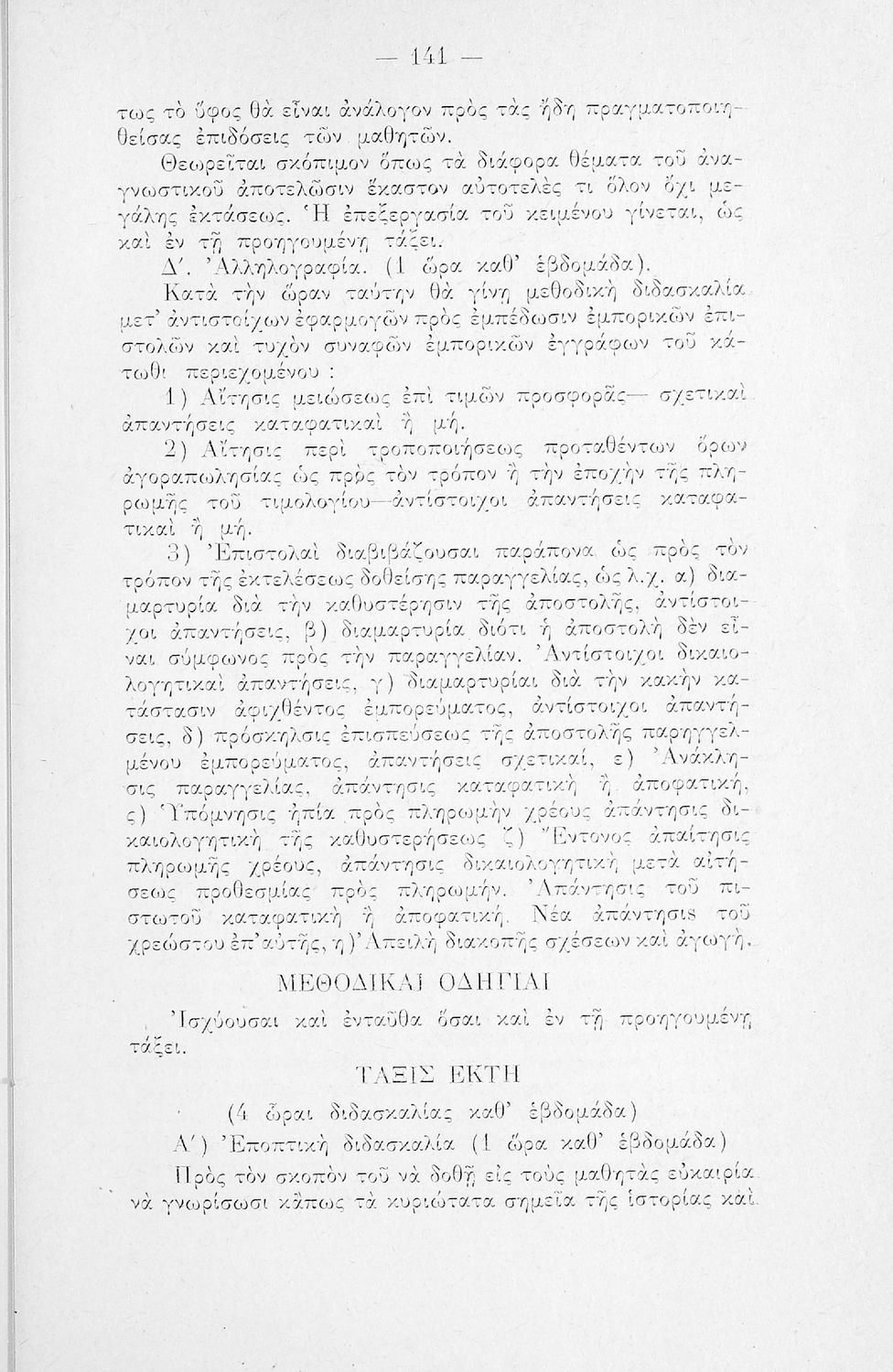 Αναλυτικόν πρόγραμμα των διδασκομένων μαθημάτων εν ταις Μεσαίας Εξαταξίοις Εμπορικαίς Σχολαίς