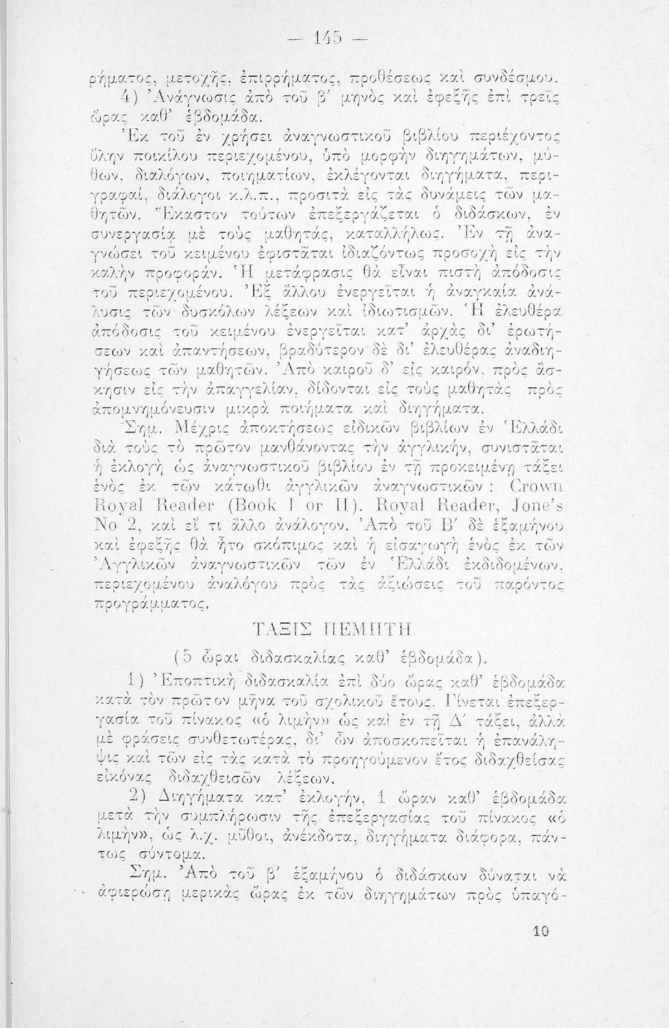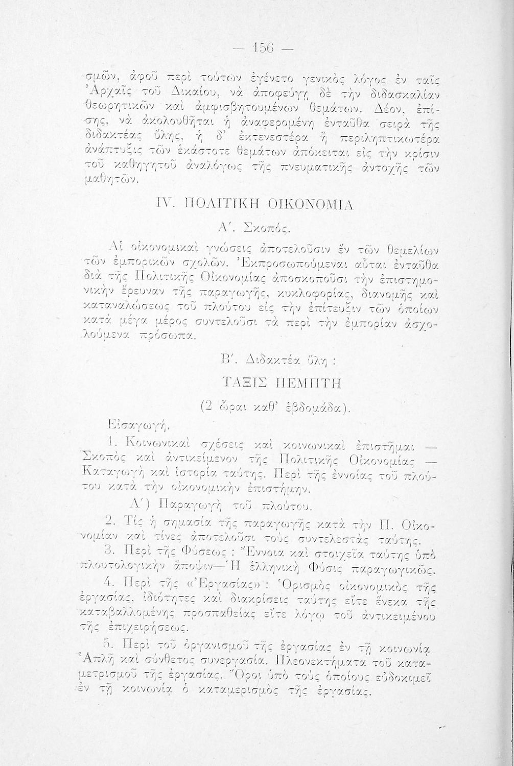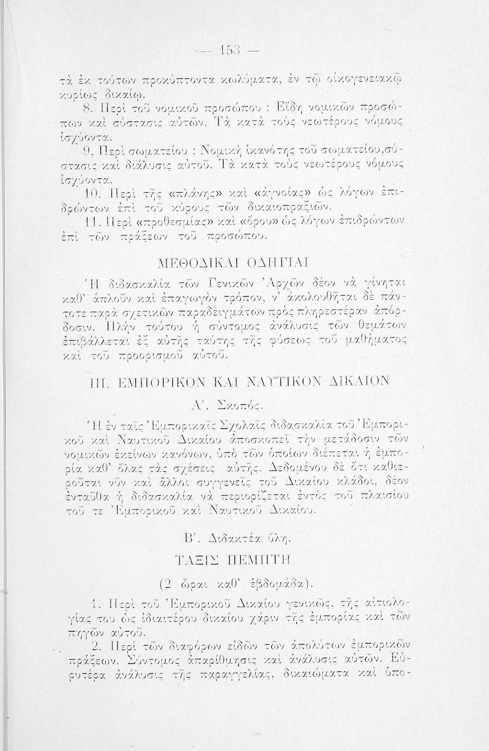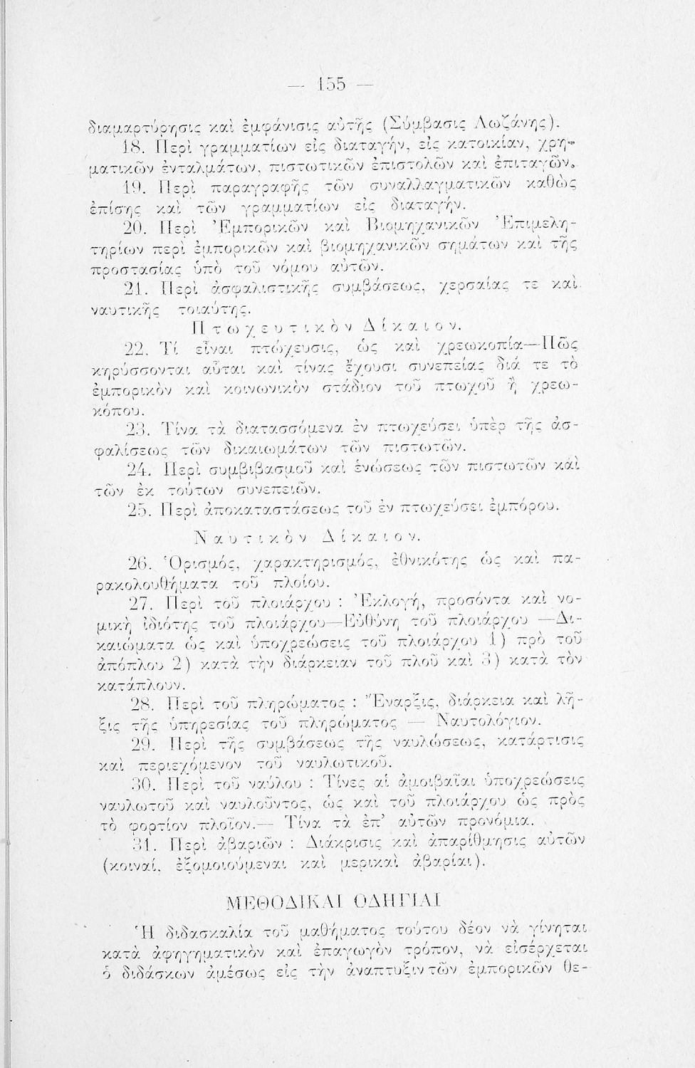 Αναλυτικόν πρόγραμμα των διδασκομένων μαθημάτων εν ταις Μεσαίας Εξαταξίοις Εμπορικαίς Σχολαίς