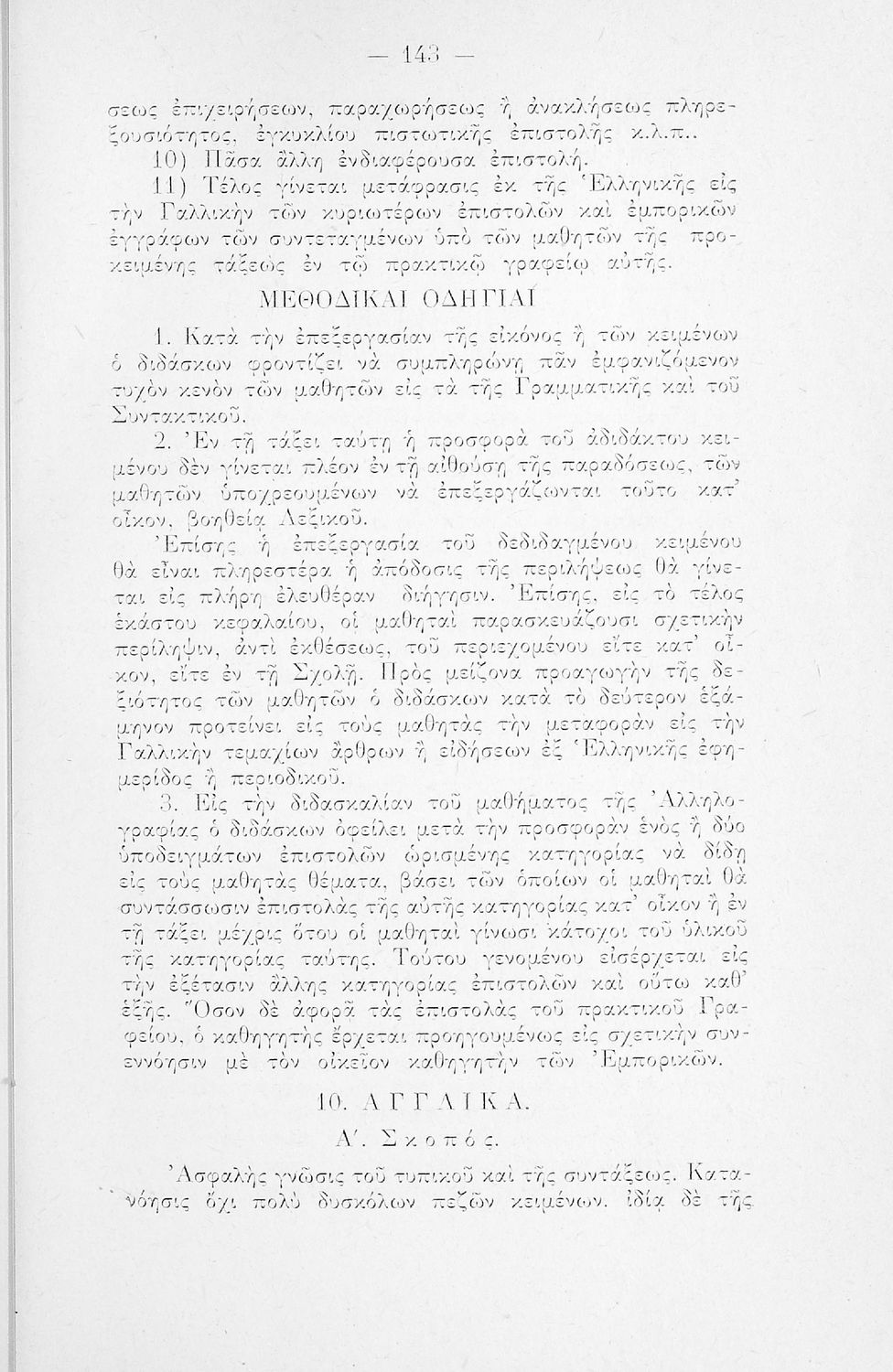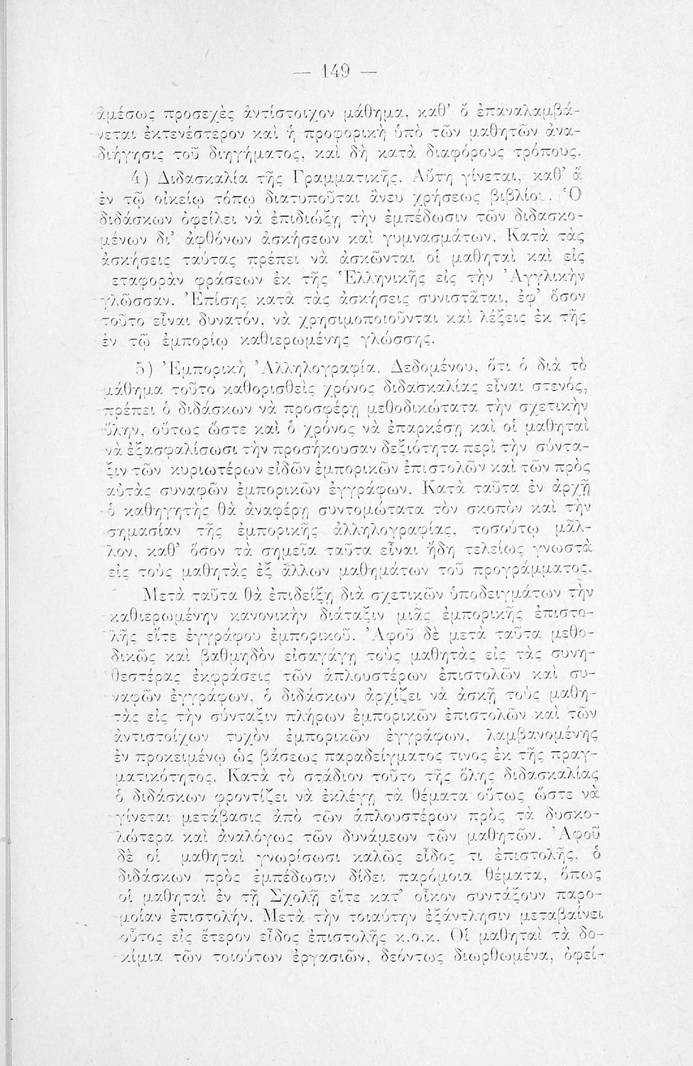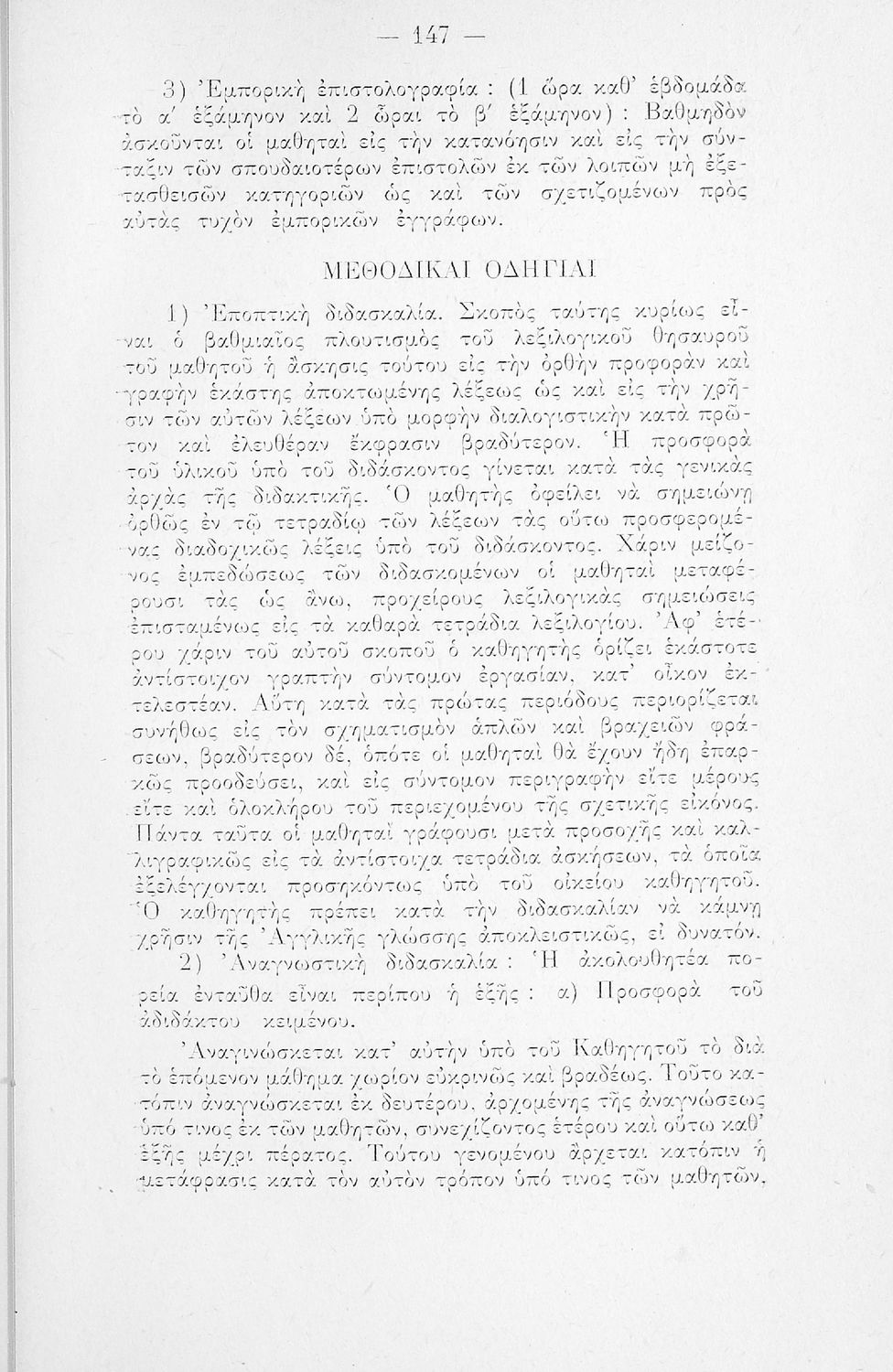 Έκδοση του Υπουργείου Εθνικής Οικονομίας που περιλαμβάνει το αναλυτικό πρόγραμμα των μαθημάτων που διδάσκονταν στις μεσαίες τάξεις των εμπορικών σχολών.