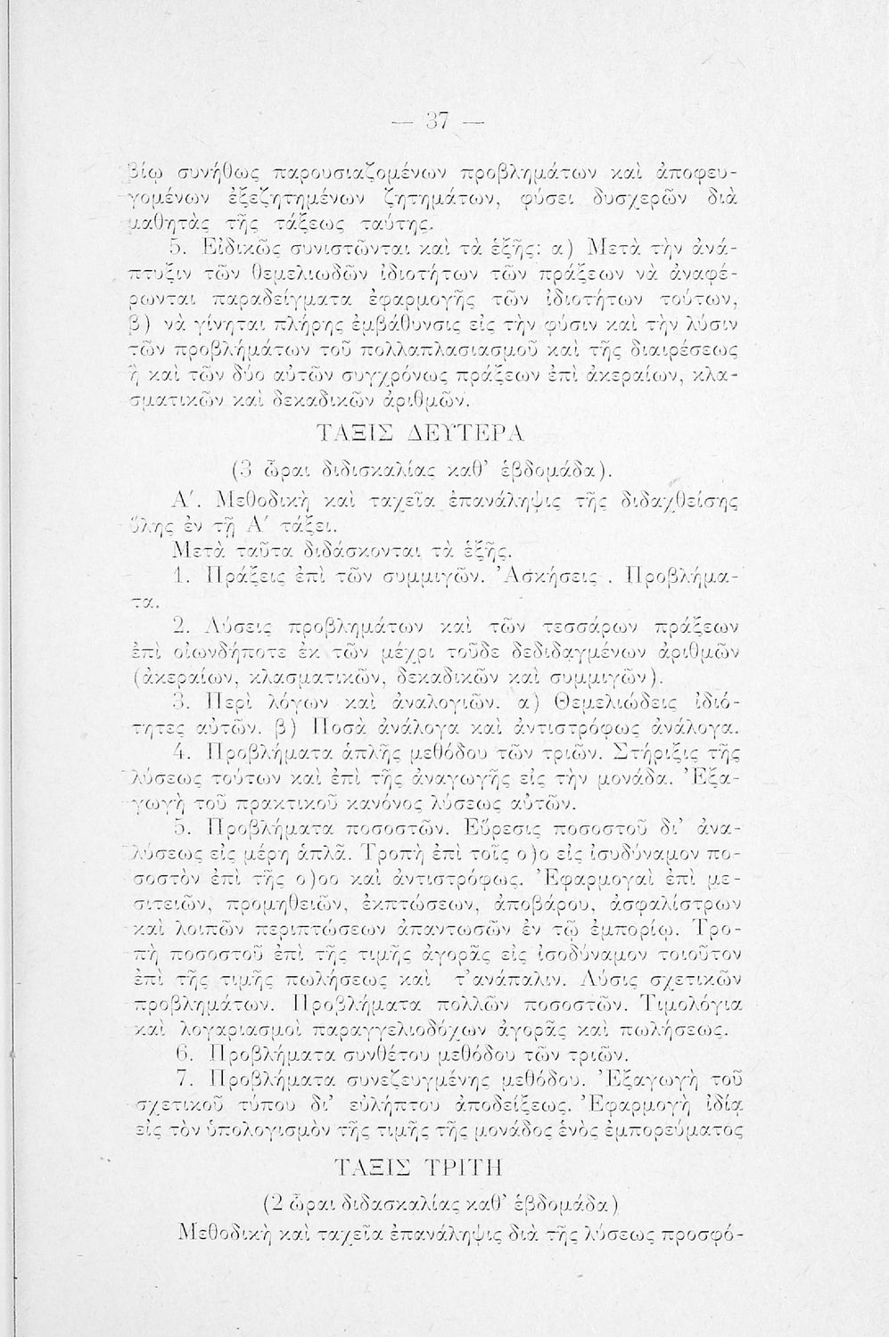 Έκδοση του Υπουργείου Παιδείας και Θρησκευμάτων που περιλαμβάνει τα ωρολόγια και αναλυτικά προγράμματα των μαθημάτων που διδάσκονται στις Εμπορικές Σχολές.