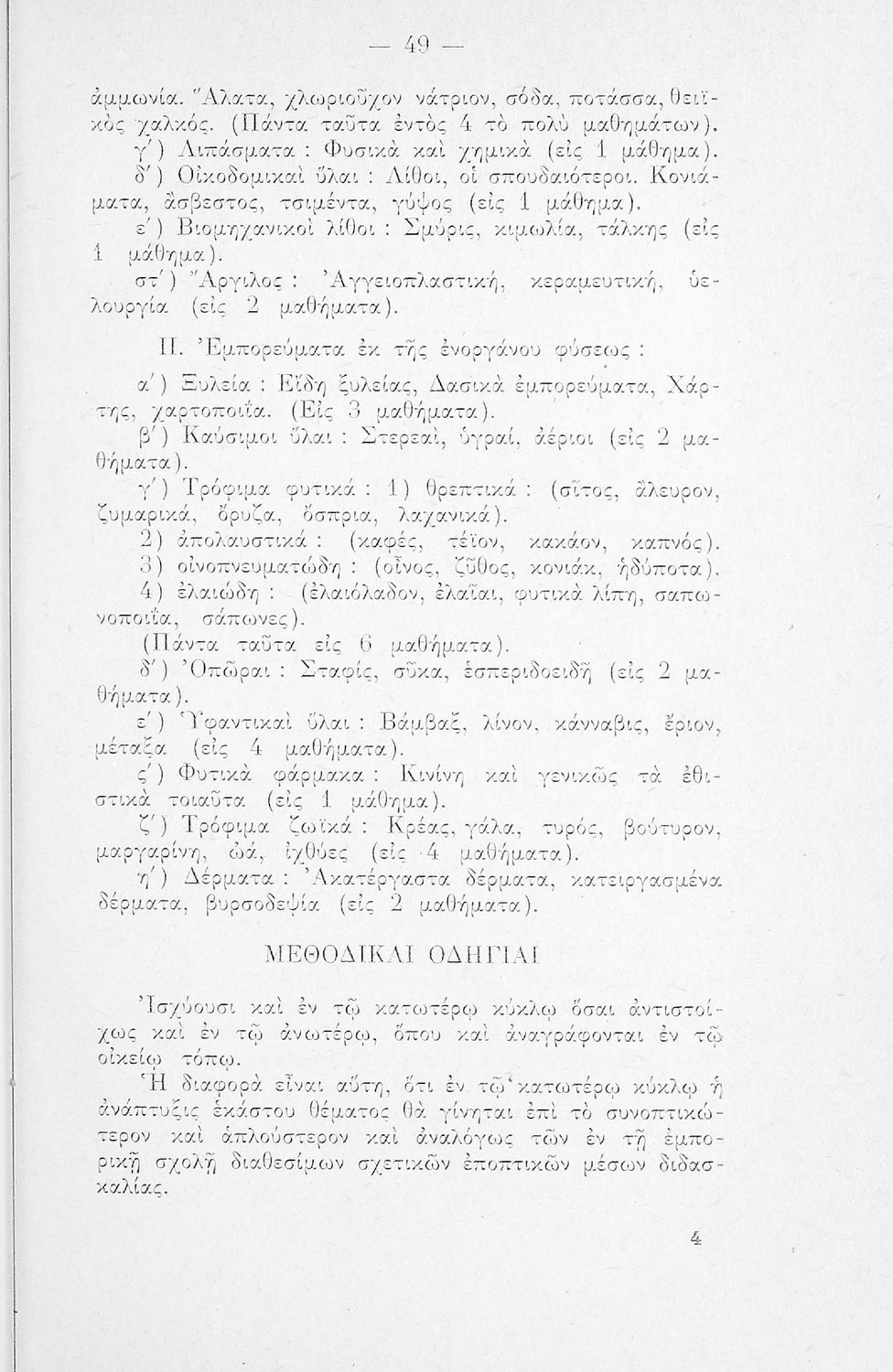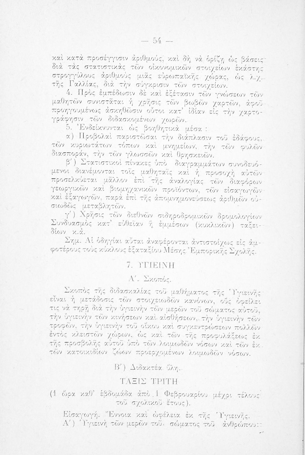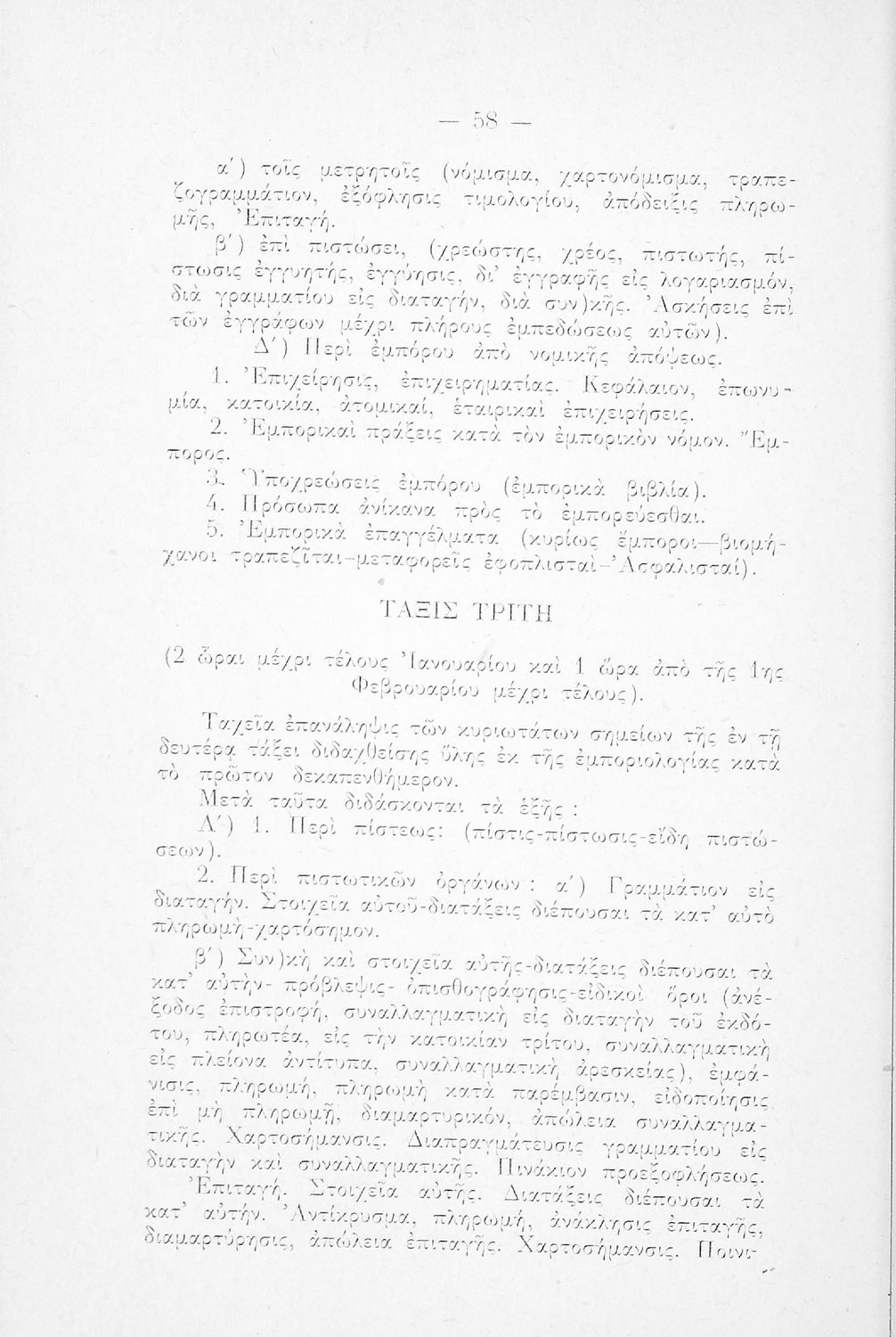 Αναλυτικόν πρόγραμμα των διδασκομένων μαθημάτων εν ταις Μεσαίας Εξαταξίοις Εμπορικαίς Σχολαίς