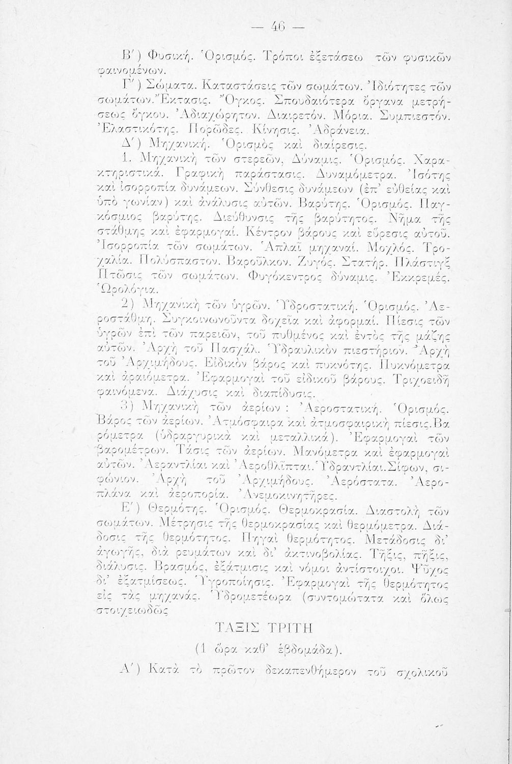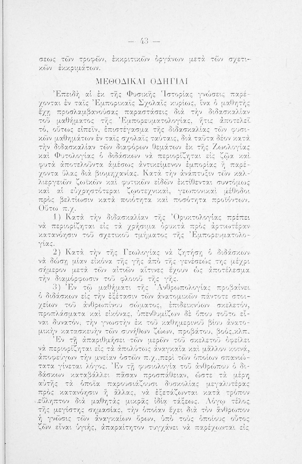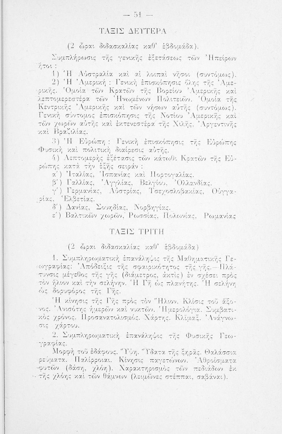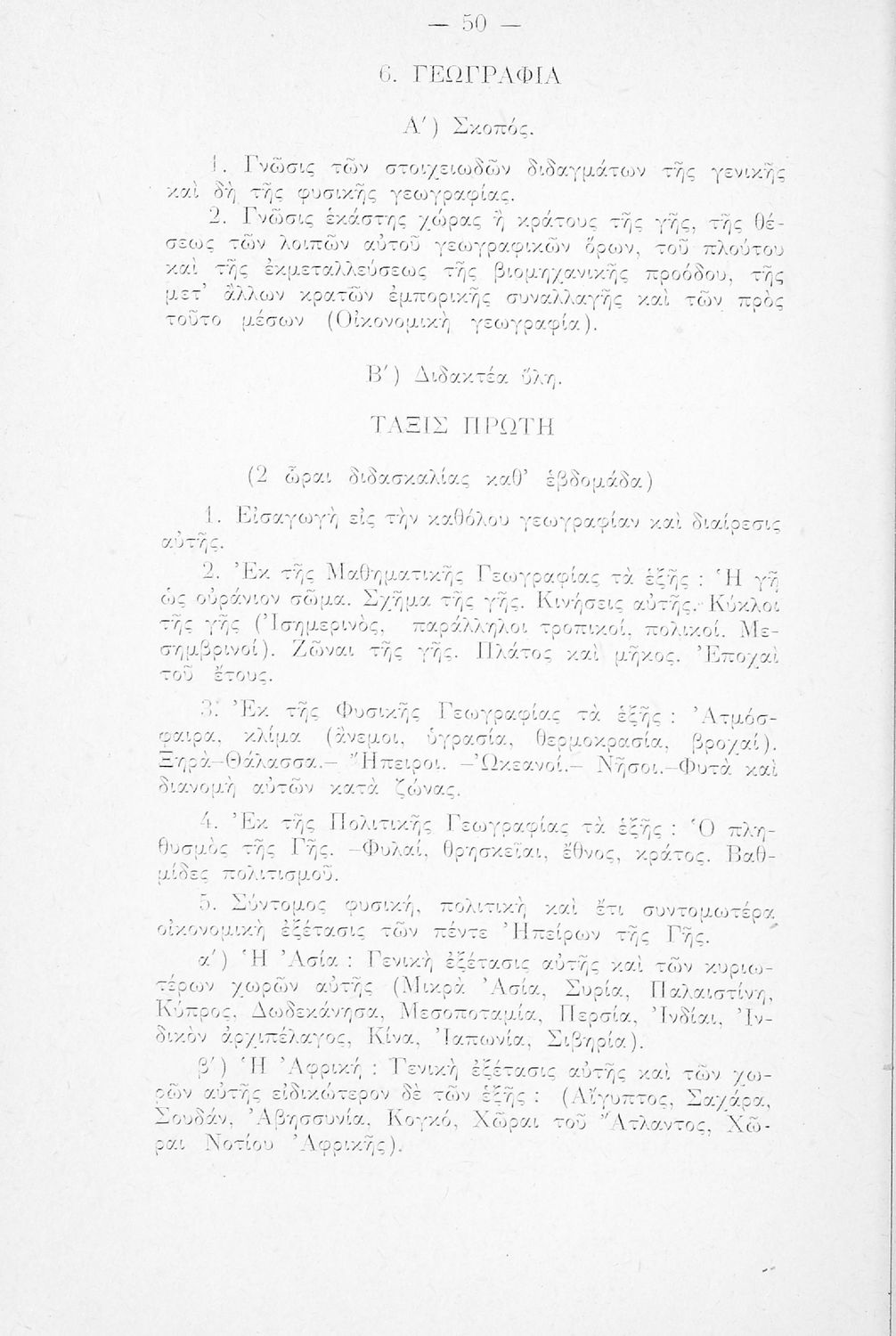 Αναλυτικόν πρόγραμμα των διδασκομένων μαθημάτων εν ταις Μεσαίας Εξαταξίοις Εμπορικαίς Σχολαίς