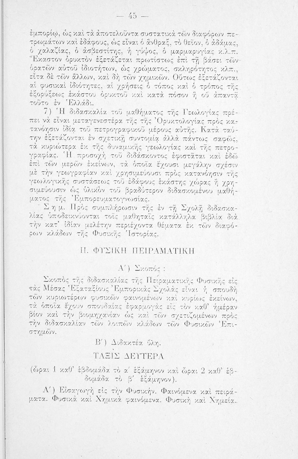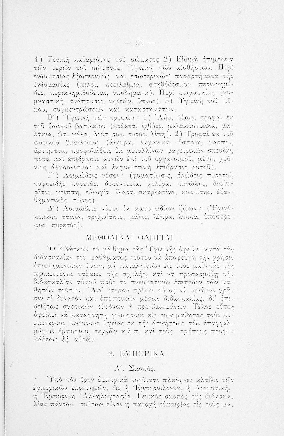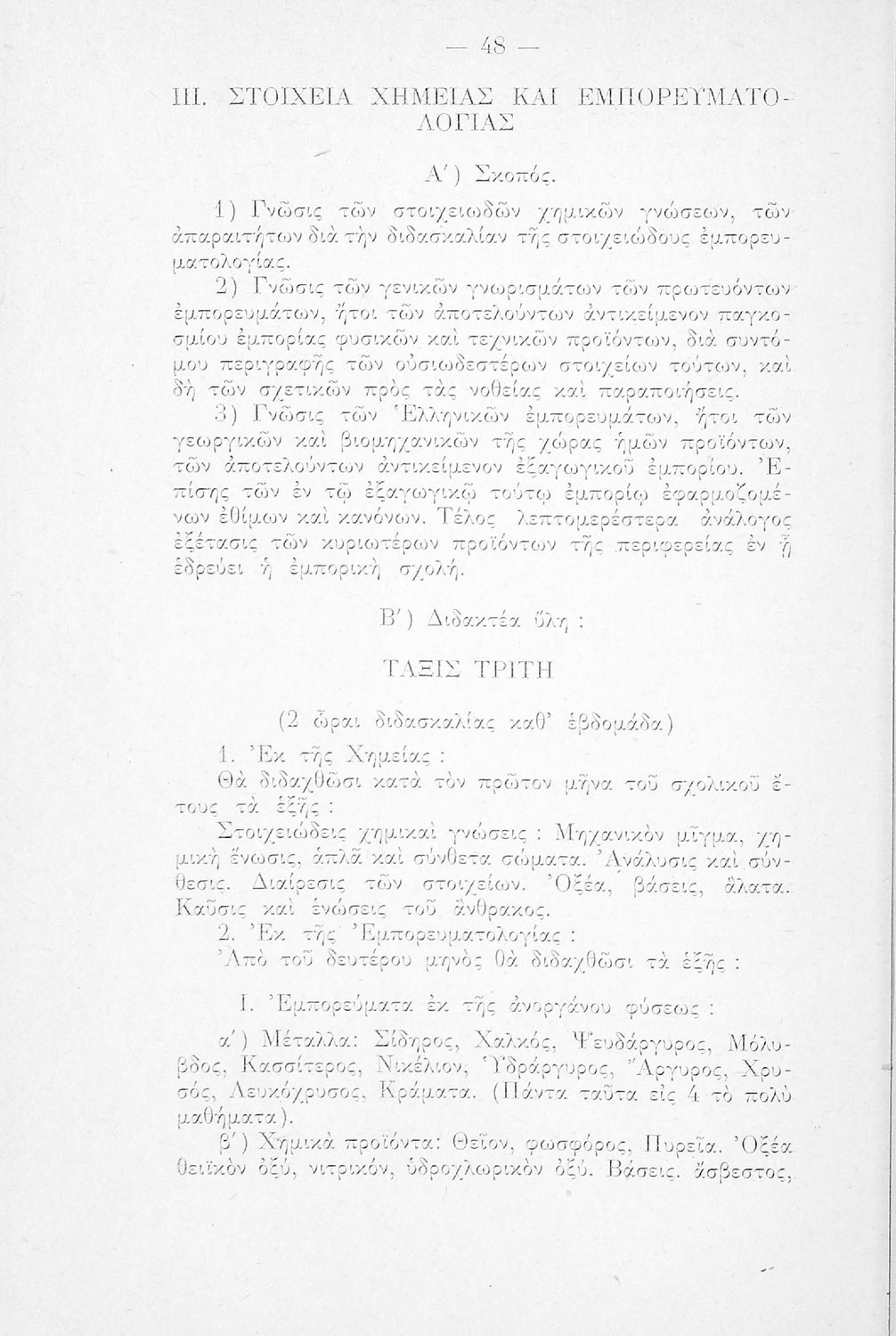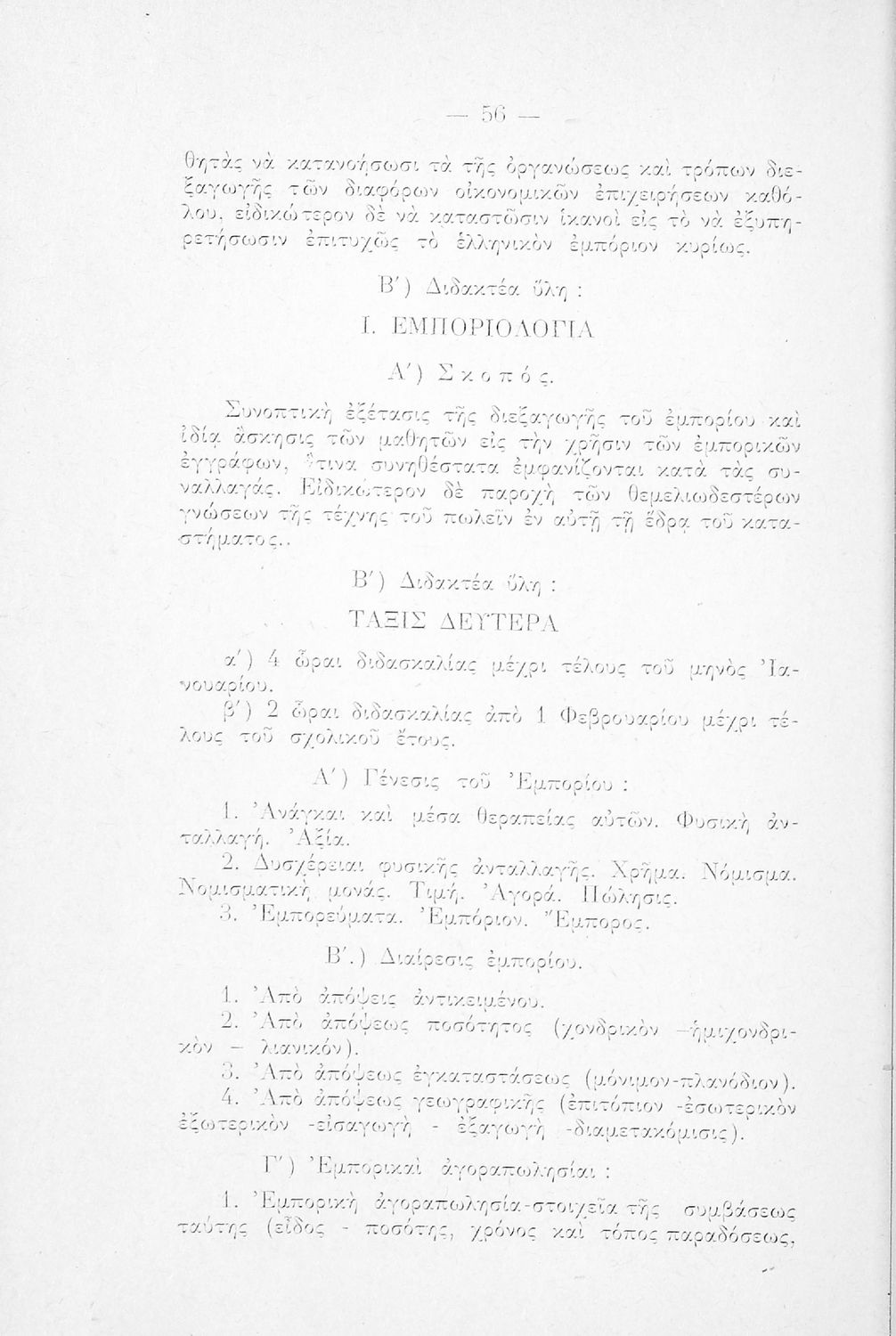 Έκδοση του Υπουργείου Παιδείας και Θρησκευμάτων που περιλαμβάνει τα ωρολόγια και αναλυτικά προγράμματα των μαθημάτων που διδάσκονται στις Εμπορικές Σχολές.