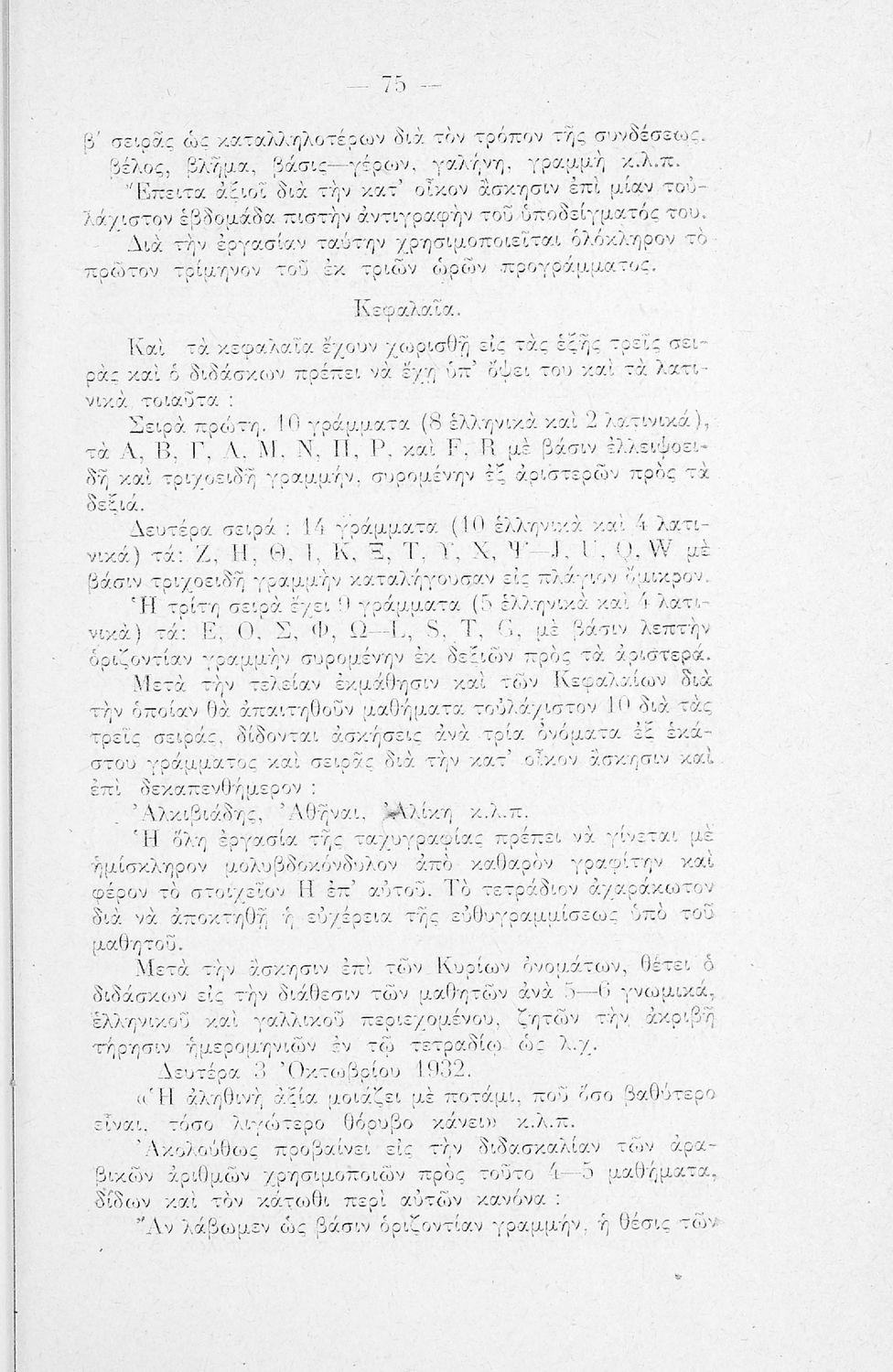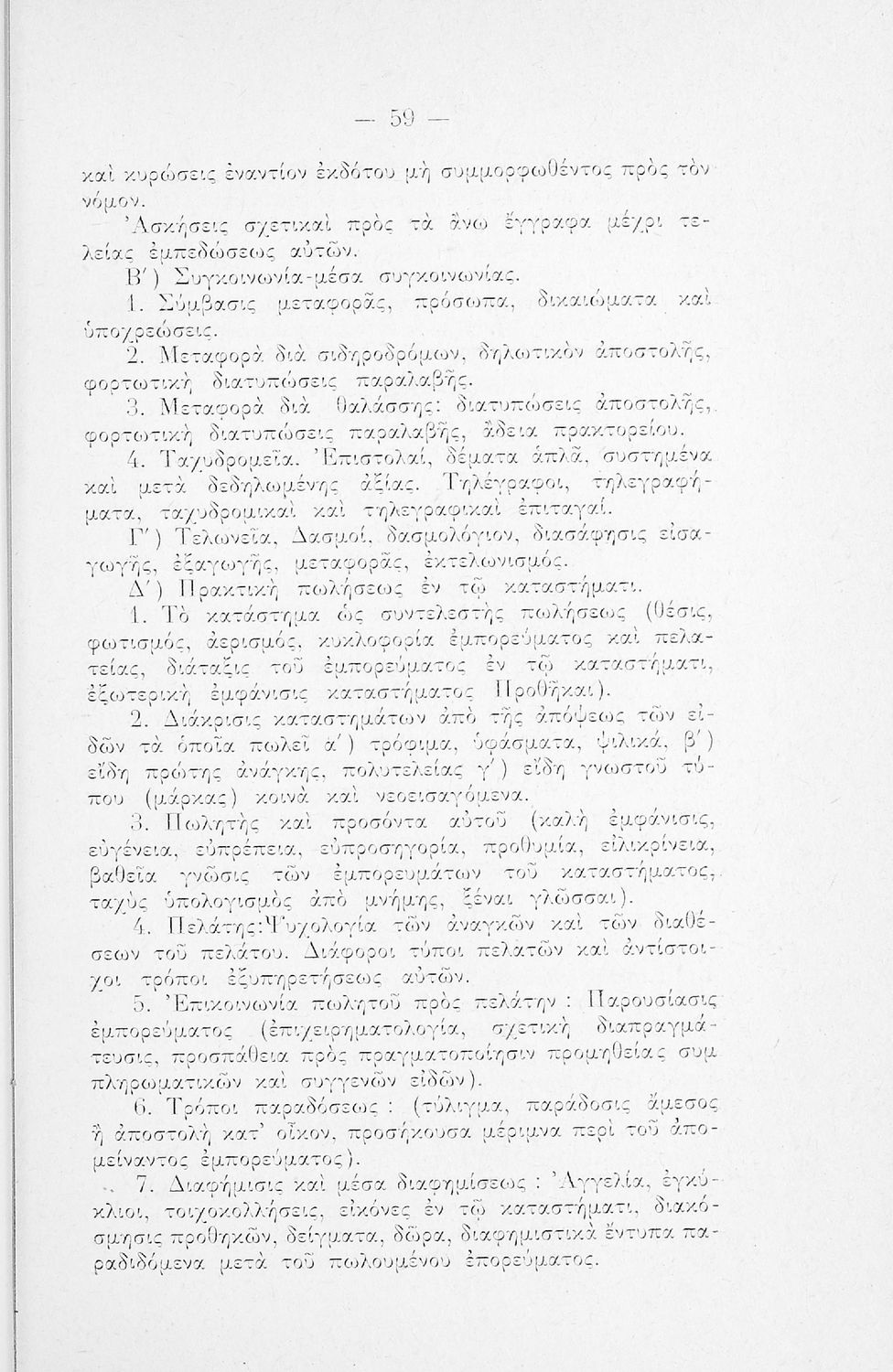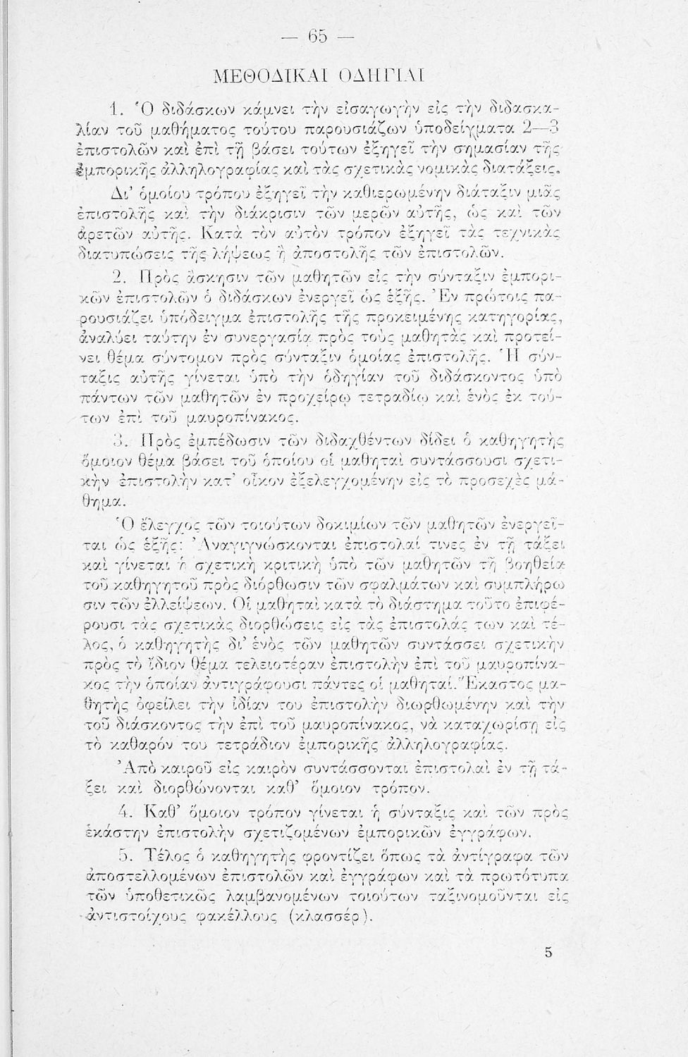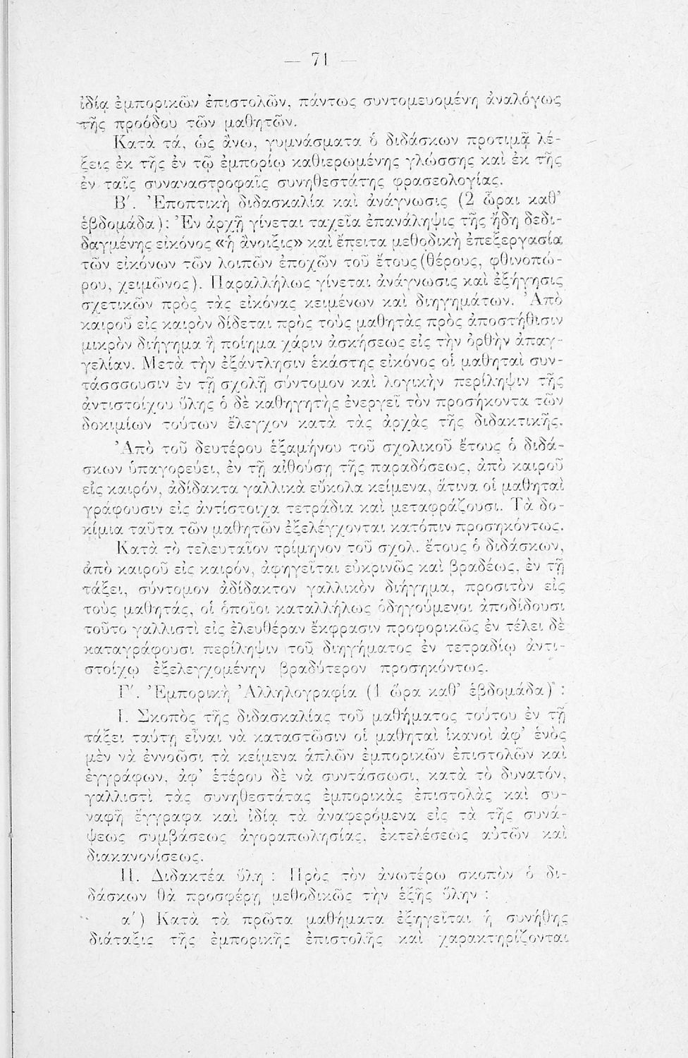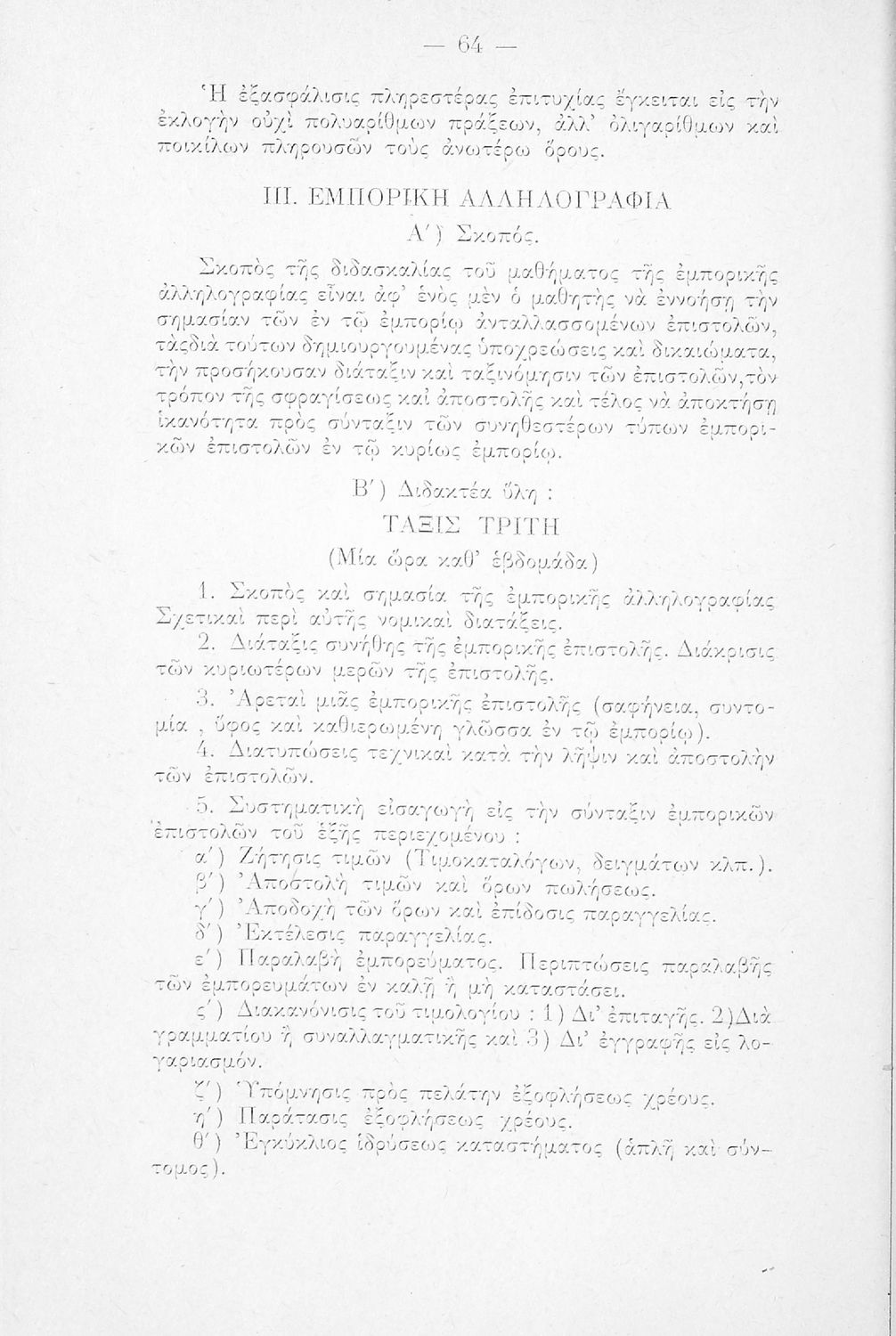 Έκδοση του Υπουργείου Εθνικής Οικονομίας που περιλαμβάνει το αναλυτικό πρόγραμμα των μαθημάτων που διδάσκονταν στις μεσαίες τάξεις των εμπορικών σχολών.