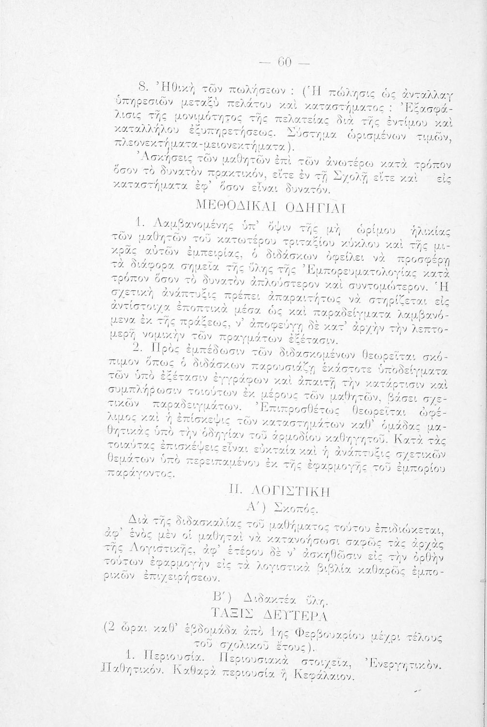 Έκδοση του Υπουργείου Παιδείας και Θρησκευμάτων που περιλαμβάνει τα ωρολόγια και αναλυτικά προγράμματα των μαθημάτων που διδάσκονται στις Εμπορικές Σχολές.
