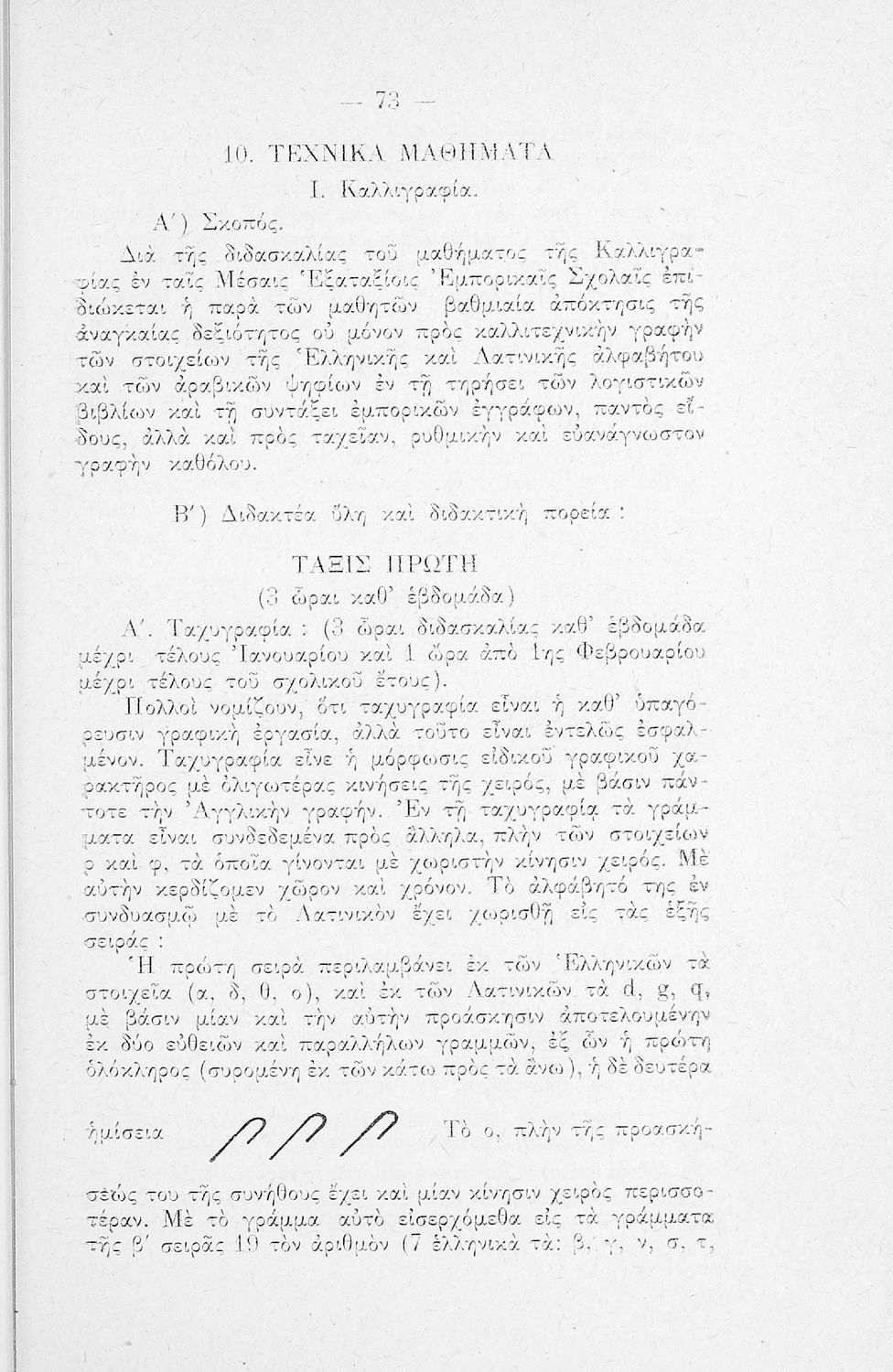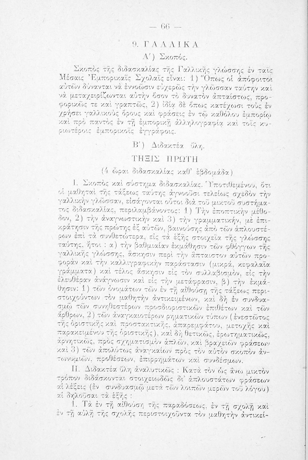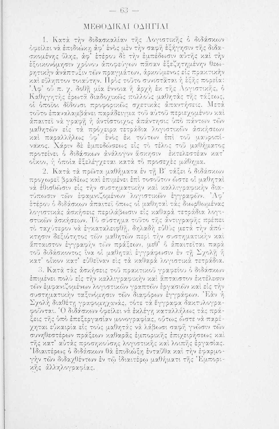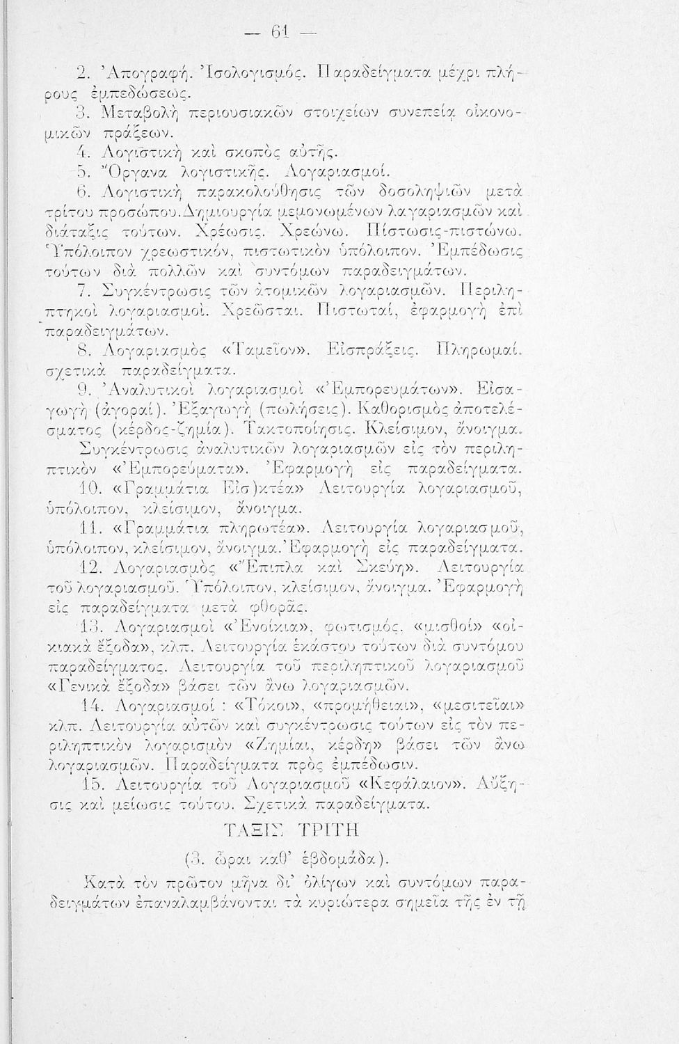 Αναλυτικόν πρόγραμμα των διδασκομένων μαθημάτων εν ταις Μεσαίας Εξαταξίοις Εμπορικαίς Σχολαίς