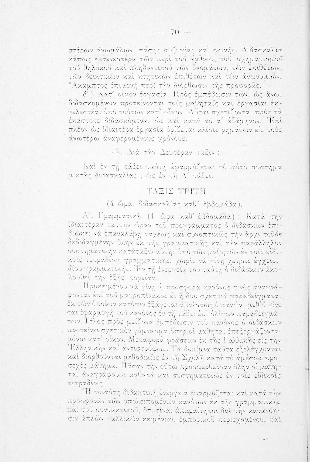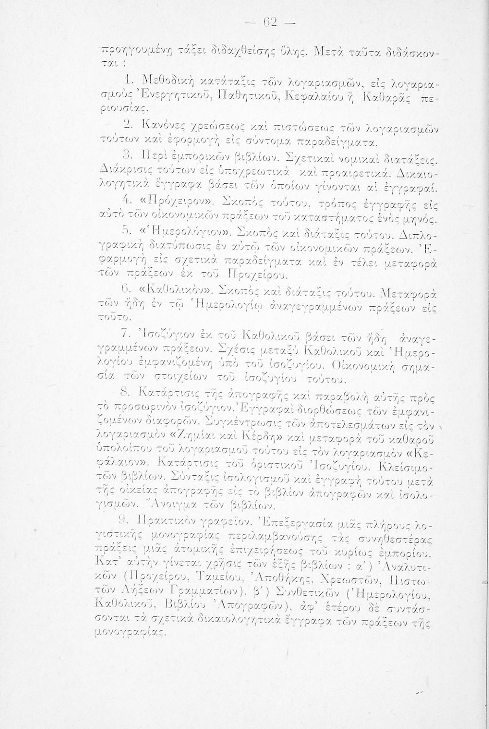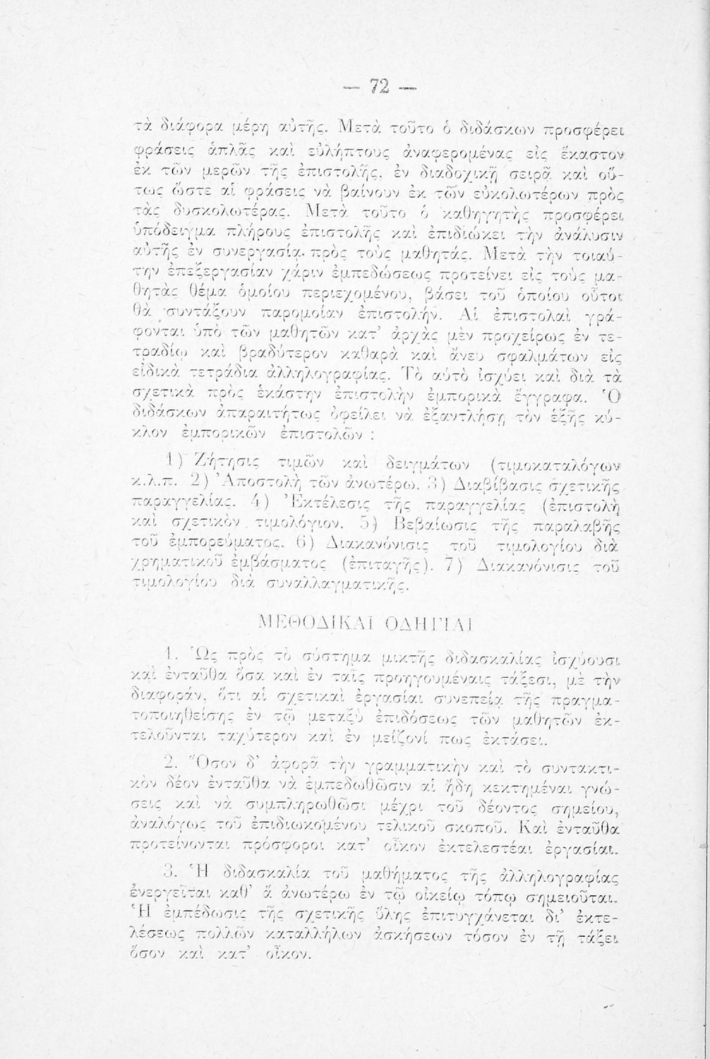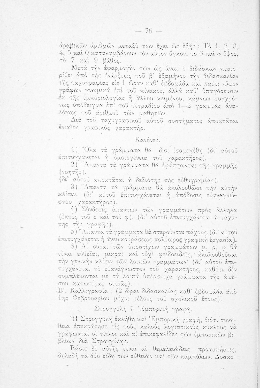 Αναλυτικόν πρόγραμμα των διδασκομένων μαθημάτων εν ταις Μεσαίας Εξαταξίοις Εμπορικαίς Σχολαίς