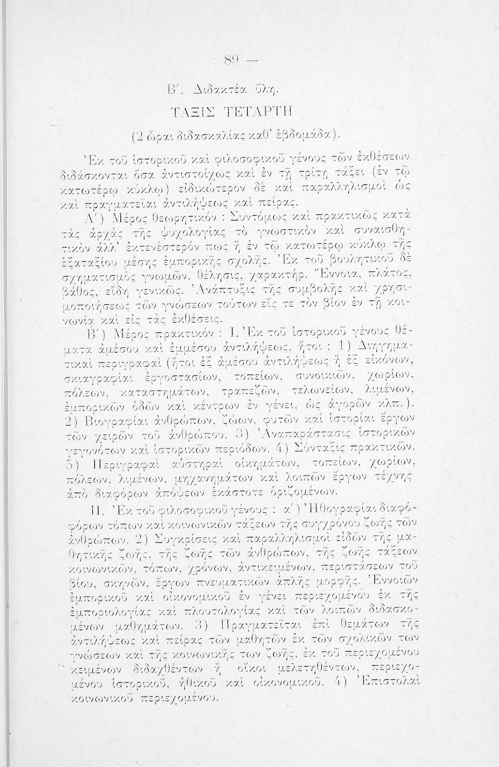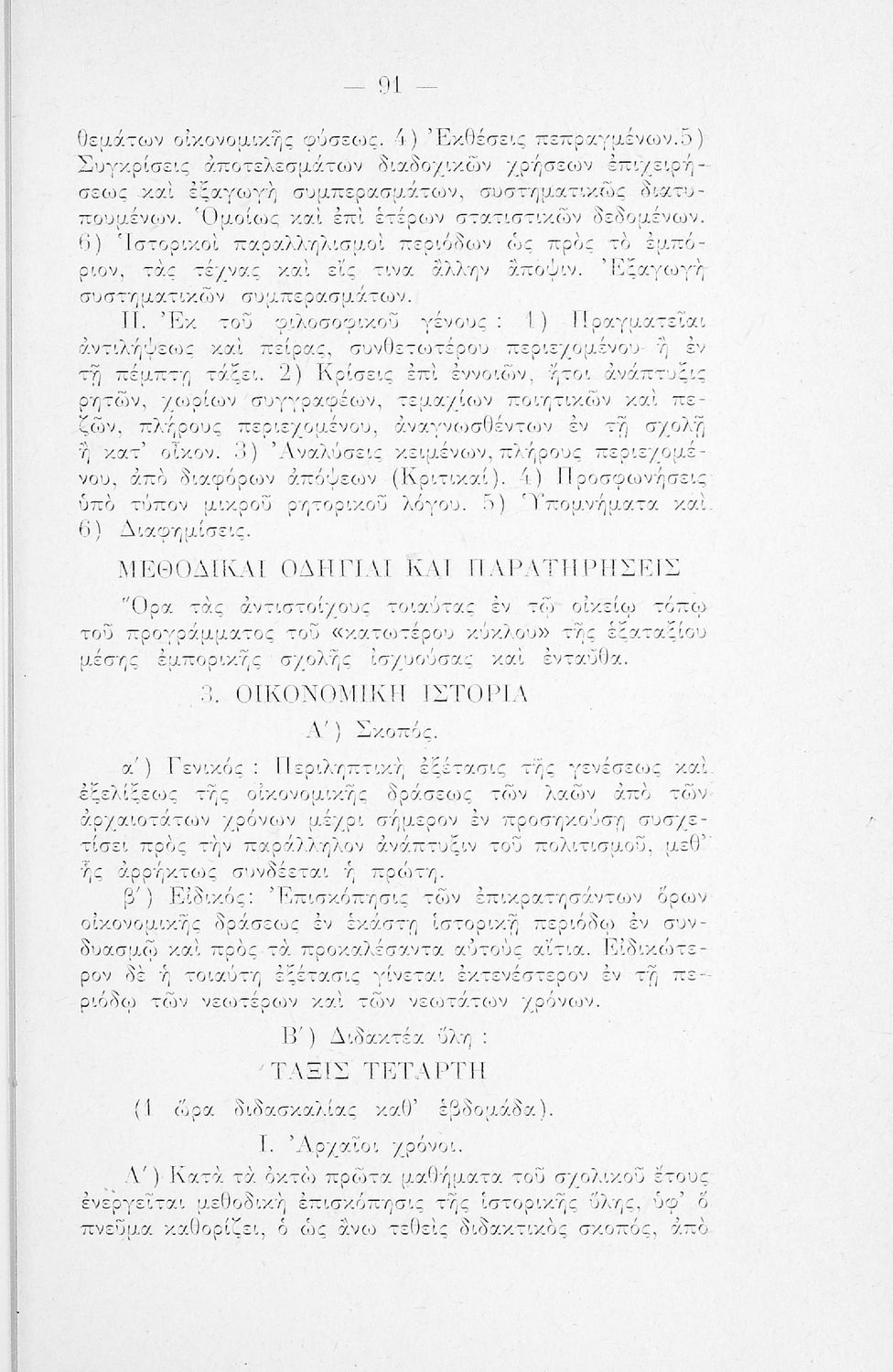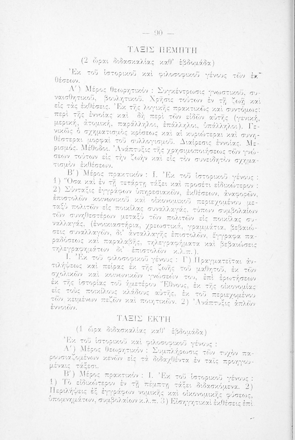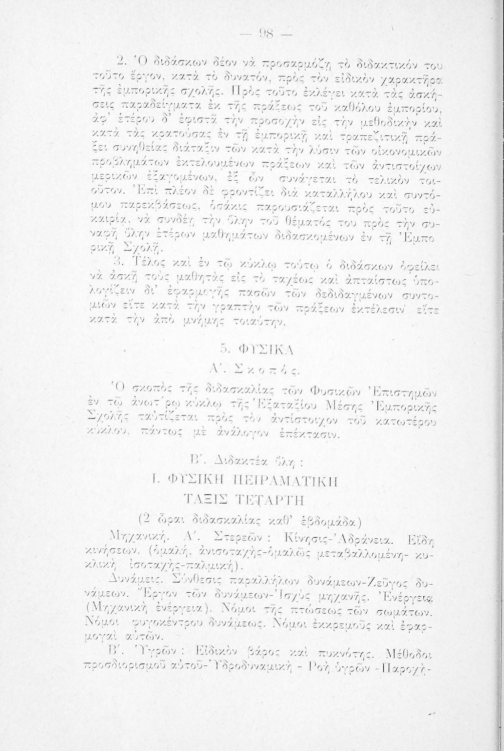 Αναλυτικόν πρόγραμμα των διδασκομένων μαθημάτων εν ταις Μεσαίας Εξαταξίοις Εμπορικαίς Σχολαίς