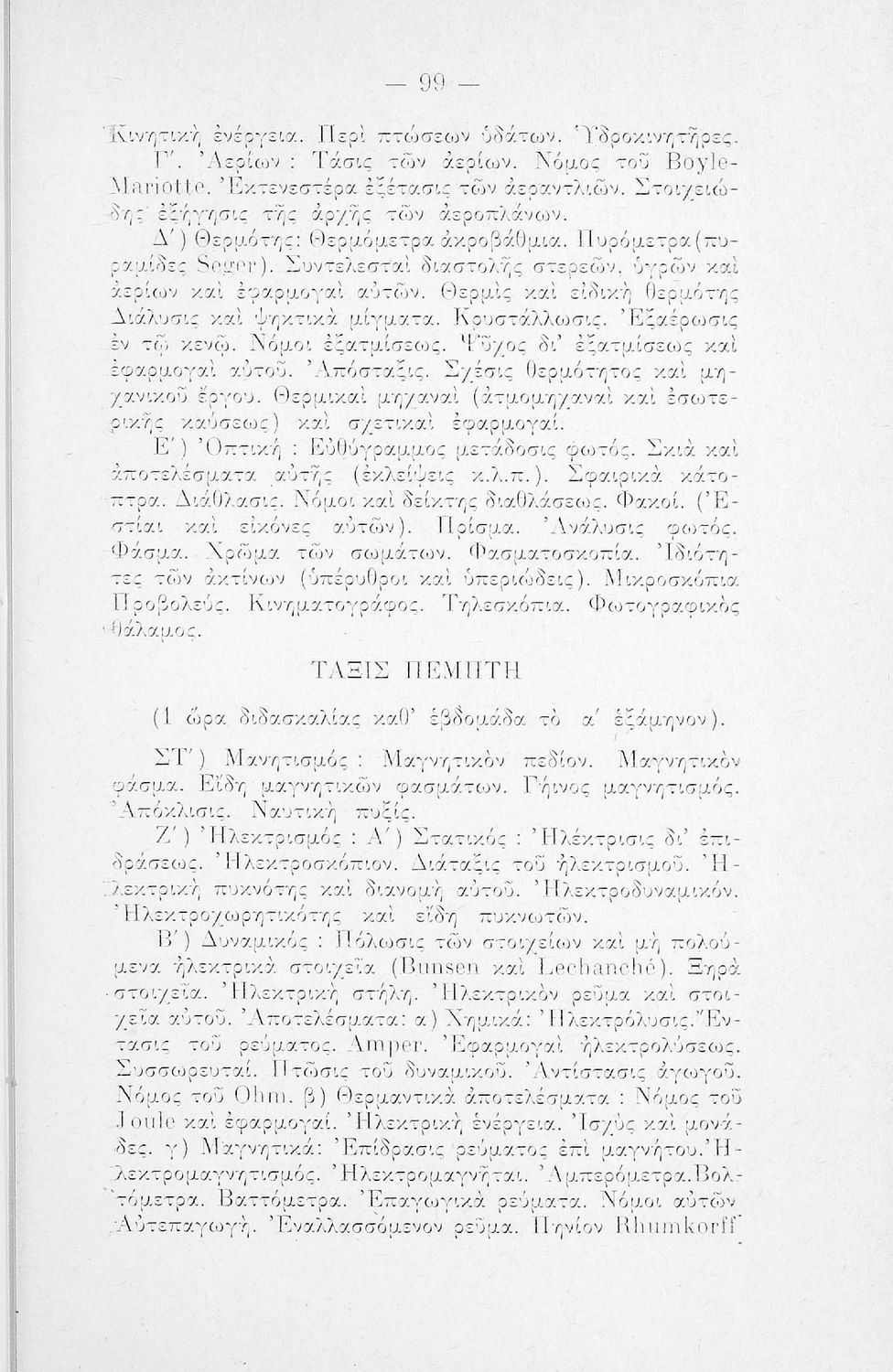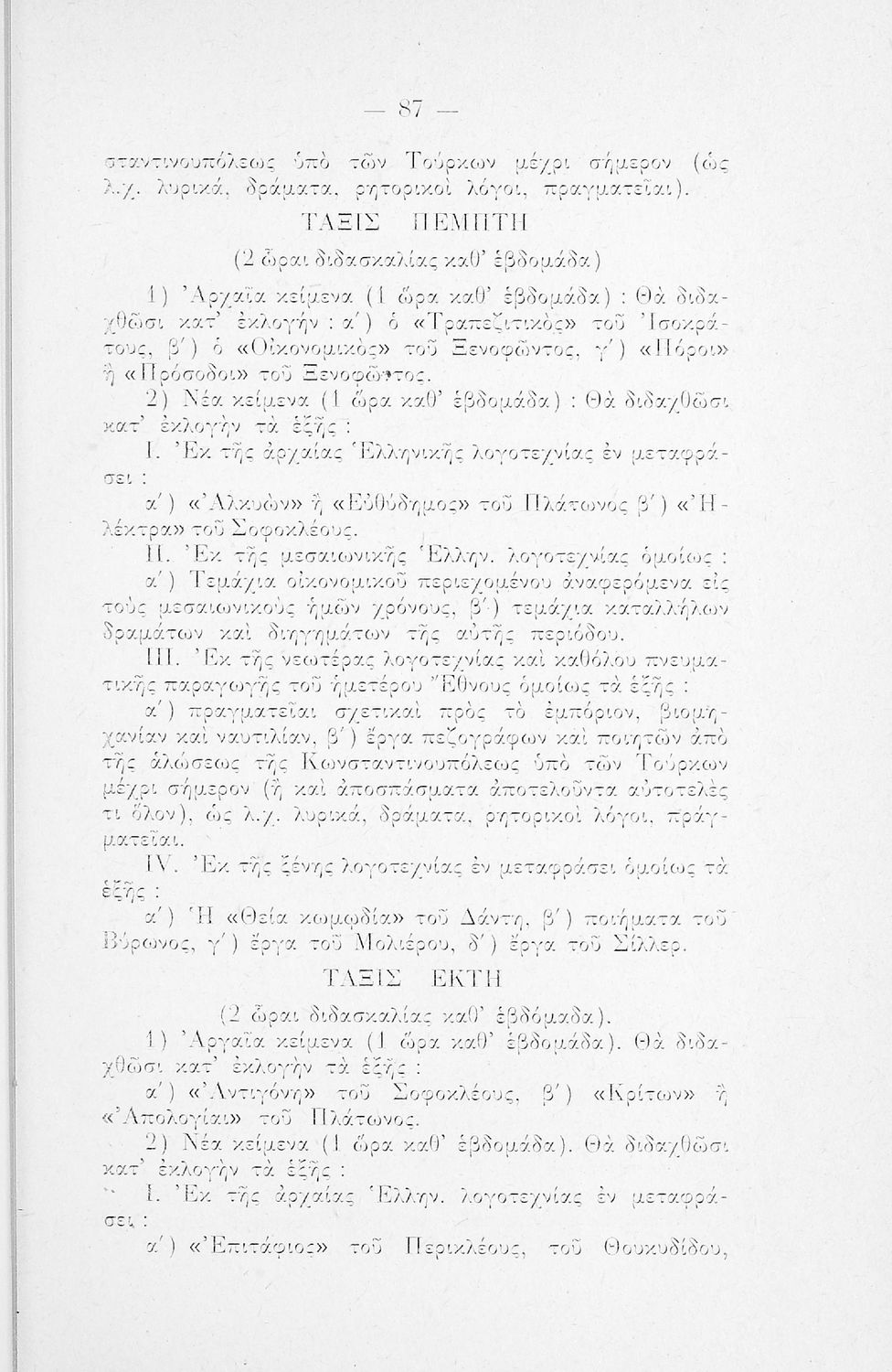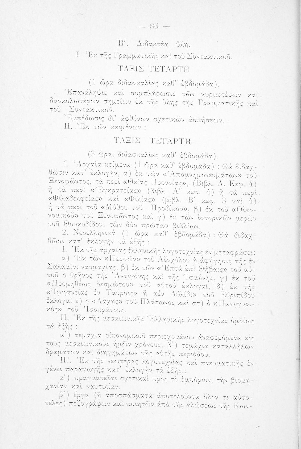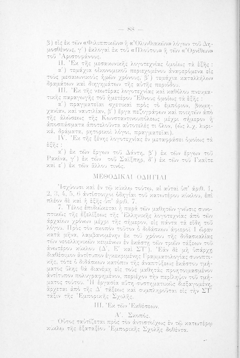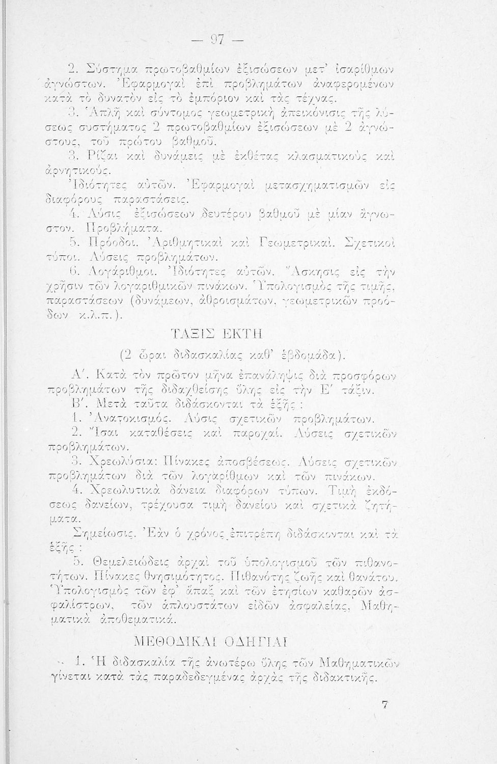 Αναλυτικόν πρόγραμμα των διδασκομένων μαθημάτων εν ταις Μεσαίας Εξαταξίοις Εμπορικαίς Σχολαίς