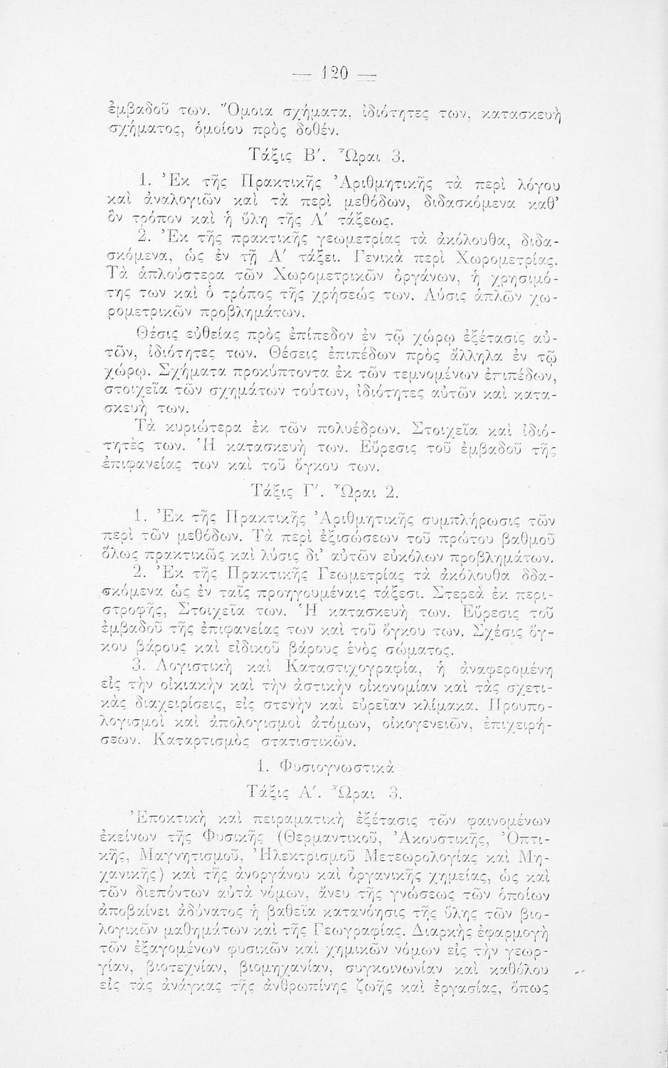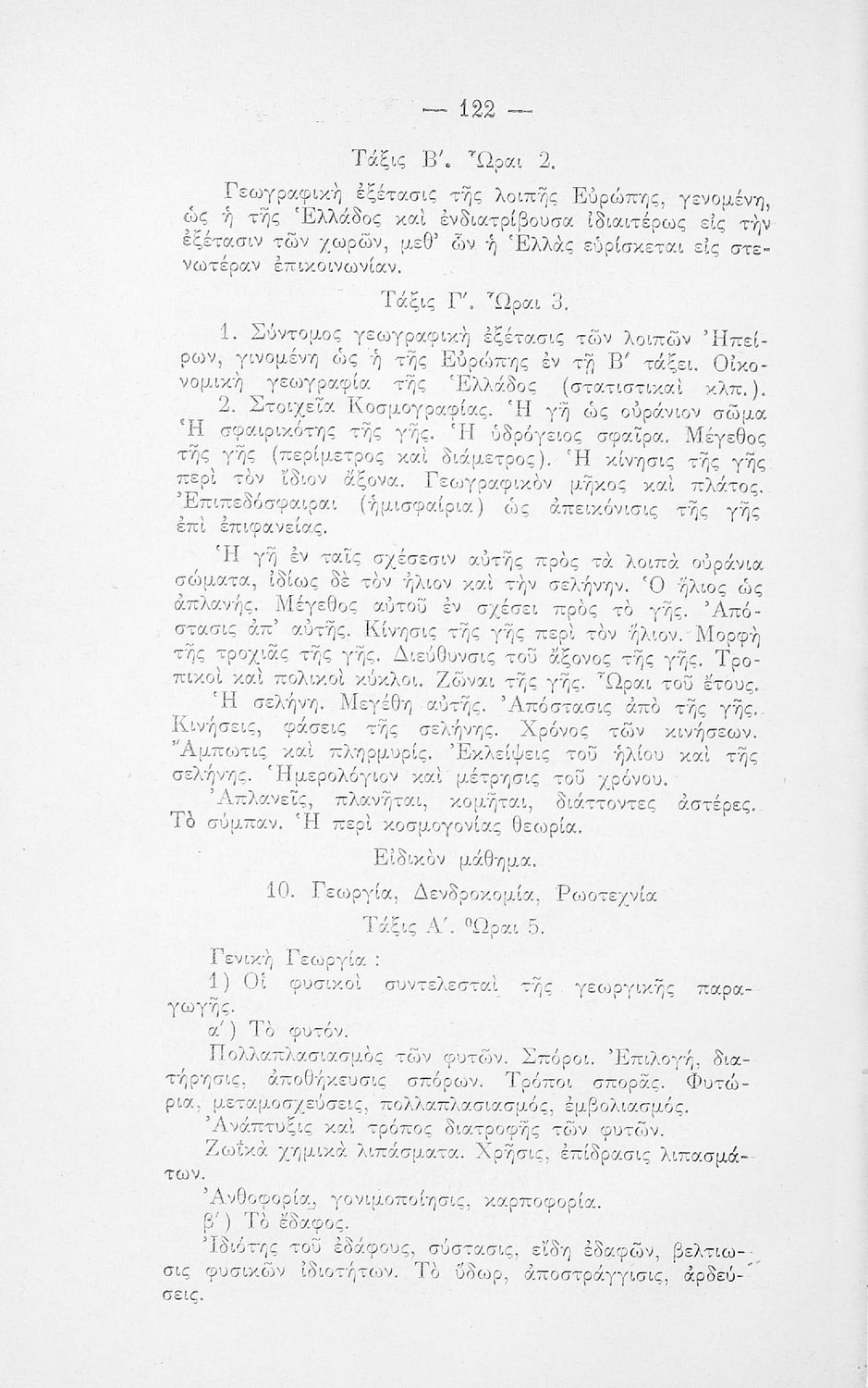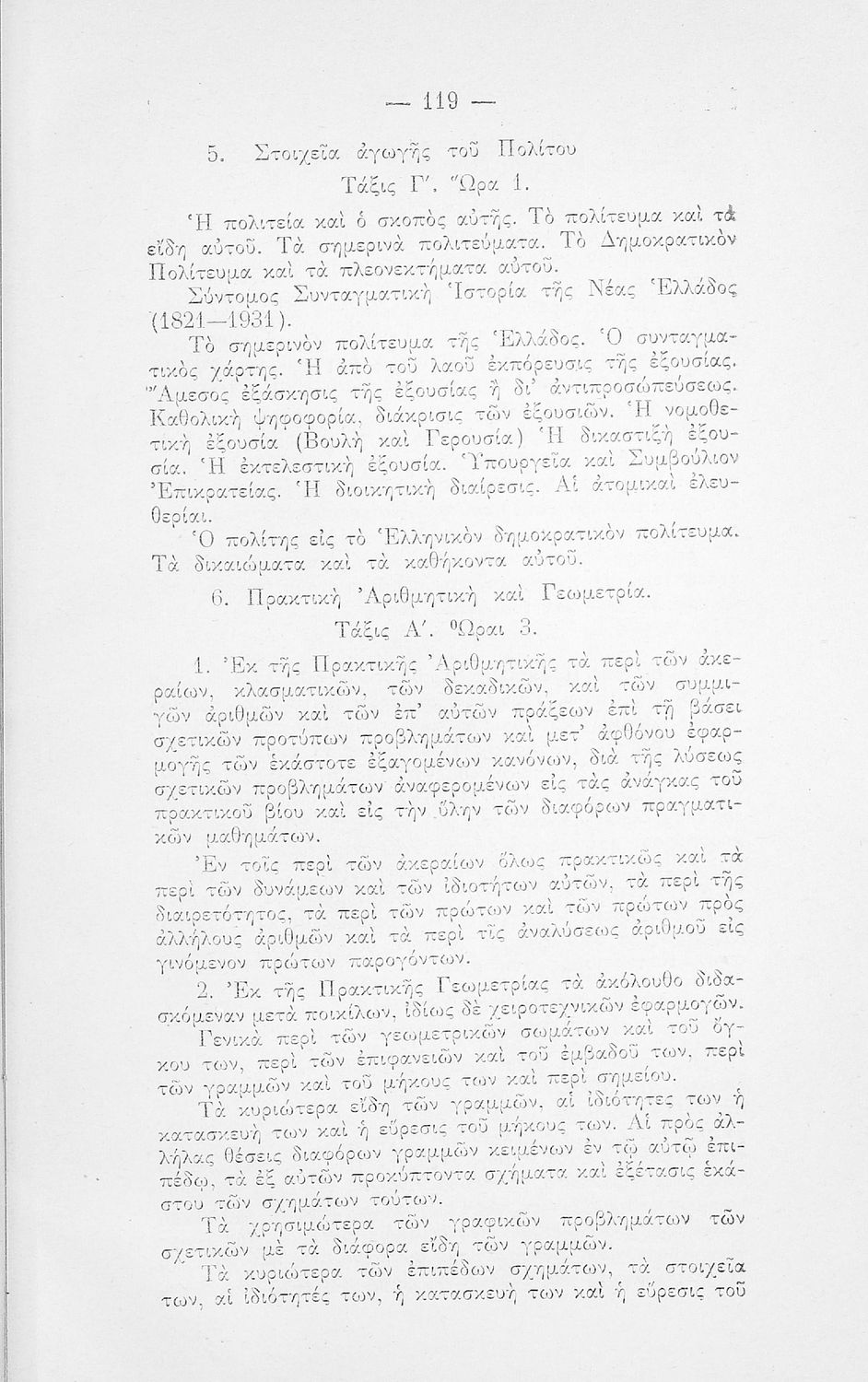 Έκδοση του Υπουργείο Παιδείας που περιλαμβάνει τα ωρολόγια αναλυτικά προγράμματα των μαθημάτων που διδάσκονται στα Εξατάξια Γυμνάσια, Πρακτικά Λύκεια, Ανώτερα Παρθεναγωγεία και τα Τριτάξια Αστικά Σχολεία.