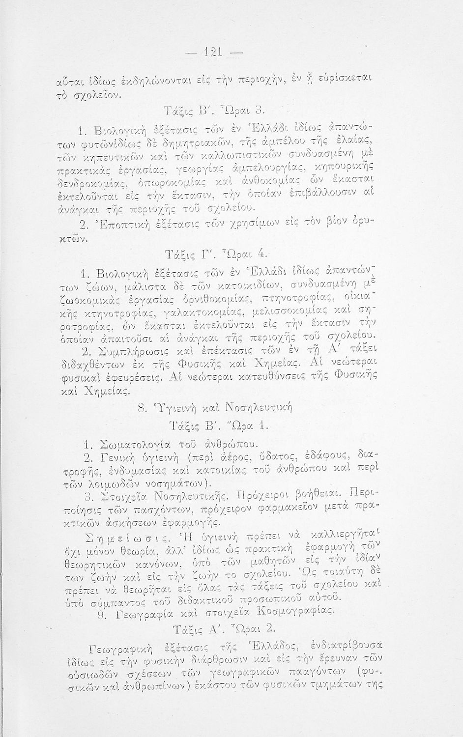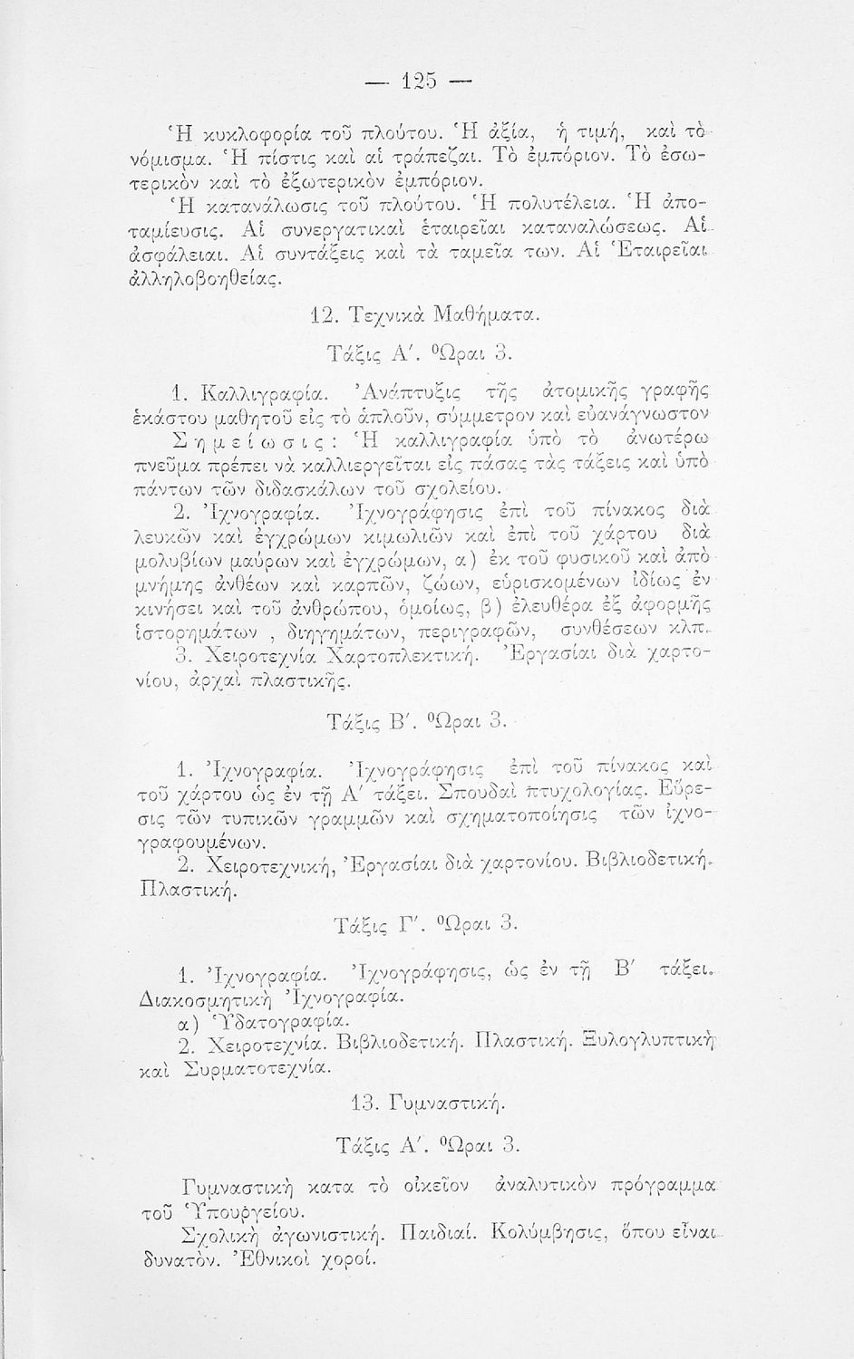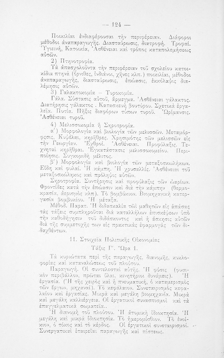 Έκδοση του Υπουργείο Παιδείας που περιλαμβάνει τα ωρολόγια αναλυτικά προγράμματα των μαθημάτων που διδάσκονται στα Εξατάξια Γυμνάσια, Πρακτικά Λύκεια, Ανώτερα Παρθεναγωγεία και τα Τριτάξια Αστικά Σχολεία.