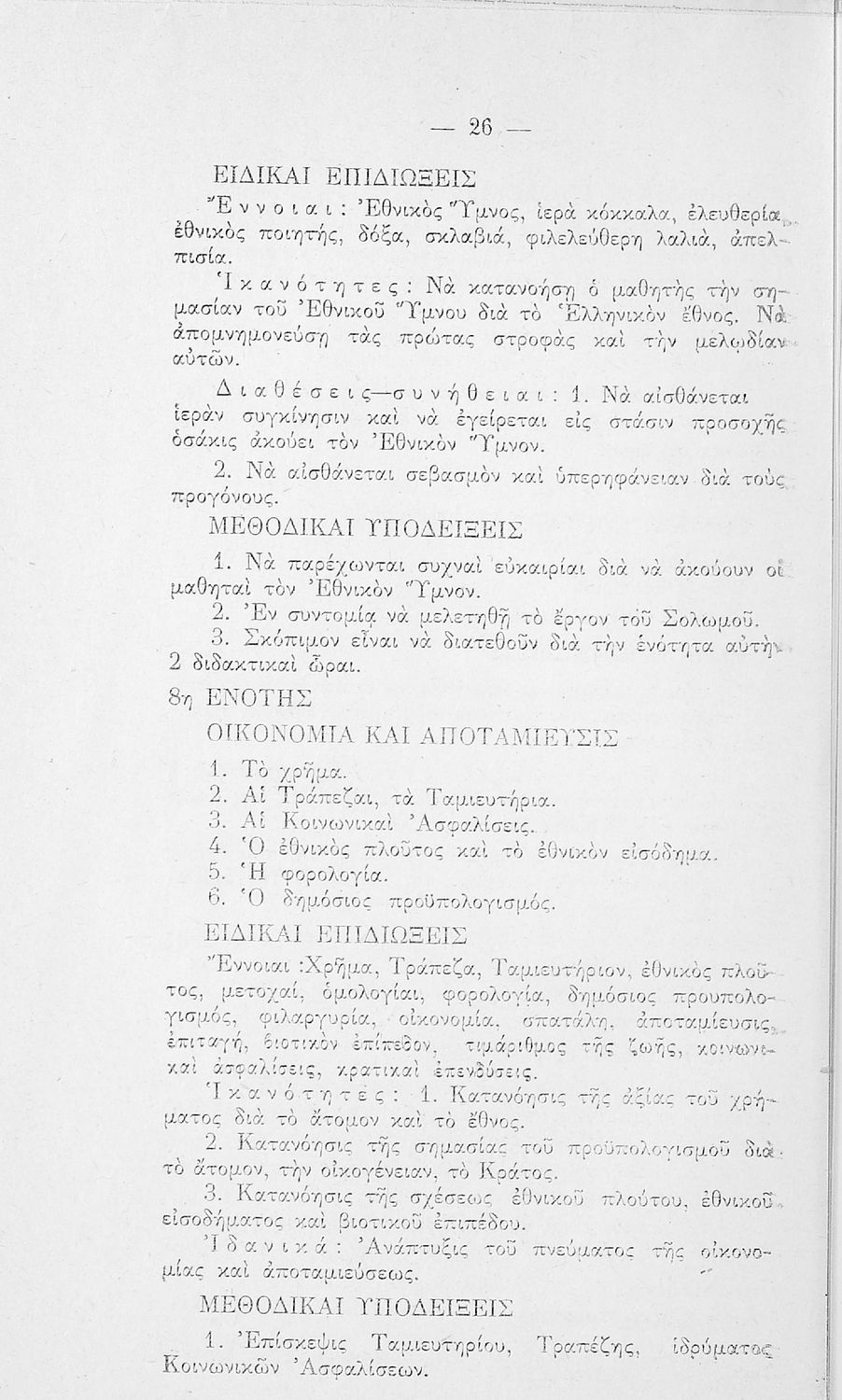 Περί του αναλυτικού και ωρολογίου προγράμματος των Πατριδογνωστικών μαθημάτων των Δημοτικών Σχολείων
