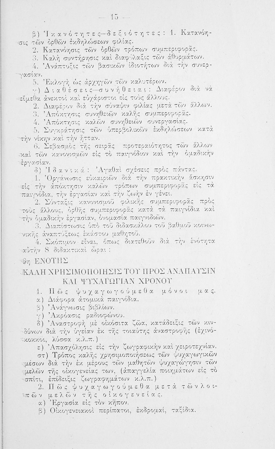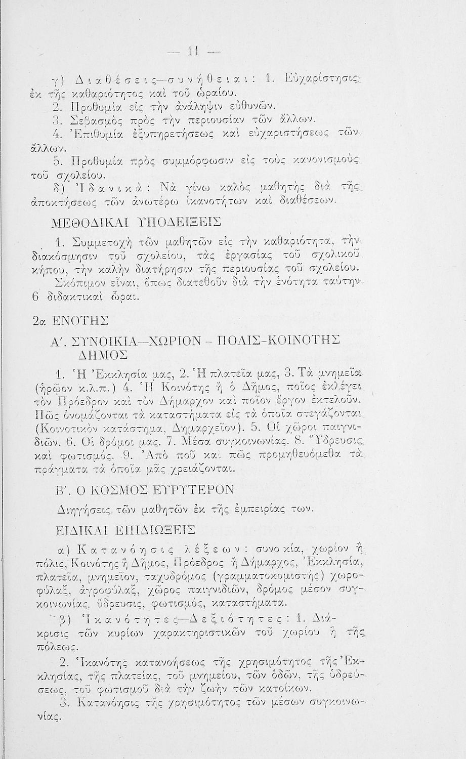 Περί του αναλυτικού και ωρολογίου προγράμματος των Πατριδογνωστικών μαθημάτων των Δημοτικών Σχολείων