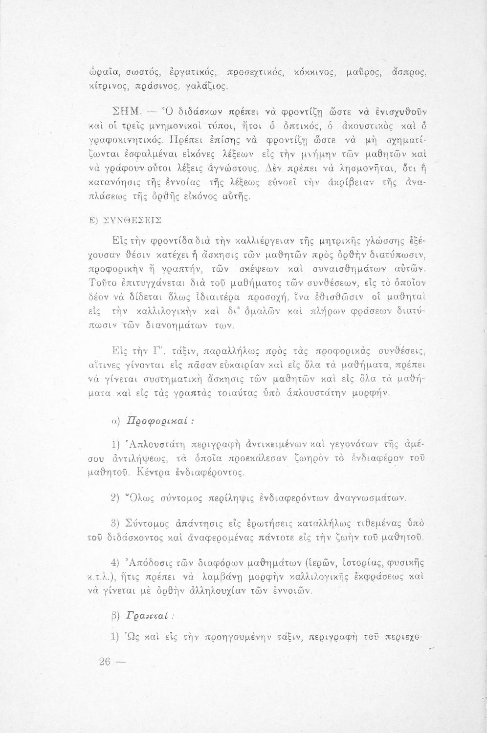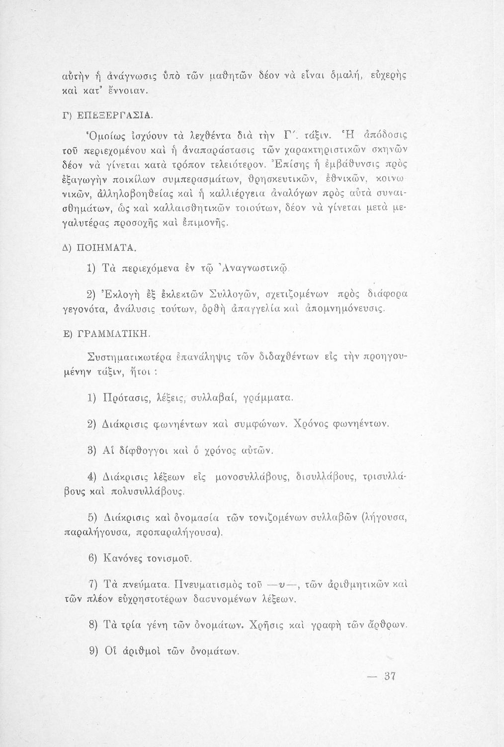 Αναλυτικόν πρόγραμμα της διδασκομένης ύλης εις τα Ελληνικά Μαθήματα των πλήρων Δημοτικών Σχολείων και εις τα Γαλλικά και Αγγλικά των σχολών Δημοτικής και Μέσης Εκπαίδευσης