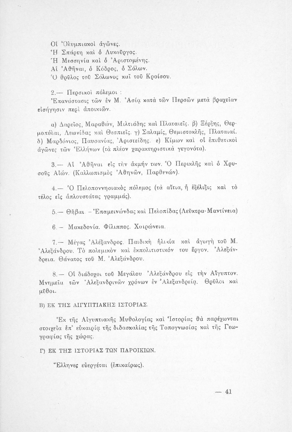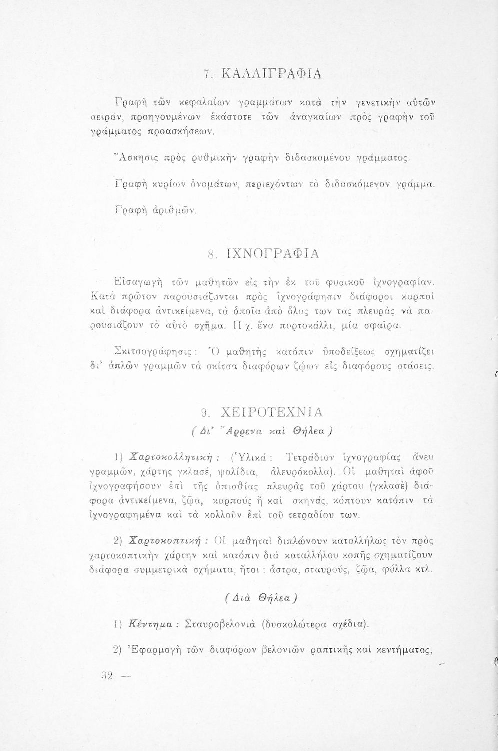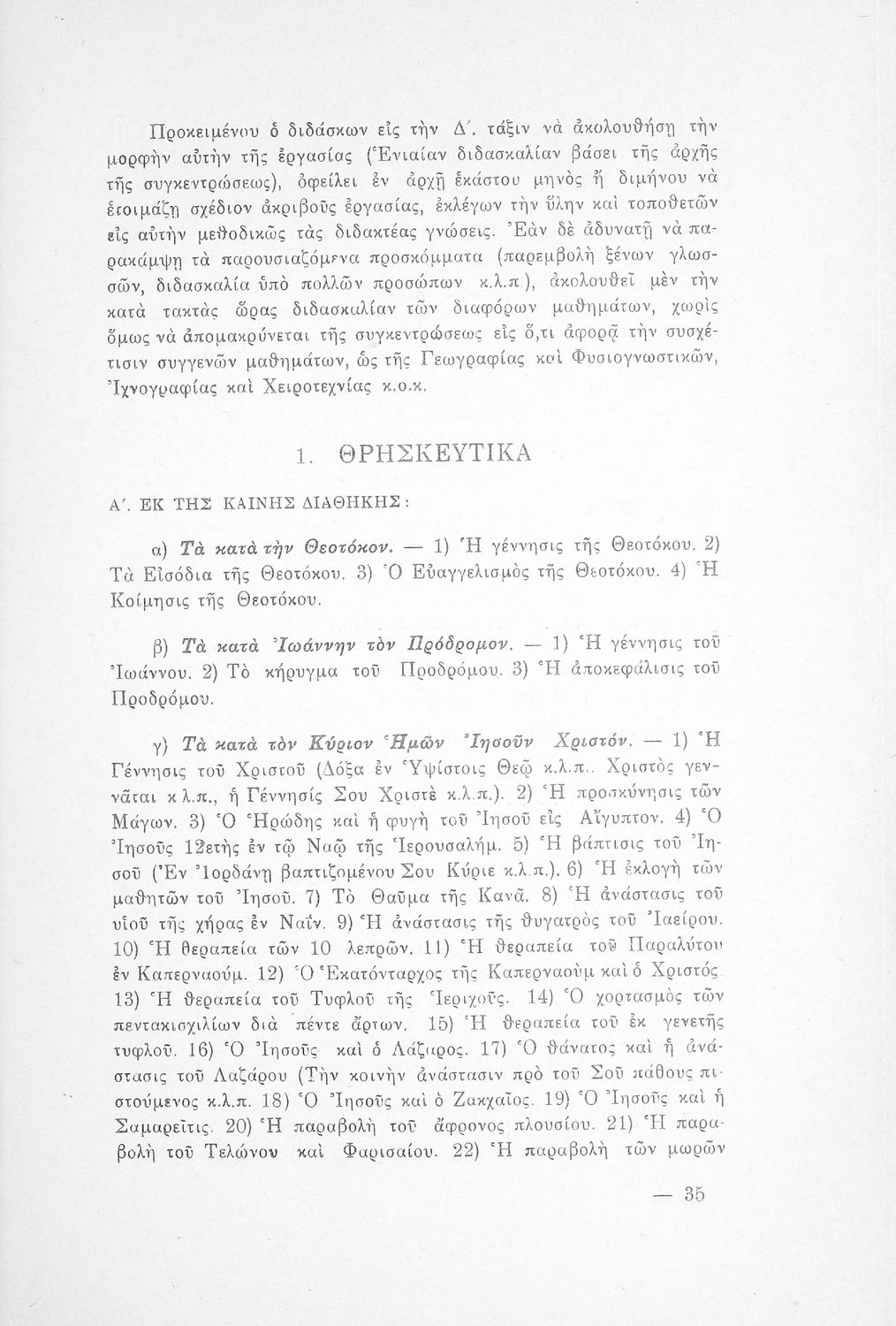 Αναλυτικό πρόγραμμα που εκδόθηκε με εντολή του Υπουργείου των Εκκλησιαστικών και της Δημόσιας Εκπαιδεύσεως από το τμήμα Δ΄, Μέσης Εκπαίδευσης, Γυμναστικής και Σκοποβολής. Στο εξώφυλλο υπάρχει το βασιλικό σήμα.
