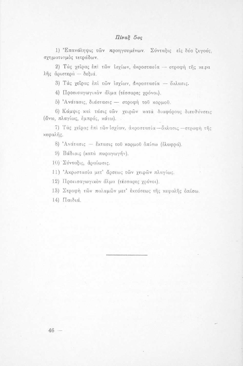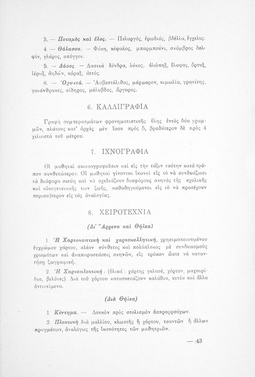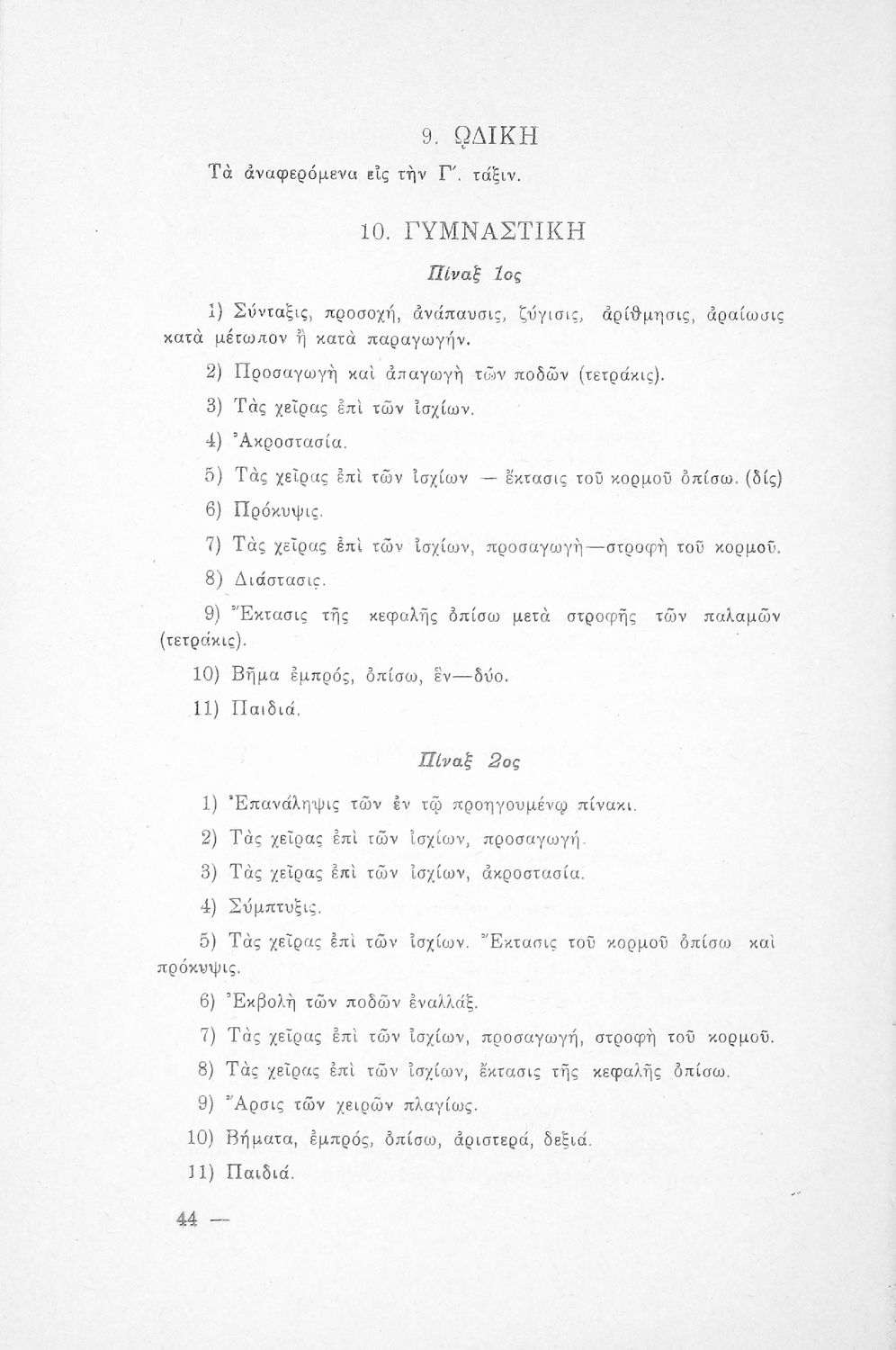 Αναλυτικό πρόγραμμα που εκδόθηκε με εντολή του Υπουργείου των Εκκλησιαστικών και της Δημόσιας Εκπαιδεύσεως από το τμήμα Δ΄, Μέσης Εκπαίδευσης, Γυμναστικής και Σκοποβολής. Στο εξώφυλλο υπάρχει το βασιλικό σήμα.