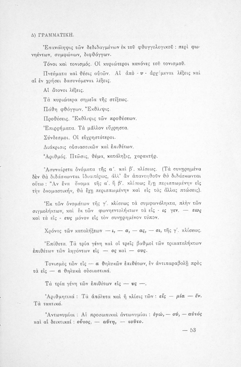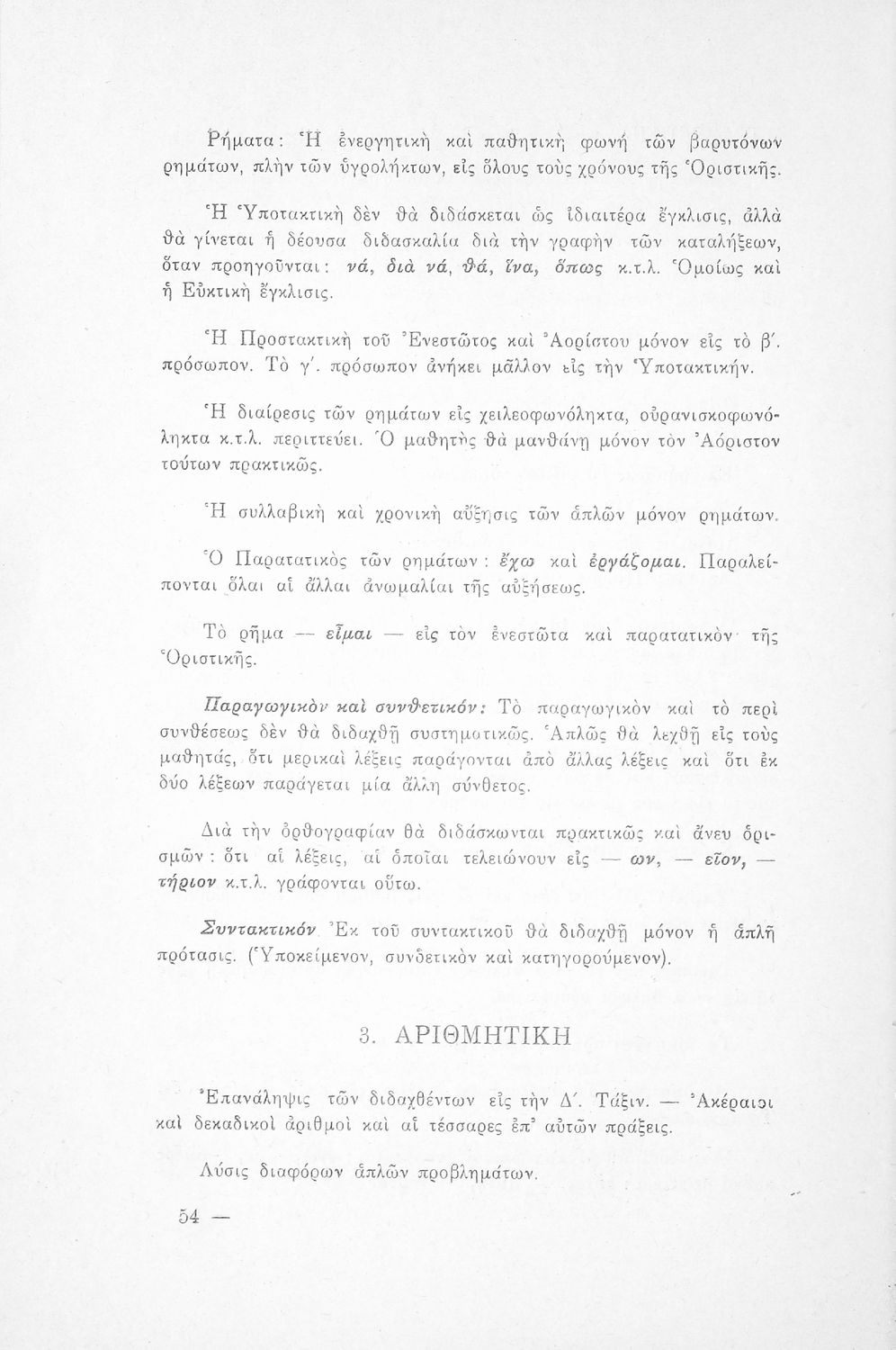 Αναλυτικόν πρόγραμμα της διδασκομένης ύλης εις τα Ελληνικά Μαθήματα των πλήρων Δημοτικών Σχολείων και εις τα Γαλλικά και Αγγλικά των σχολών Δημοτικής και Μέσης Εκπαίδευσης