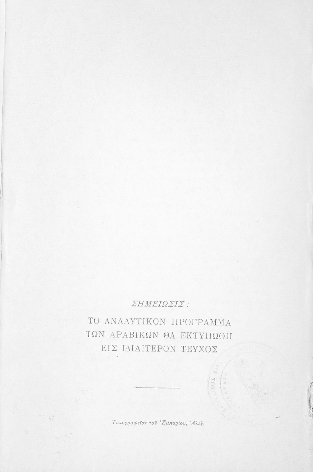 Εκδότης: Τυπογραφείου του Εμπορίου