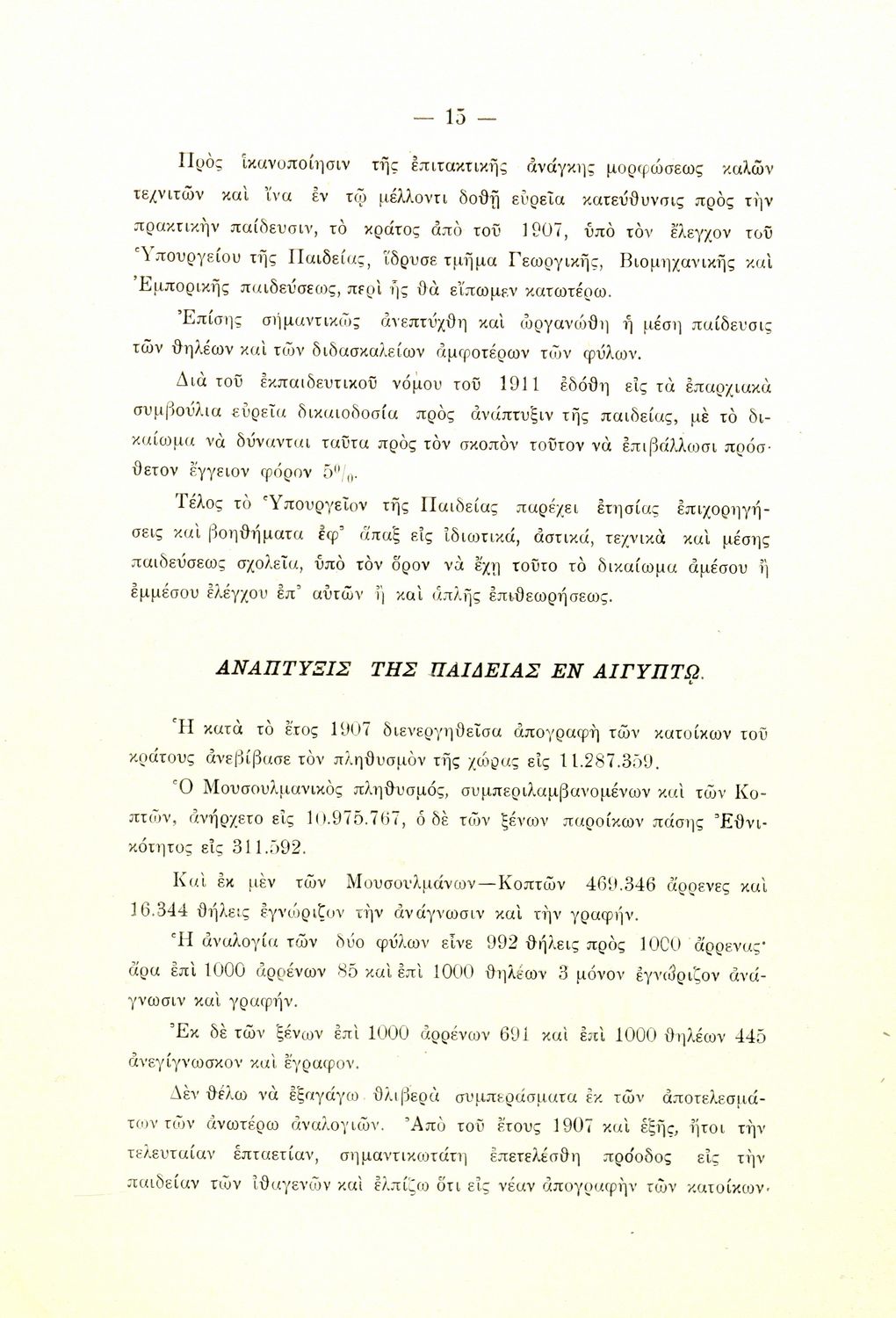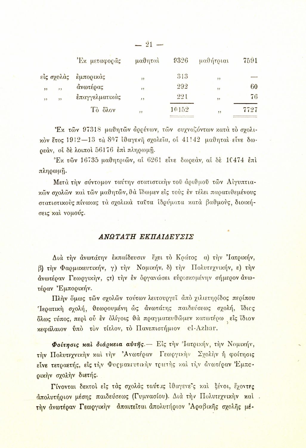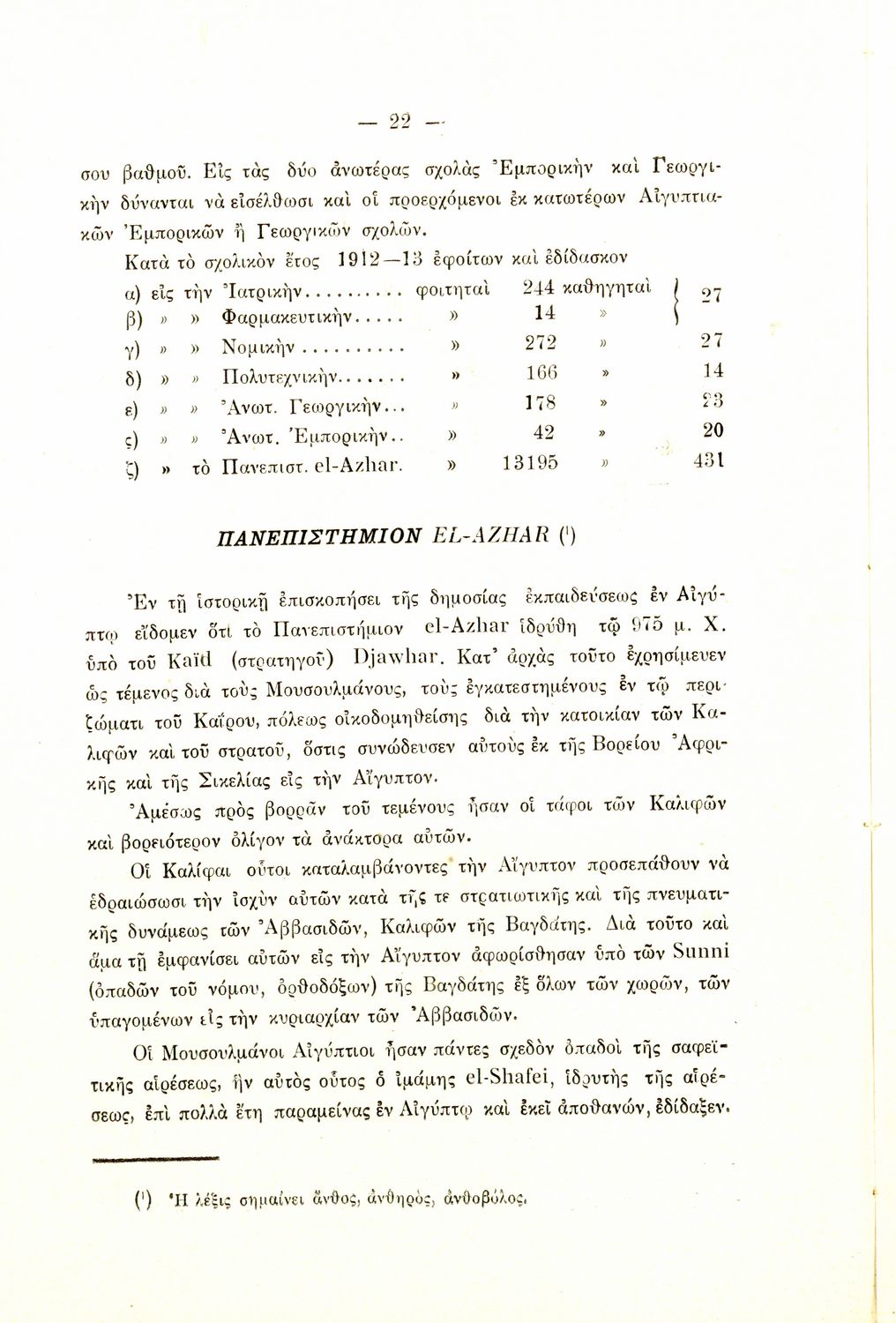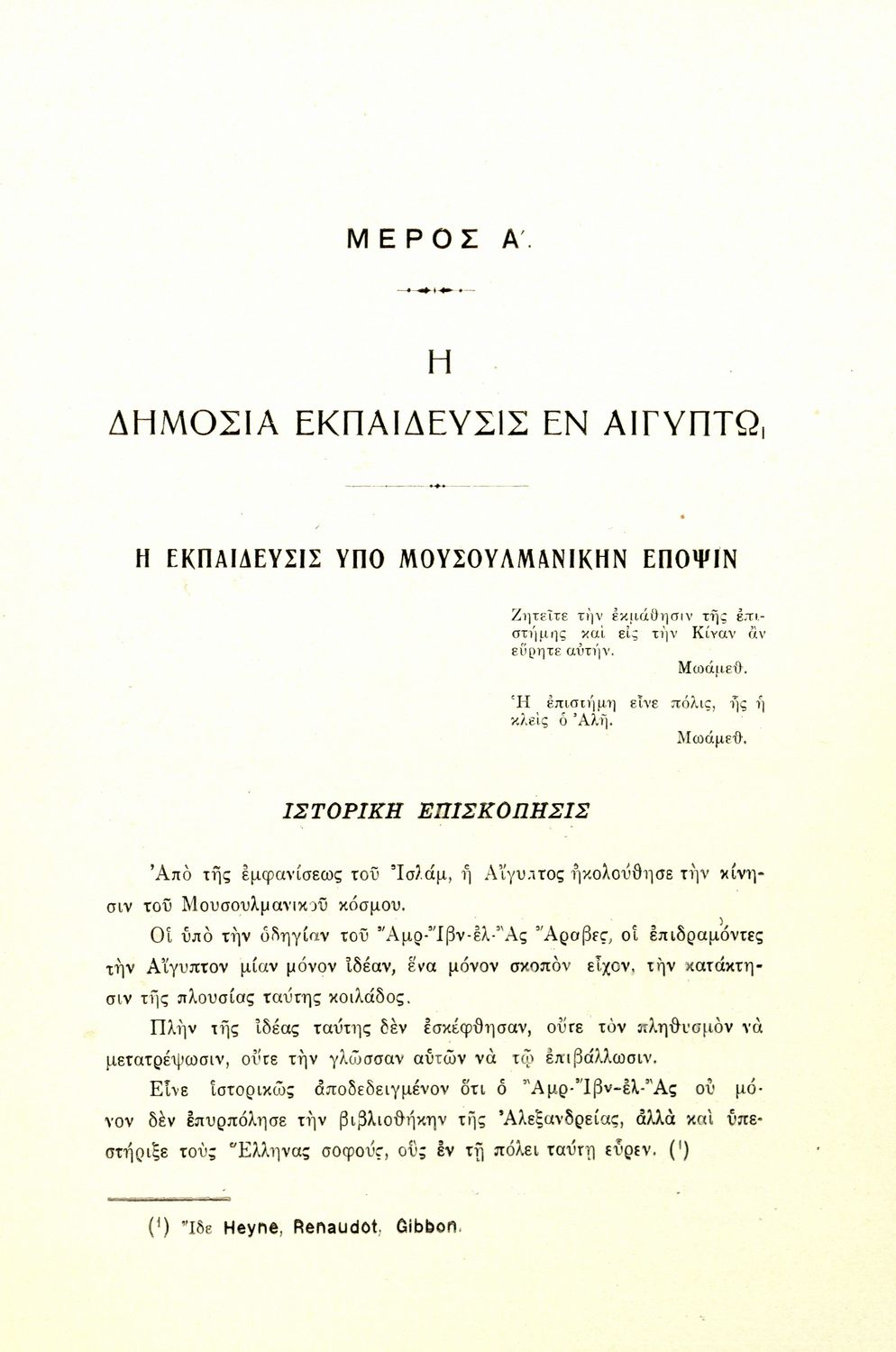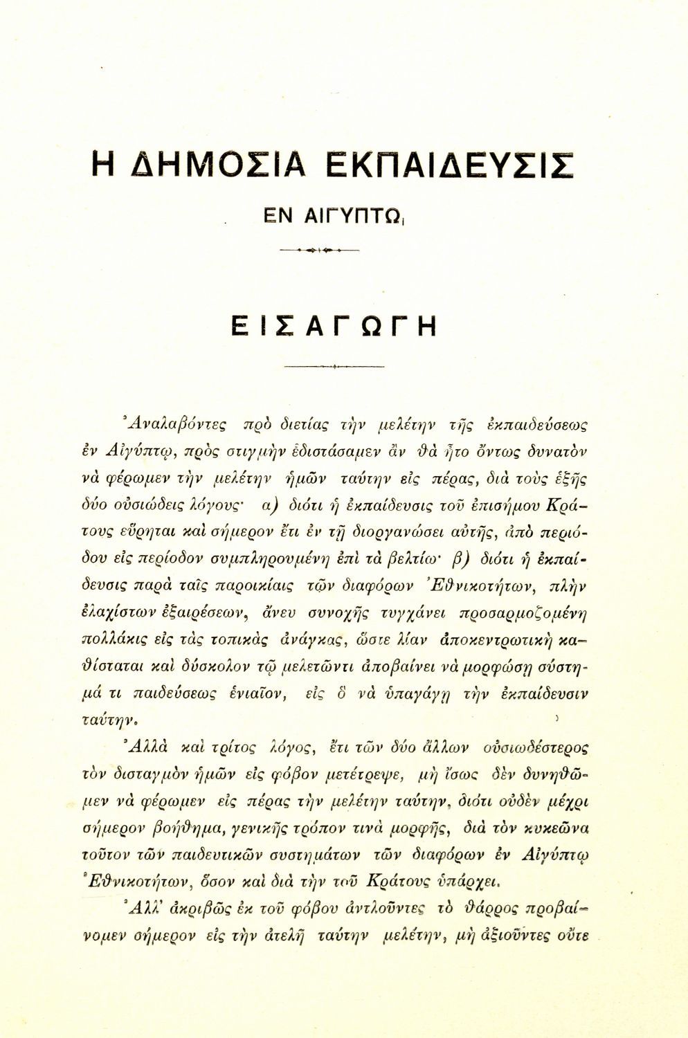 Επιστημονικό σύγγραμμα που αποτελεί μια ιστορική επισκόπηση της δομής και λειτουργίας του δημόσιου εκπαιδευτικού συστήματος της Αιγύπτου. Περιέχει σχεδιαγράμματα και πίνακες με ποσοτικά και ποιοτικά χαρακτηριστικά.