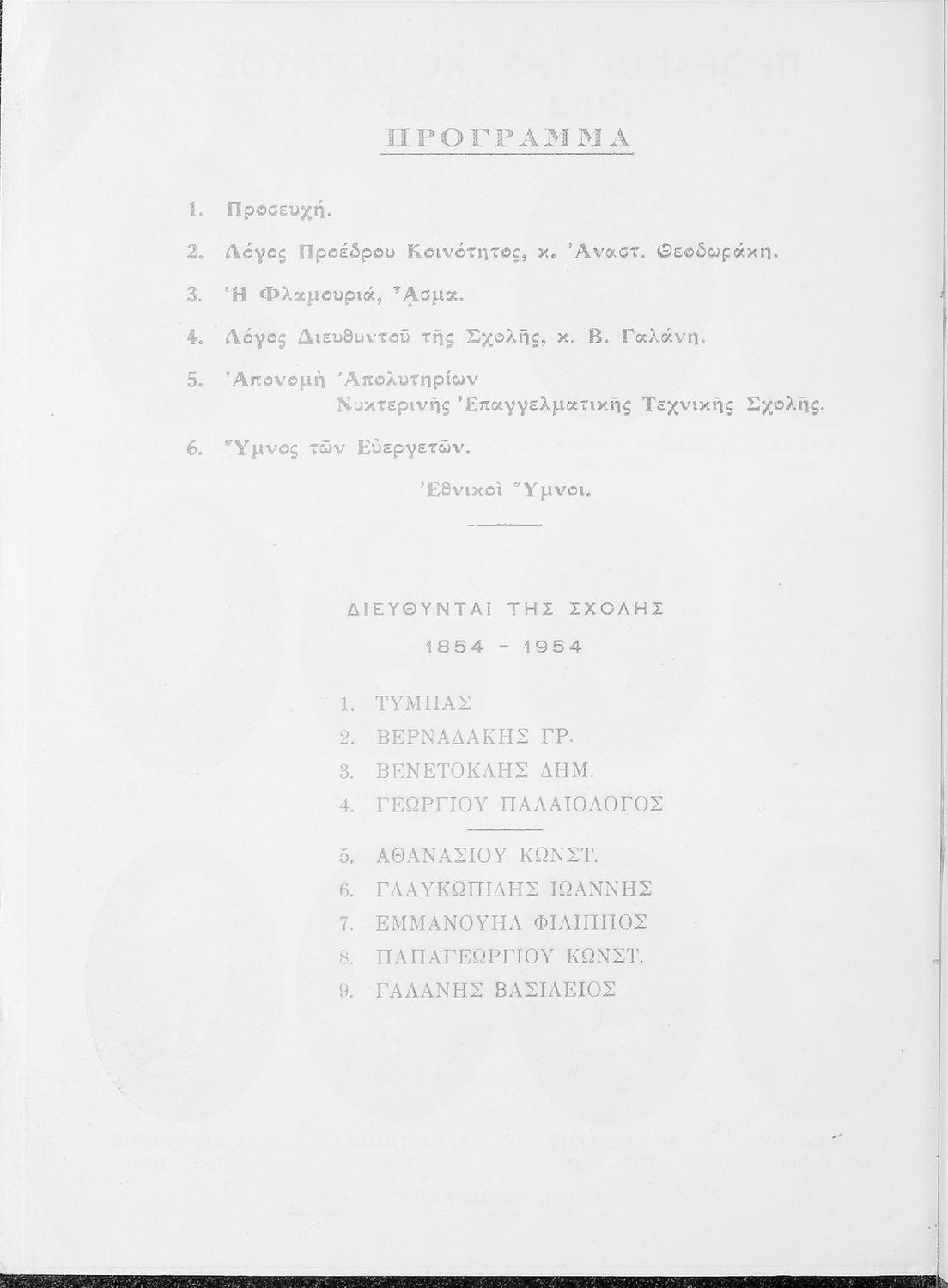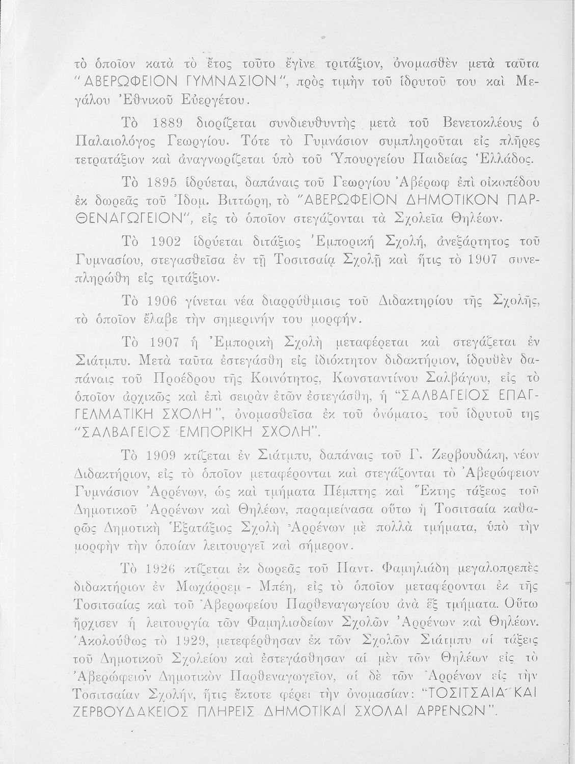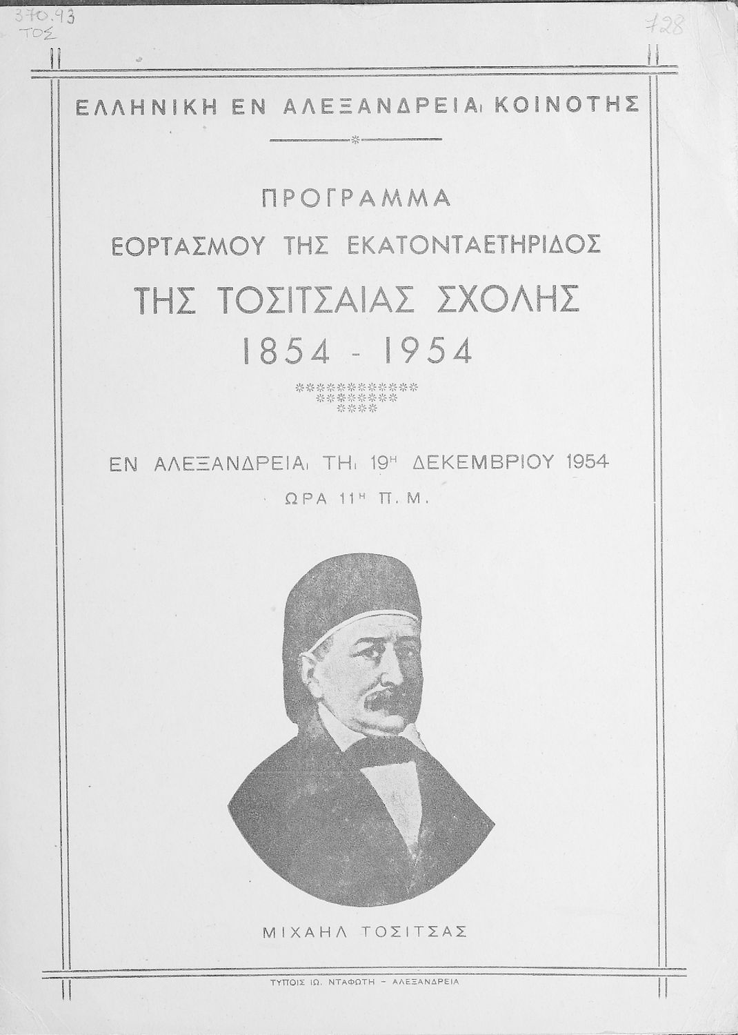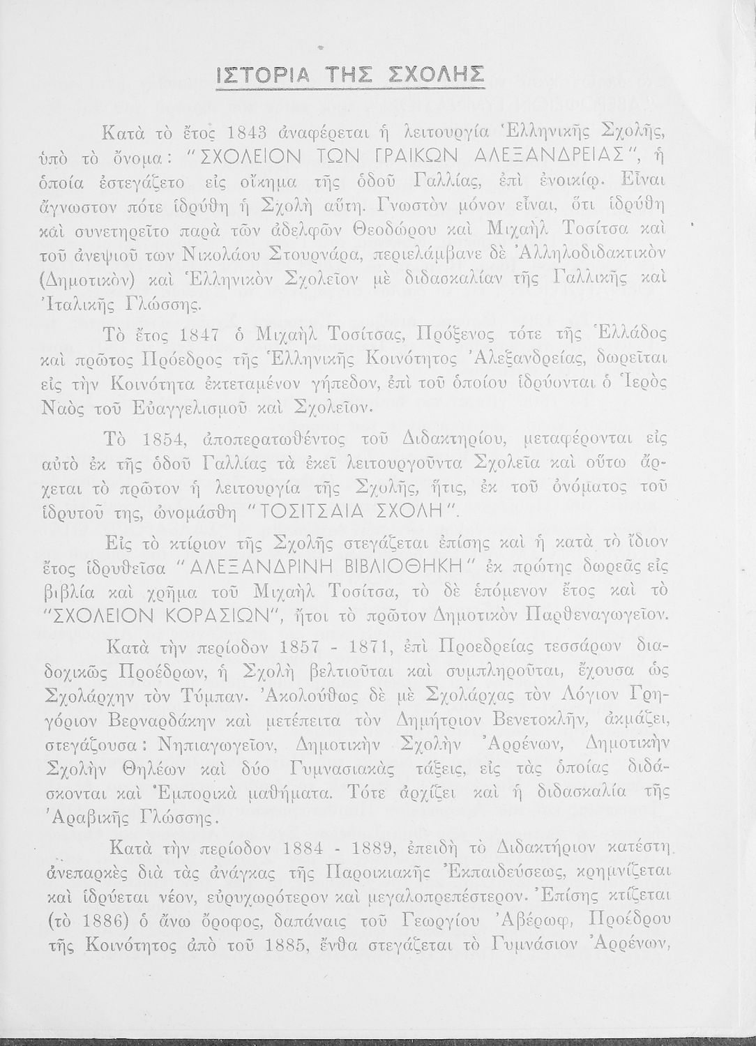 Έκδοση που αναπτύσσει σε αδρές γραμμές την πορεία της Τοσίτσειας Σχολής κατά τα έτη 1854-1954.