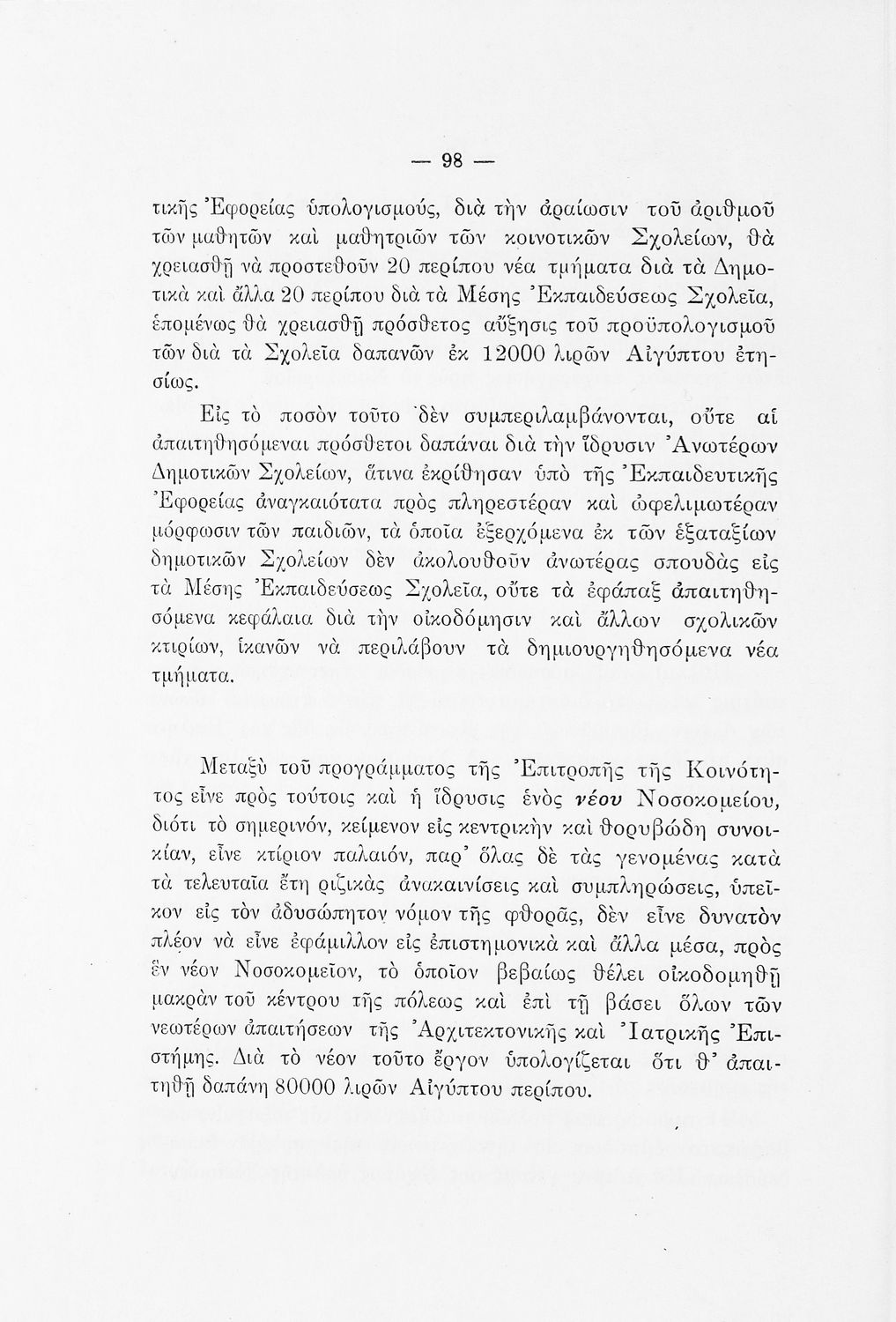 Παρουσίαση περιεχομένου: Επιστημονικό σύγγραμμα που πραγματεύεται την ιστορία της ελληνικής κοινότητας της Αλεξάνδρειας από το 1830 έως το 1927. Περιέχει και στοιχεία για τις υποδομές της κοινότητας όπως γραφεία, βιβλιοθήκες και σχολεία κατά το 1927-8.