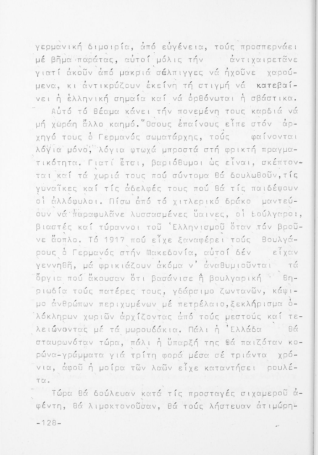Σχολικό εγχειρίδιο Νεοελληνικών αναγνωσμάτων που περιλαμβάνει πεζά και ποιήματα Ελλήνων συγγραφέων με θέματα από την εθνική ζωή. Περιέχει και παράρτημα με βιογραφίες των συγγραφέων και λεξιλόγιο.