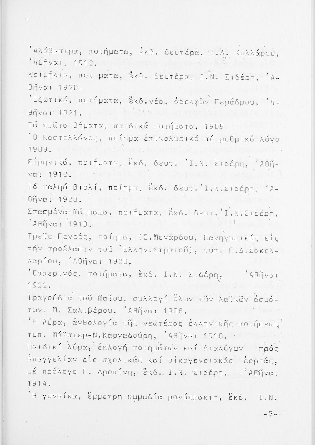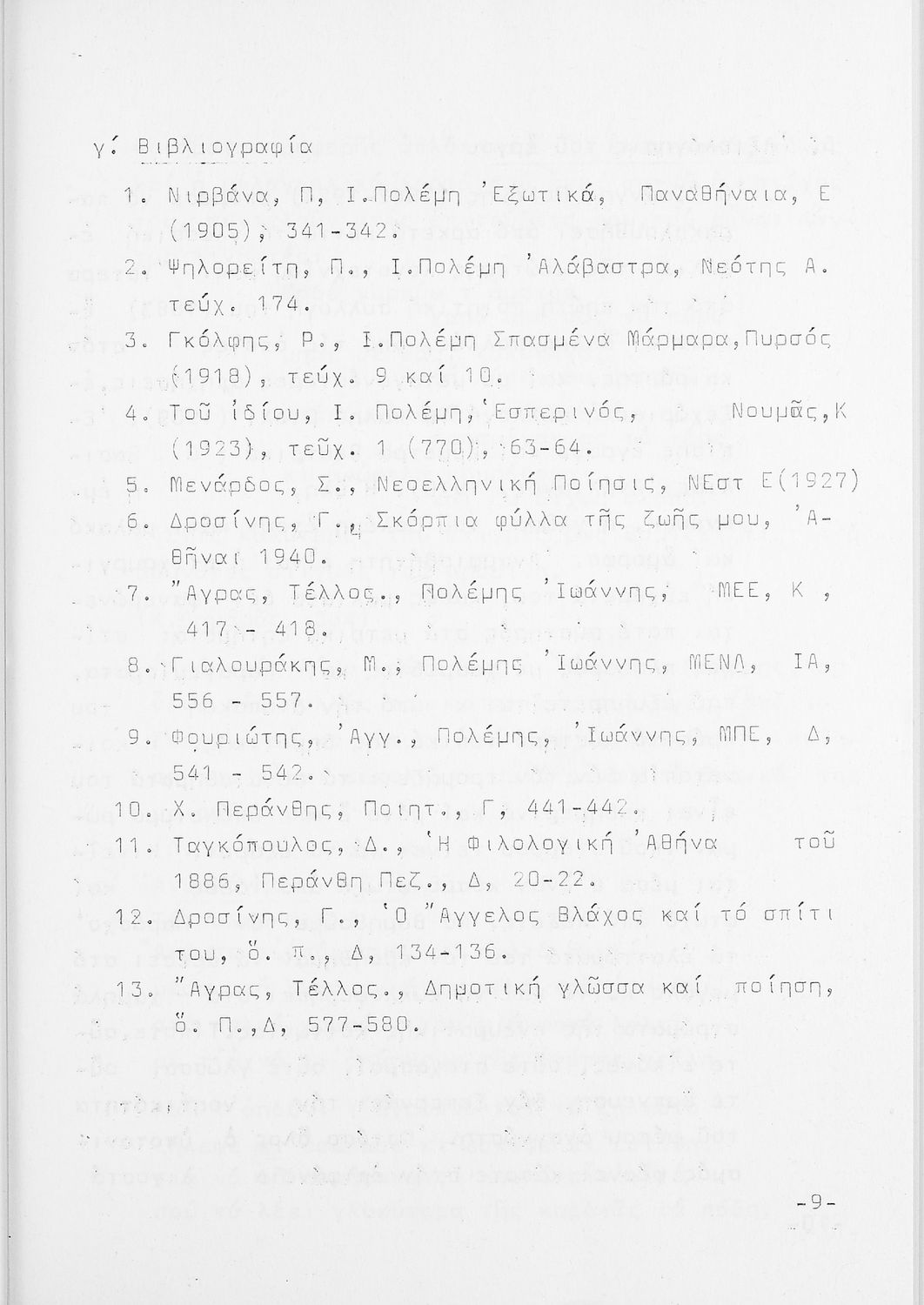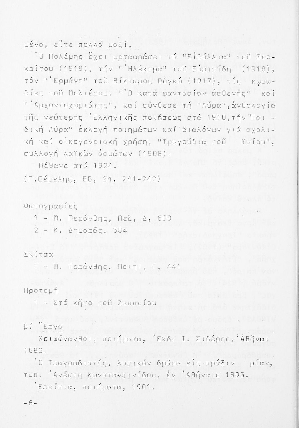 Σχετιζόμενοι όροι:  Παπαντωνίου, Πολέμης, Παλαμάς, Βηλαράς