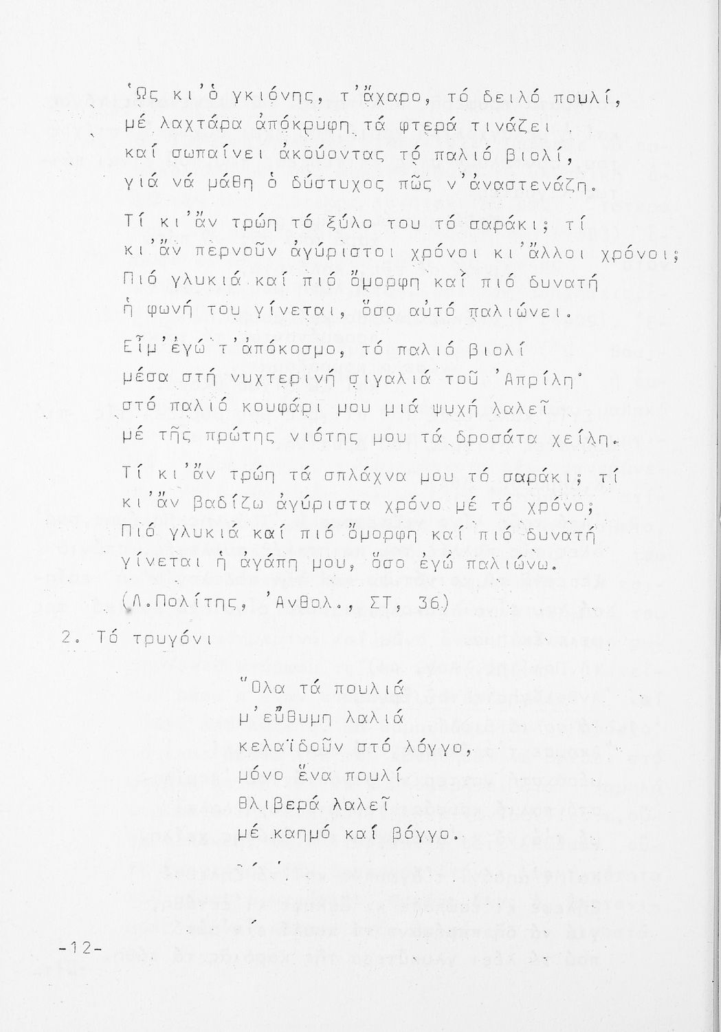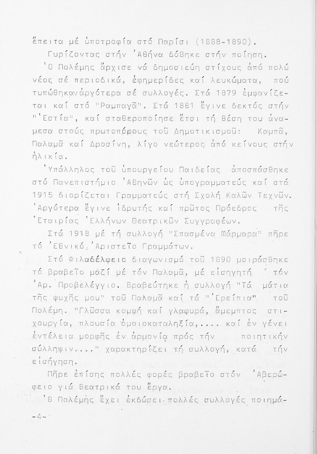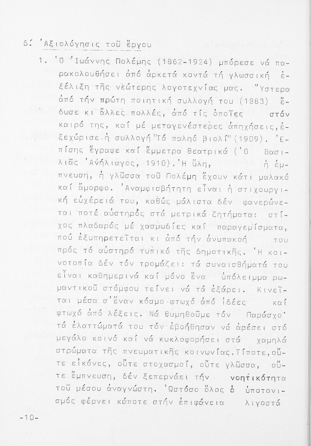 Σχετιζόμενοι όροι:  Παπαντωνίου, Πολέμης, Παλαμάς, Βηλαράς