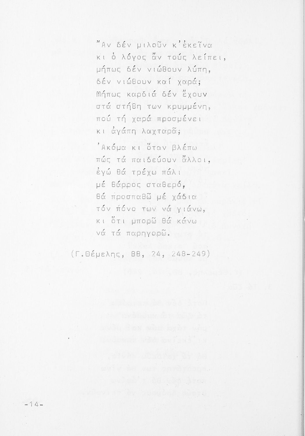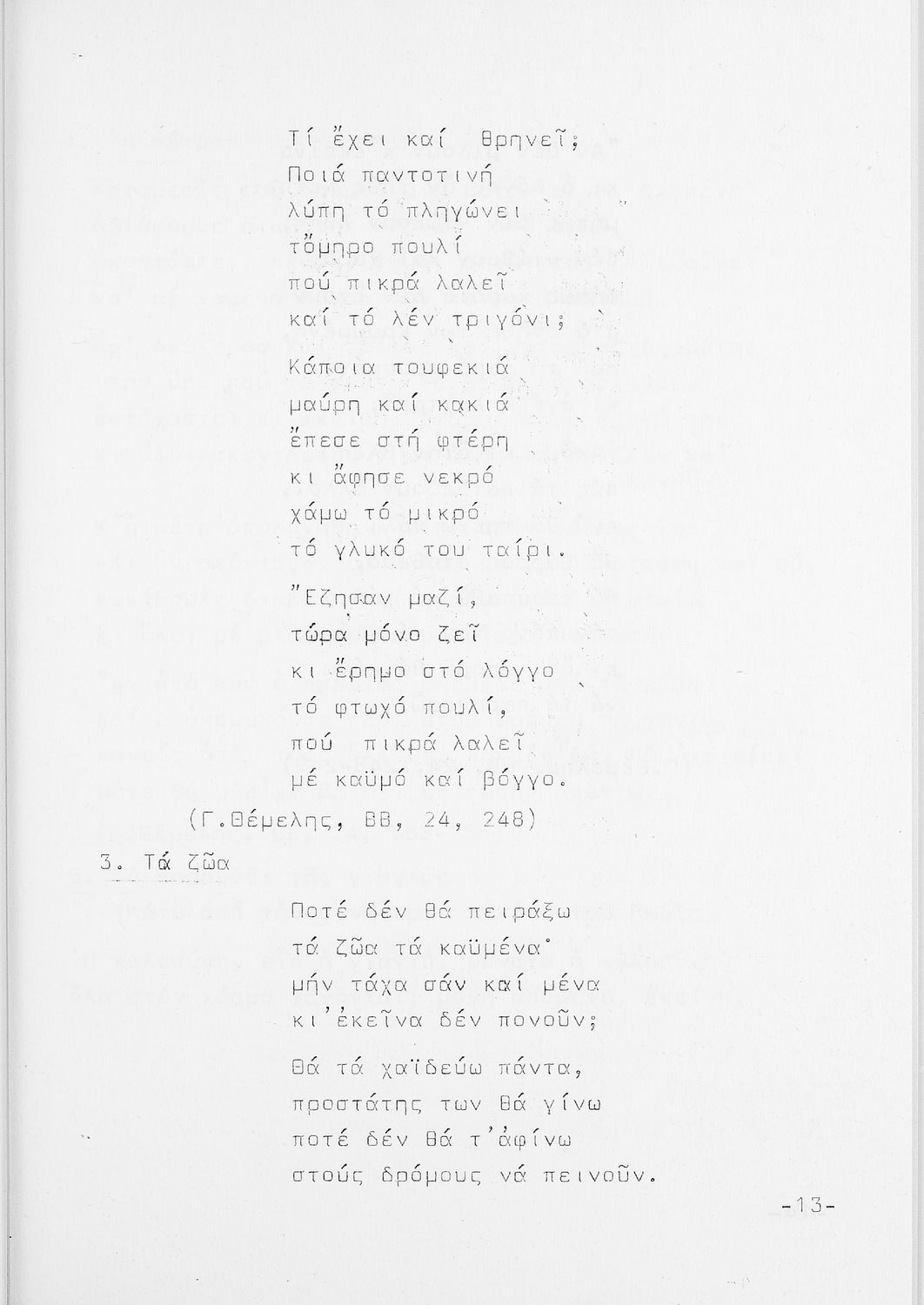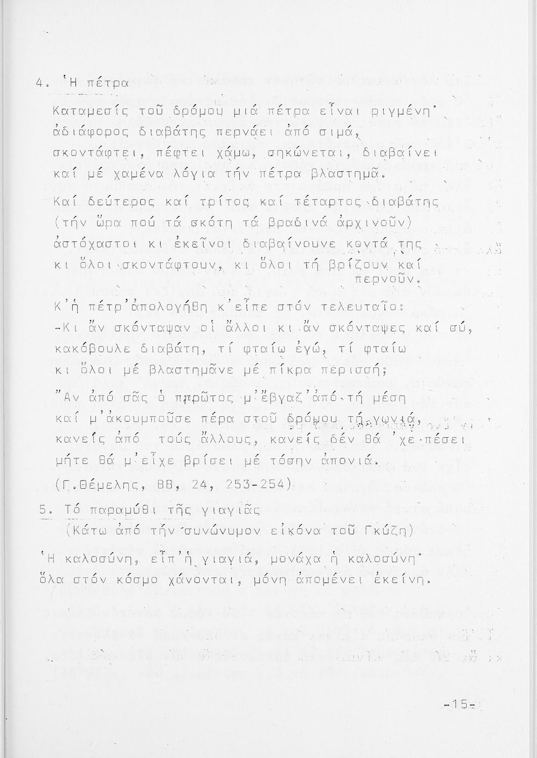 Σχολικό εγχειρίδιο Νέων Ελληνικών Γ΄ Γυμνασίου και Α' Αστικού Σχολείου που περιέχει πεζά και ποιήματα Ελλήνων συγγραφέων εμπνευσμένα από τη θρησκευτική και κοινωνική ζωή, την ελληνική μυθολογία, την αρχαία και