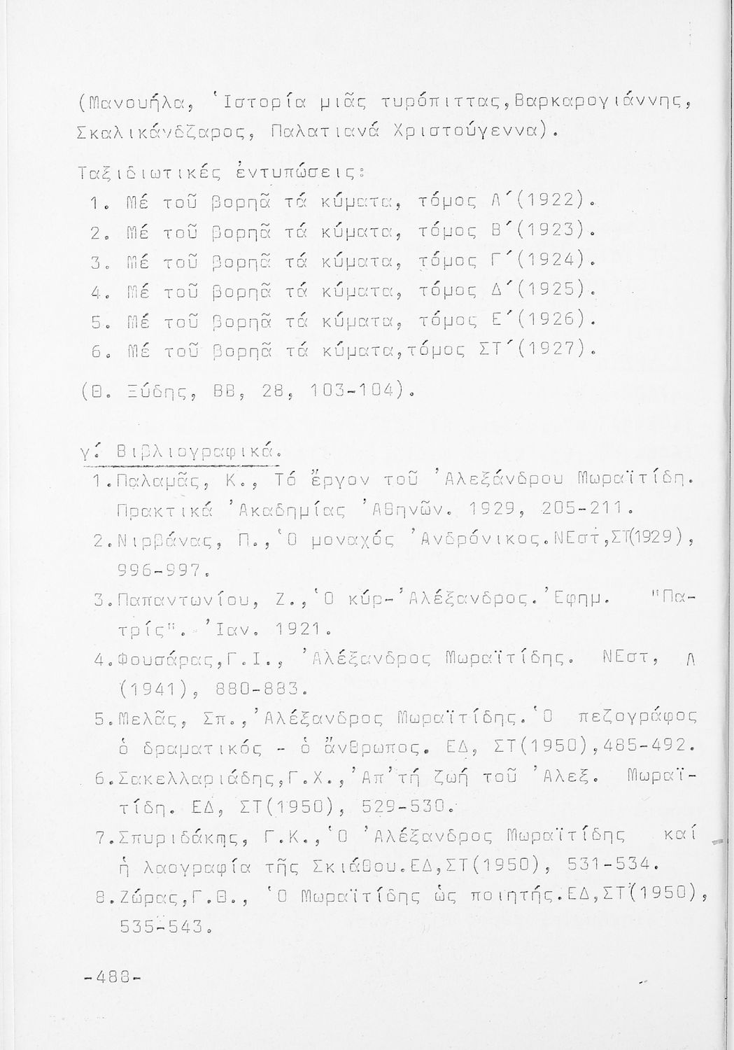 Σχετιζόμενοι όροι:  Παπαντωνίου, Πολέμης, Παλαμάς, Βιλαράς