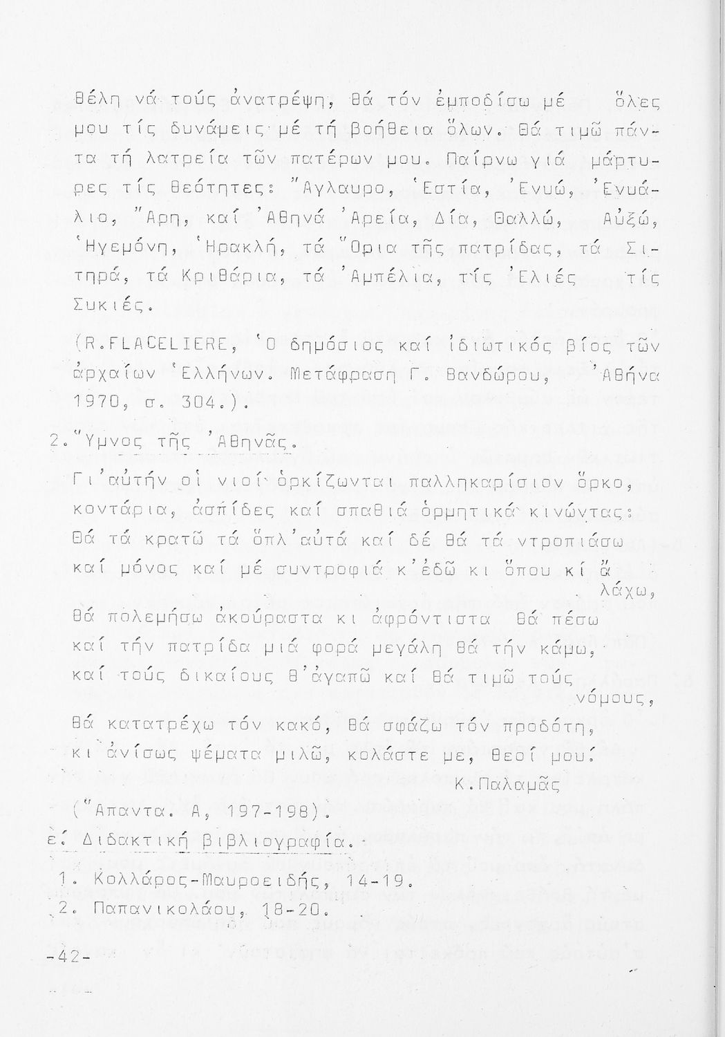 Σχολικό εγχειρίδιο Νέων Ελληνικών Γ΄ Γυμνασίου και Α' Αστικού Σχολείου που περιέχει πεζά και ποιήματα Ελλήνων συγγραφέων εμπνευσμένα από τη θρησκευτική και κοινωνική ζωή, την ελληνική μυθολογία, την αρχαία και