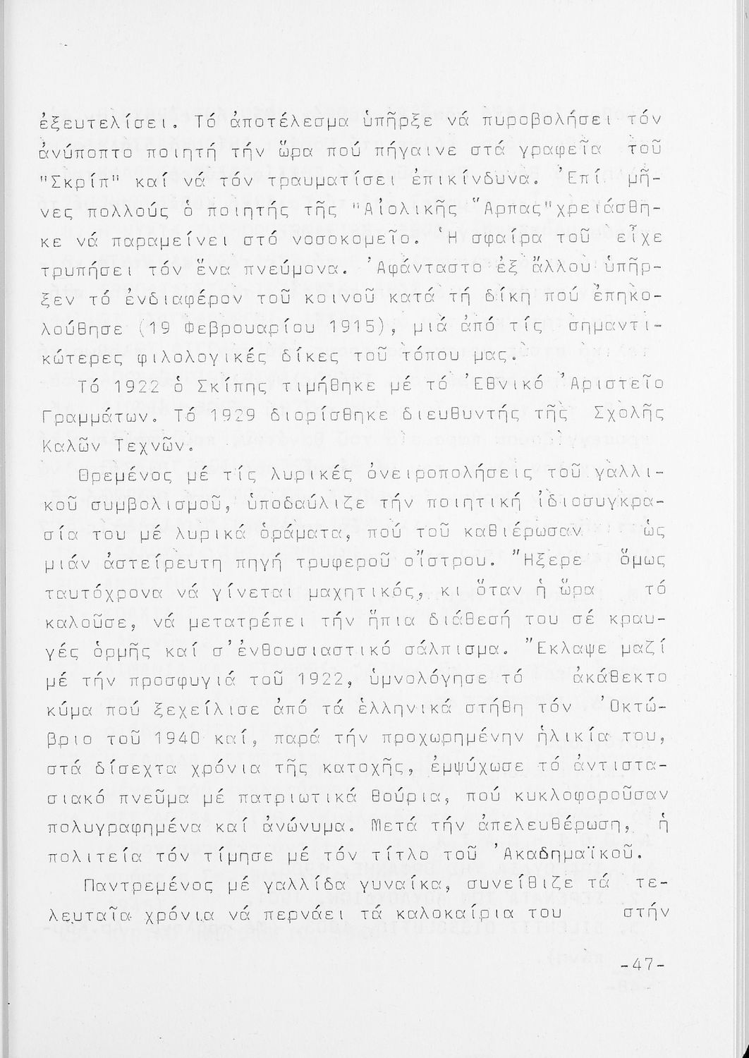 Σχετιζόμενοι όροι:  Παπαντωνίου, Πολέμης, Παλαμάς, Βιλαράς