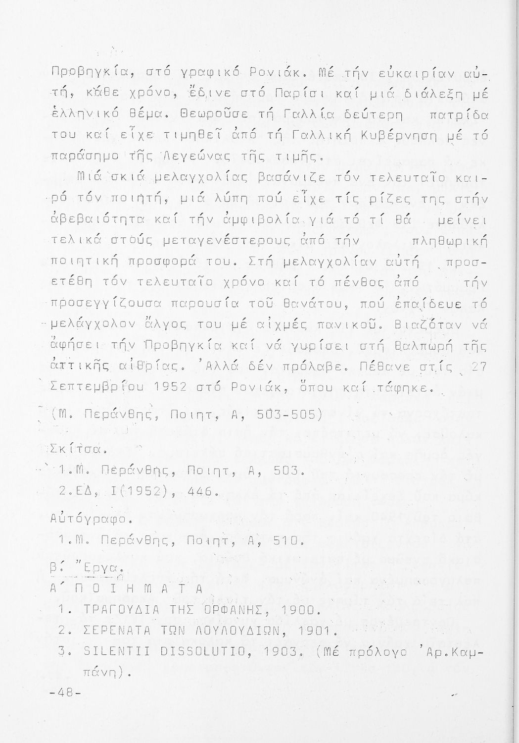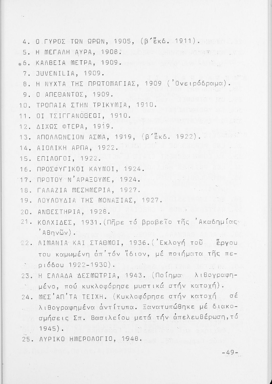 Σχετιζόμενοι όροι:  Παπαντωνίου, Πολέμης, Παλαμάς, Βηλαράς