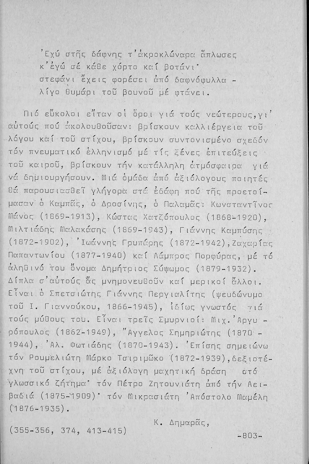 Σχετιζόμενοι όροι:  Βάμβας, Κοραής, Παλαμάς, Παπαδιαμάντης