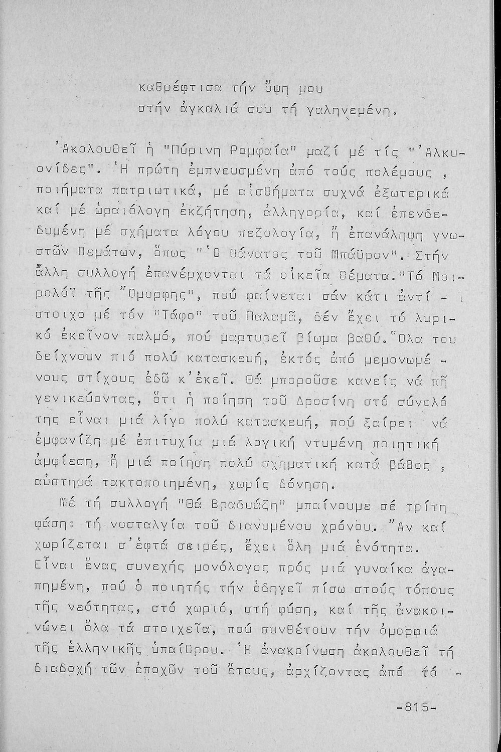 Σχολικό εγχειρίδιο Νέων Ελληνικών Β΄ Εξαταξίου Γυμνασίου που περιλαμβάνει που περιλαμβάνει ποιήματα και πεζά Ελλήνων συγγραφέων εμπνευσμένα από την αρχαία και σύγχρονη ελληνική ιστορία, την ελληνική φύση και ...