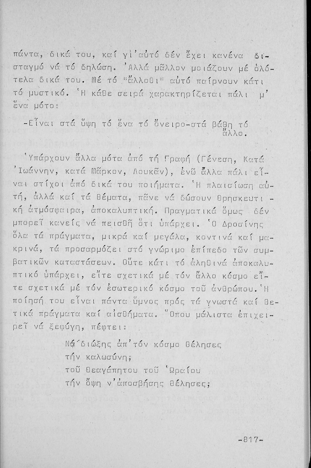 Σχολικό εγχειρίδιο Νέων Ελληνικών Δ΄ Γυμνασίου και Β΄ Αστικού Σχολείου που περιέχει πεζά και ποιήματα Ελλήνων συγγραφέων εμπνευσμένα από τη θρησκευτική και κοινωνική ζωή, την ελληνική μυθολογία, την αρχαία και
