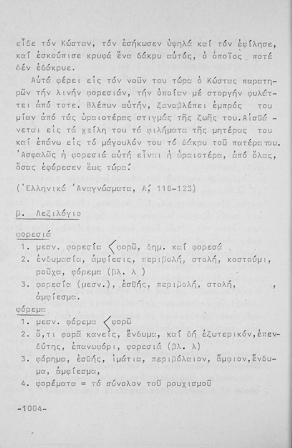 Σχολικό εγχειρίδιο Νέων Ελληνικών Δ΄ Γυμνασίου και Β΄ Αστικού Σχολείου που περιέχει πεζά και ποιήματα Ελλήνων συγγραφέων εμπνευσμένα από τη θρησκευτική και κοινωνική ζωή, την ελληνική μυθολογία, την αρχαία και
