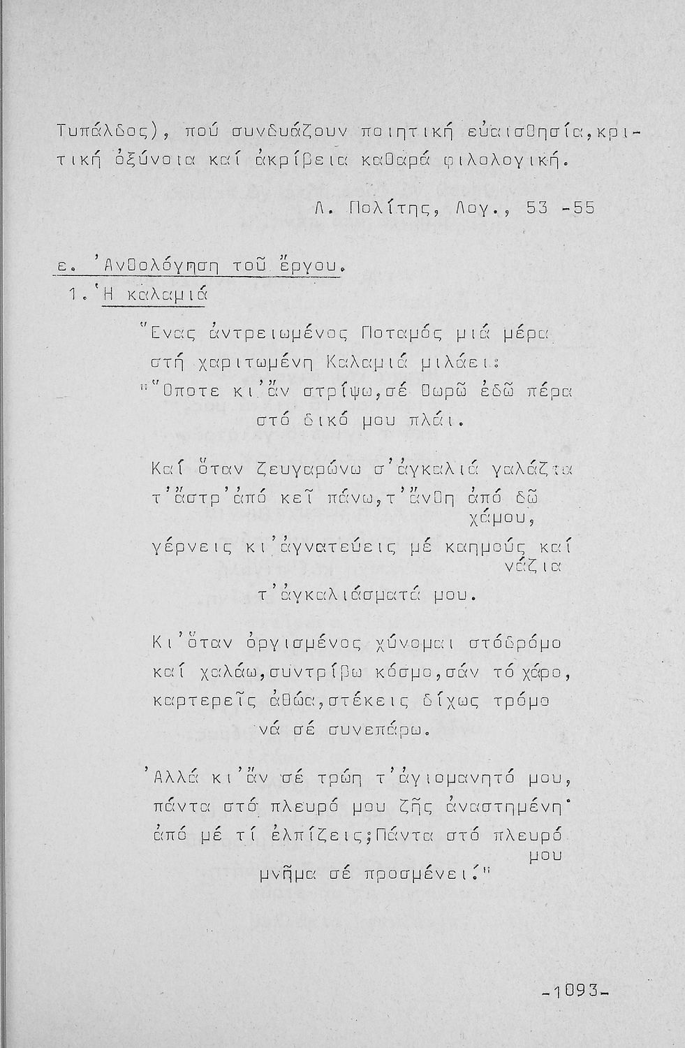 Σχολικό εγχειρίδιο Νέων Ελληνικών Δ΄ Γυμνασίου και Β΄ Αστικού Σχολείου που περιέχει πεζά και ποιήματα Ελλήνων συγγραφέων εμπνευσμένα από τη θρησκευτική και κοινωνική ζωή, την ελληνική μυθολογία, την αρχαία και