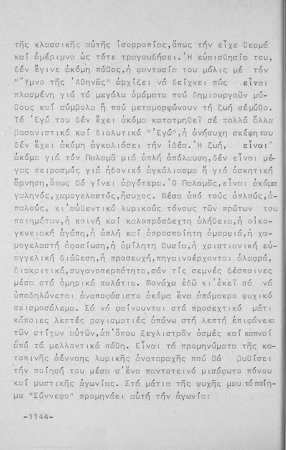 Σχολικό εγχειρίδιο Νέων Ελληνικών Δ΄ Γυμνασίου και Β΄ Αστικού Σχολείου που περιέχει πεζά και ποιήματα Ελλήνων συγγραφέων εμπνευσμένα από τη θρησκευτική και κοινωνική ζωή, την ελληνική μυθολογία, την αρχαία και