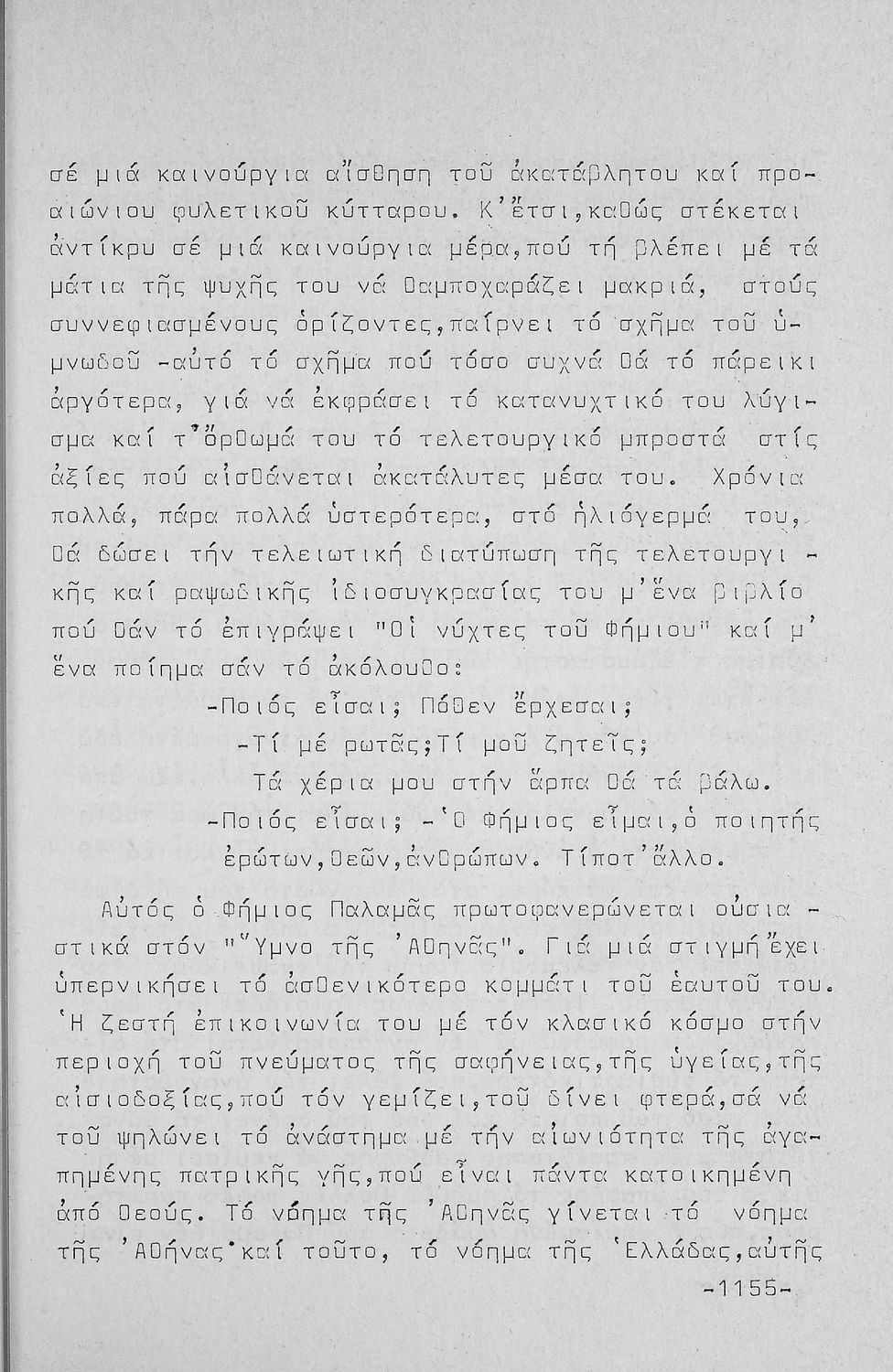 Σχολικό εγχειρίδιο Νέων Ελληνικών Β΄ Εξαταξίου Γυμνασίου που περιλαμβάνει που περιλαμβάνει ποιήματα και πεζά Ελλήνων συγγραφέων εμπνευσμένα από την αρχαία και σύγχρονη ελληνική ιστορία, την ελληνική φύση και ...