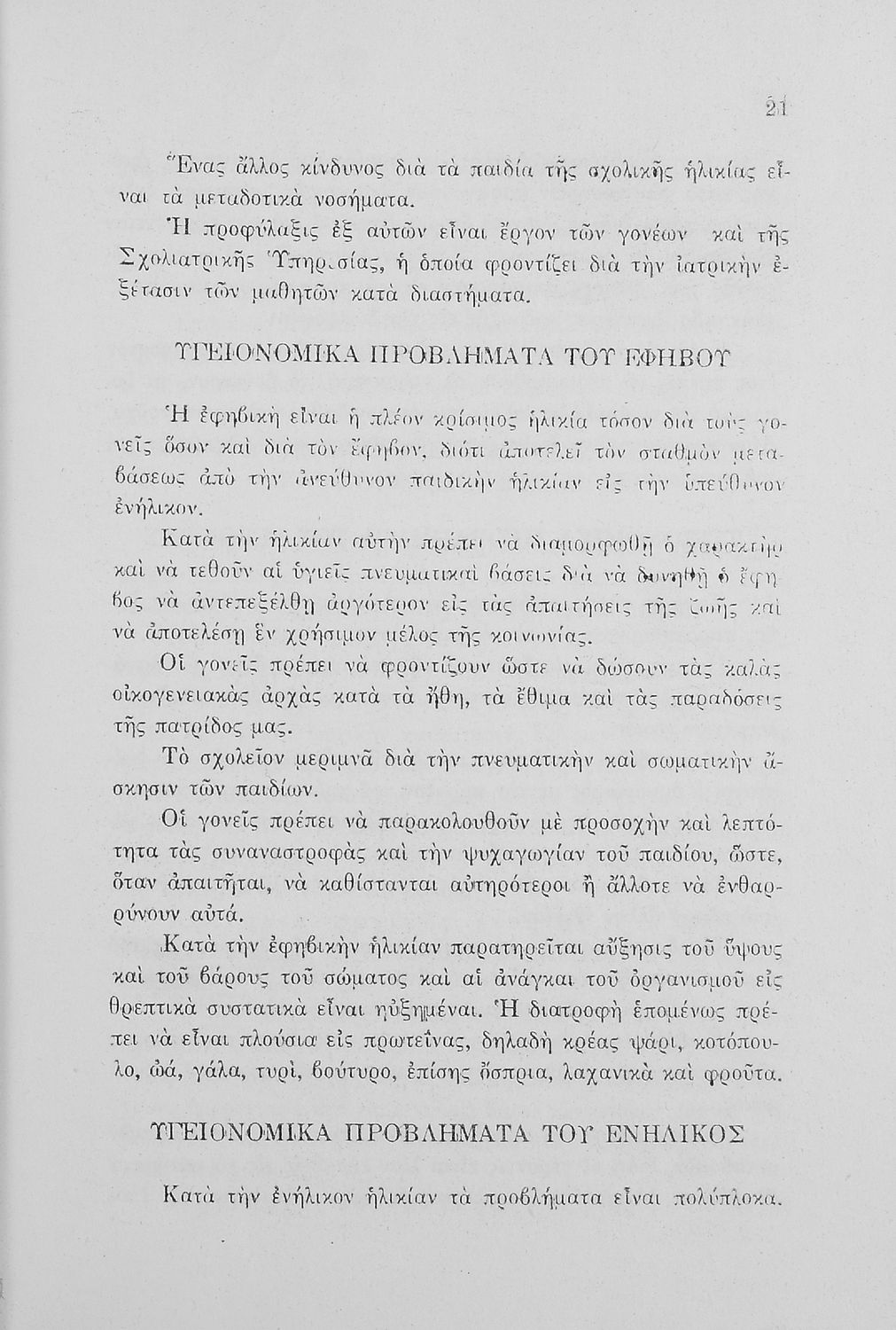 Βαθμίδα εκπαίδευσης: Δευτεροβάθμια Τάξη: Β' Γυμνασίου Μάθημα: Υγιεινή Γλώσσα: Καθαρεύουσα Παρουσίαση περιεχομένου: Σχολικό εγχειρίδιο Υγιεινής Β΄ Γυμνασίου που καλύπτει θέματα υγείας, υγιεινής, παθολογικών καταστάσεων, καταχρήσεων και καλής λειτουργίας του οργανισμού. |