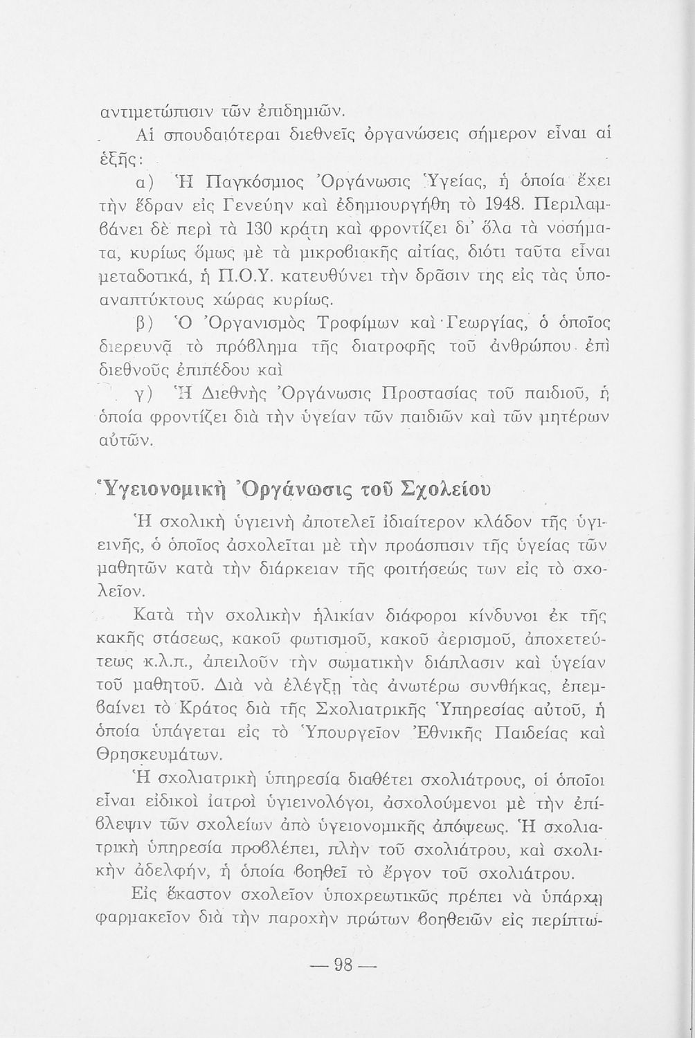 Υγιεινή (κατά το ισχύον αναλυτικόν πρόγραμμα) προς χρήσιν των μαθητών της Β΄ τάξεως των Γυμνασίων