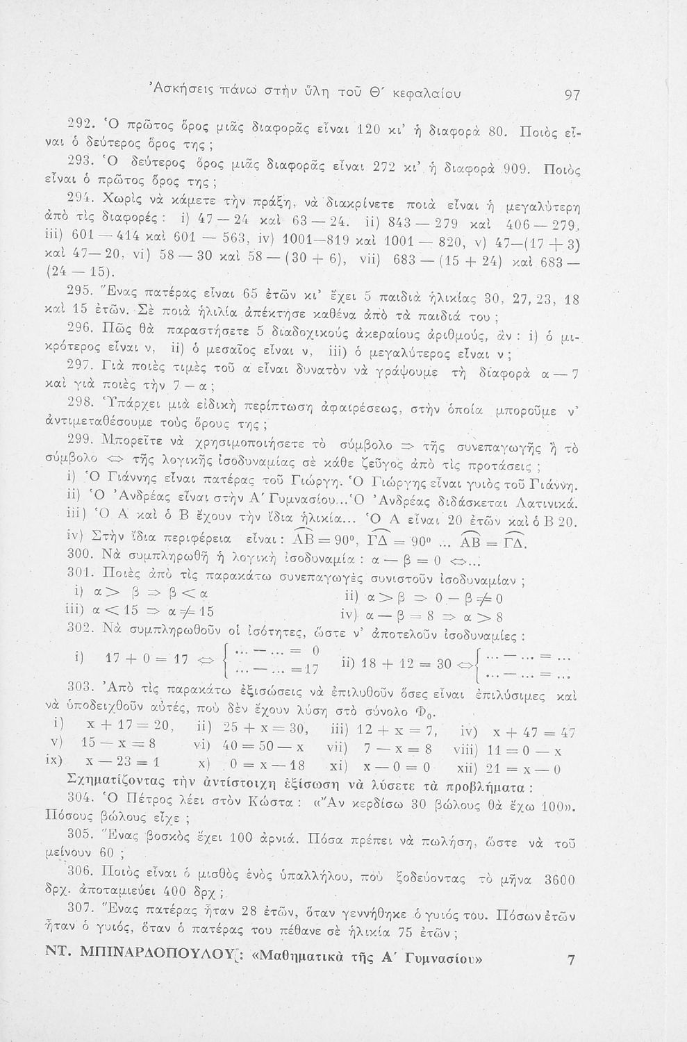 Μαθηματικά για την Α΄ τάξη του Γυμνασίου, τεύχος Α΄