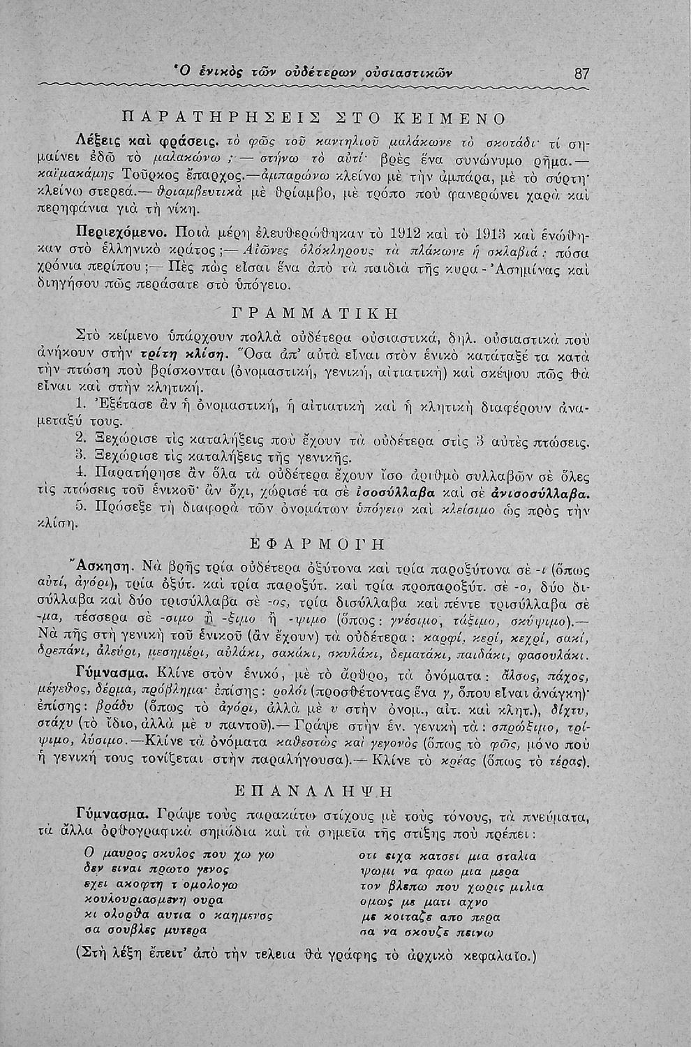 Μαθητικό βοήθημα Γλώσσας και Νέων Ελληνικών για μαθητές των Ε΄ και ΣΤ΄ Δημοτικού και Γυμνασίου που περιλαμβάνει πεζά και ποιήματα, προφορικές και γραπτές ασκήσεις, και βοηθητικούς γραμματικούς πίνακες για τη διδασκαλία των γραμματικών φαινομένων.