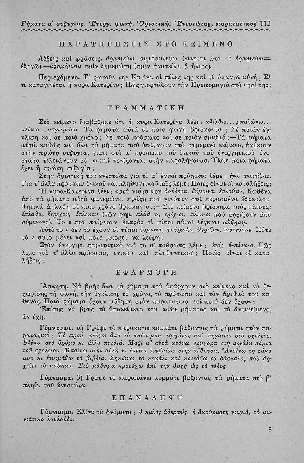 Μαθητικό βοήθημα Γλώσσας και Νέων Ελληνικών για μαθητές των Ε΄ και ΣΤ΄ Δημοτικού και Γυμνασίου που περιλαμβάνει πεζά και ποιήματα, προφορικές και γραπτές ασκήσεις, και βοηθητικούς γραμματικούς πίνακες για τη διδασκαλία των γραμματικών φαινομένων.