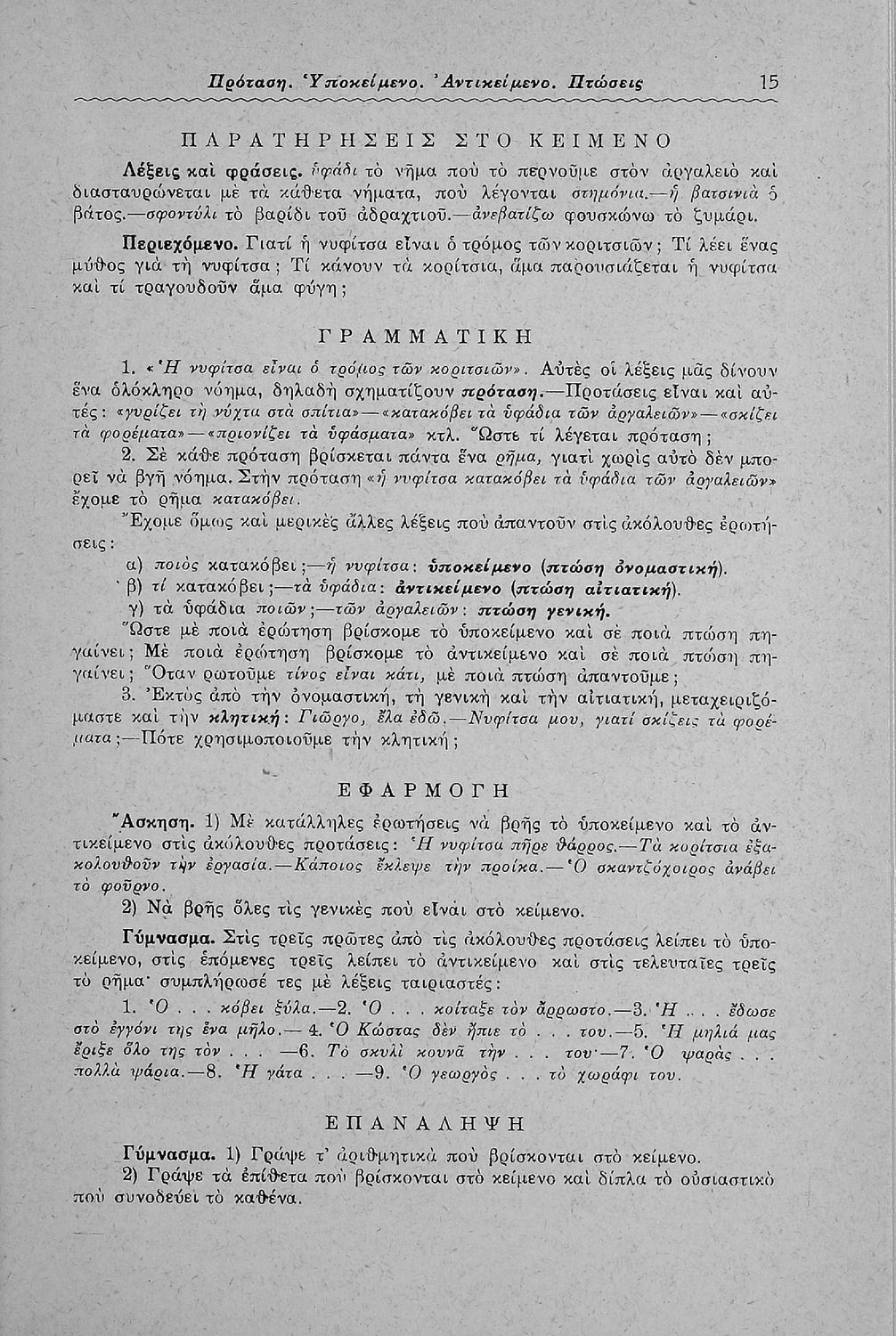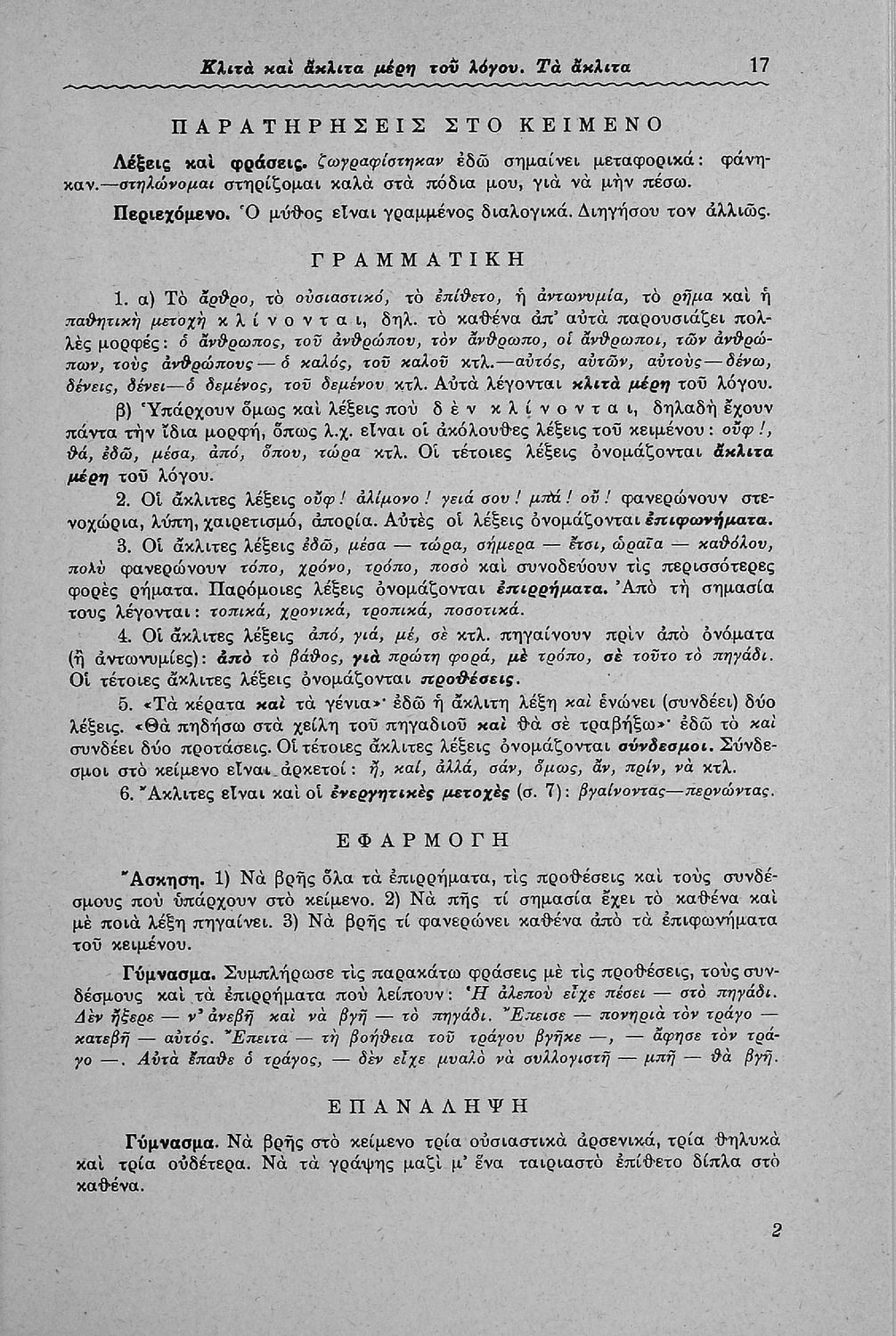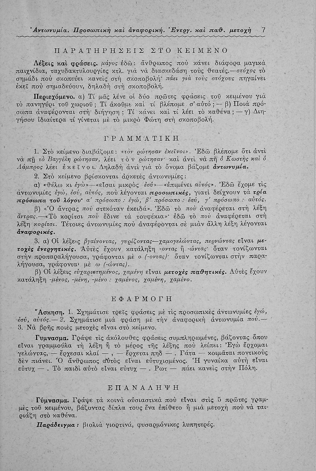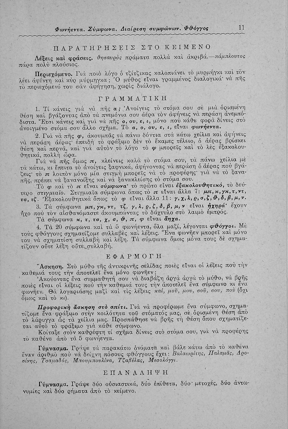 Μαθητικό βοήθημα Γλώσσας και Νέων Ελληνικών για μαθητές των Ε΄ και ΣΤ΄ Δημοτικού και Γυμνασίου που περιλαμβάνει πεζά και ποιήματα, προφορικές και γραπτές ασκήσεις, και βοηθητικούς γραμματικούς πίνακες για τη διδασκαλία των γραμματικών φαινομένων.