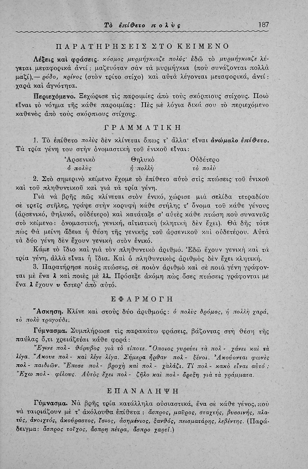 Μαθητικό βοήθημα Γλώσσας και Νέων Ελληνικών για μαθητές των Ε΄ και ΣΤ΄ Δημοτικού και Γυμνασίου που περιλαμβάνει πεζά και ποιήματα, προφορικές και γραπτές ασκήσεις, και βοηθητικούς γραμματικούς πίνακες για τη διδασκαλία των γραμματικών φαινομένων.