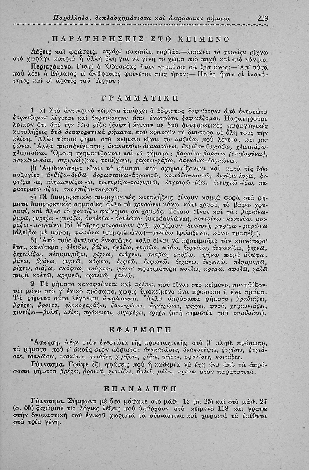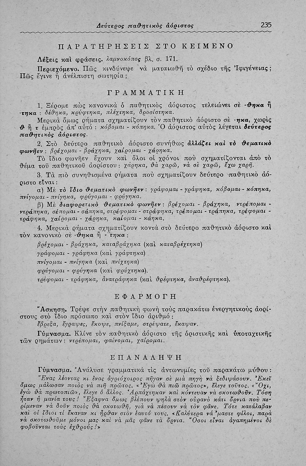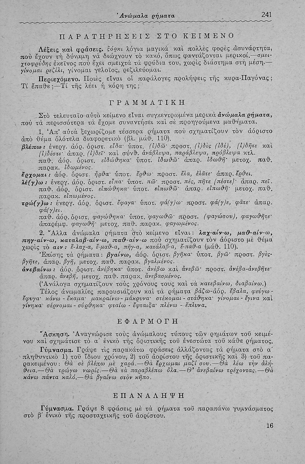 Μαθητικό βοήθημα Γλώσσας και Νέων Ελληνικών για μαθητές των Ε΄ και ΣΤ΄ Δημοτικού και Γυμνασίου που περιλαμβάνει πεζά και ποιήματα, προφορικές και γραπτές ασκήσεις, και βοηθητικούς γραμματικούς πίνακες για τη διδασκαλία των γραμματικών φαινομένων.