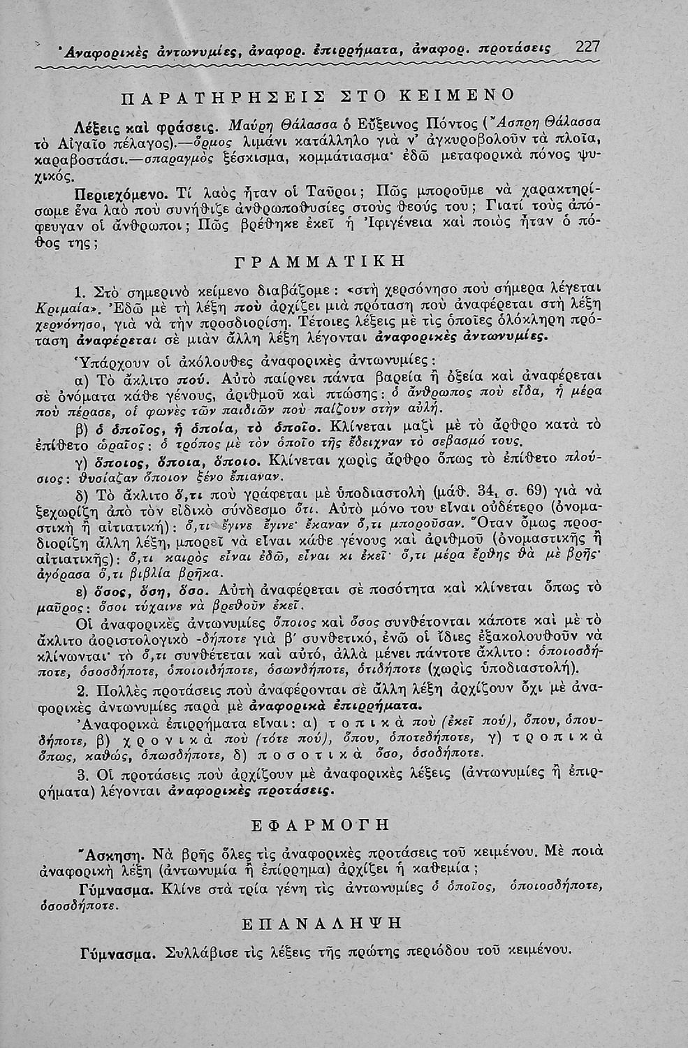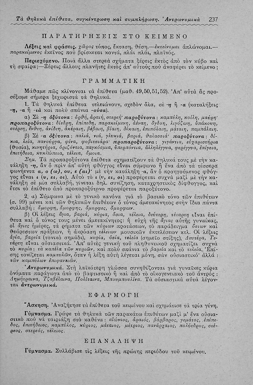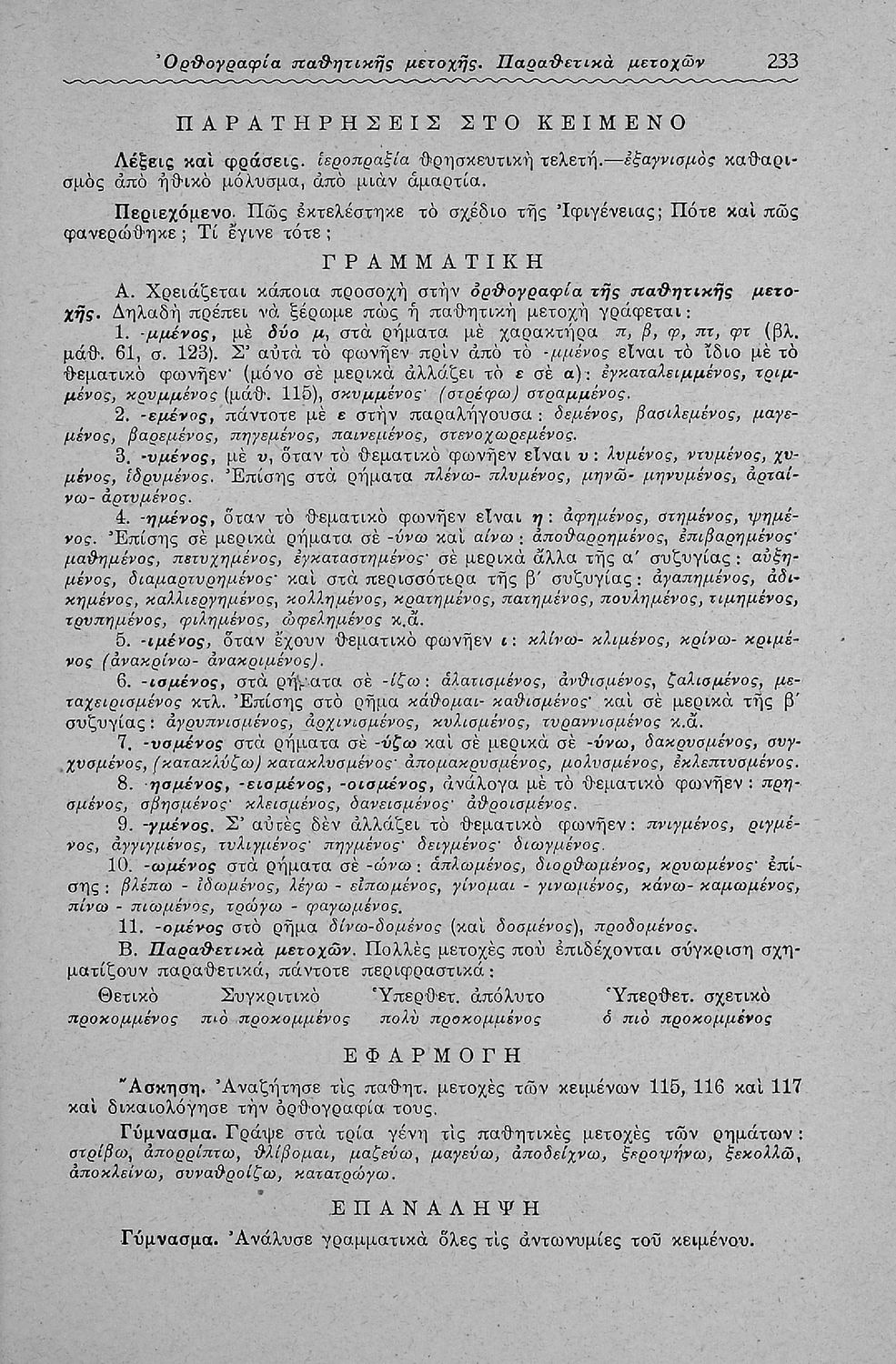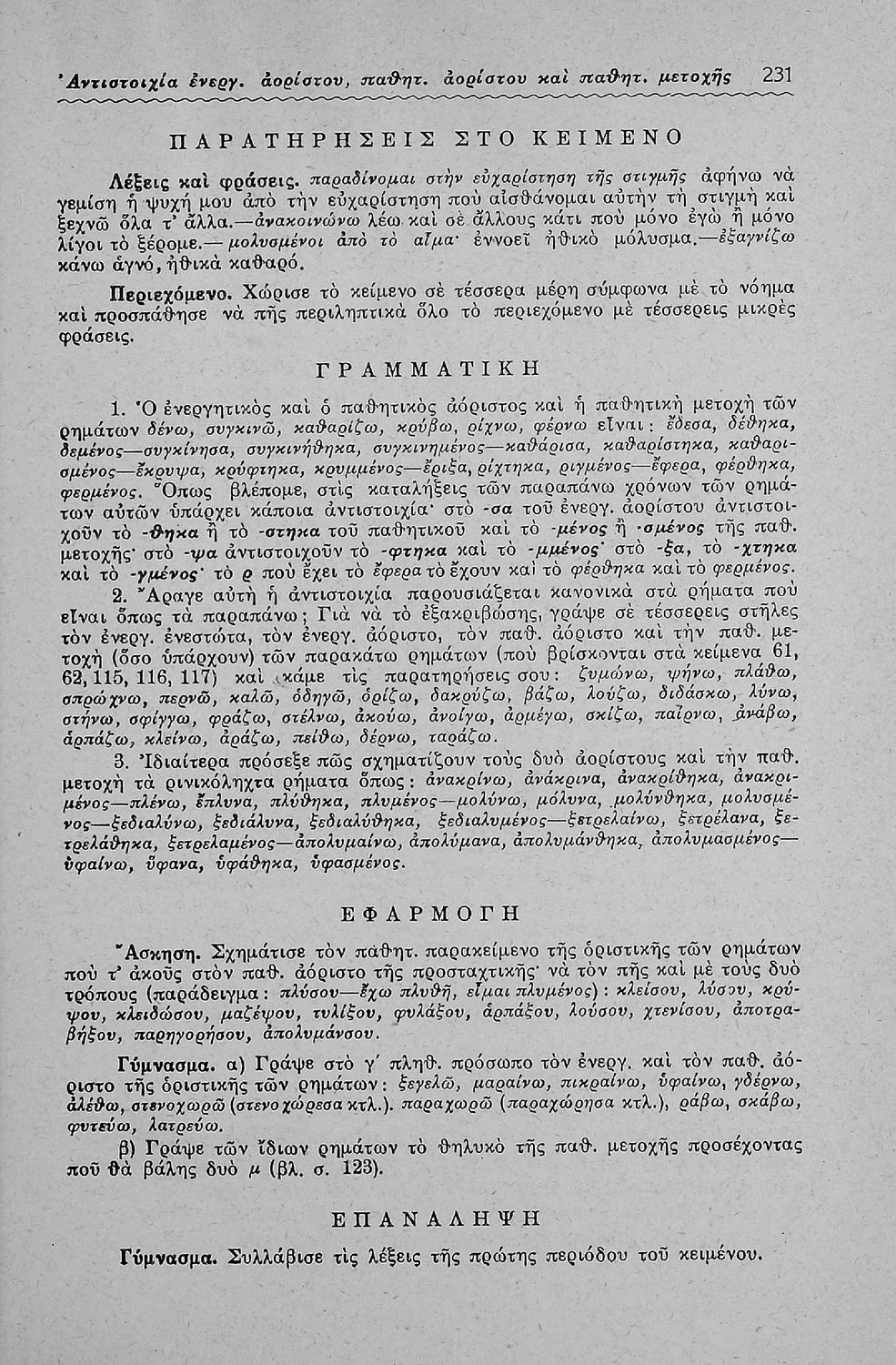Μαθητικό βοήθημα Γλώσσας και Νέων Ελληνικών για μαθητές των Ε΄ και ΣΤ΄ Δημοτικού και Γυμνασίου που περιλαμβάνει πεζά και ποιήματα, προφορικές και γραπτές ασκήσεις, και βοηθητικούς γραμματικούς πίνακες για τη διδασκαλία των γραμματικών φαινομένων.